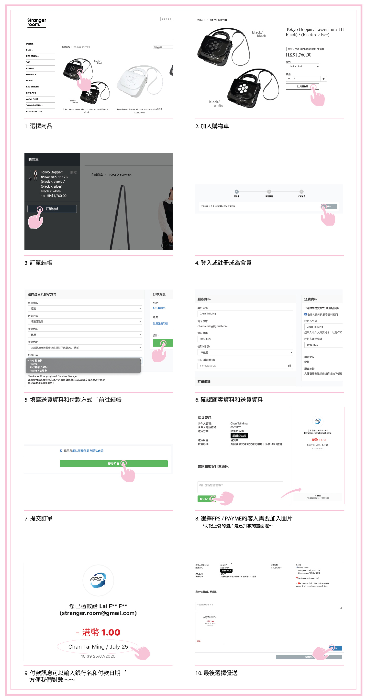 香港以外的客人請留下正確的收件人姓名、電話號碼、地址及郵編(如有),我們會於寄出貨品後以email發出通知。