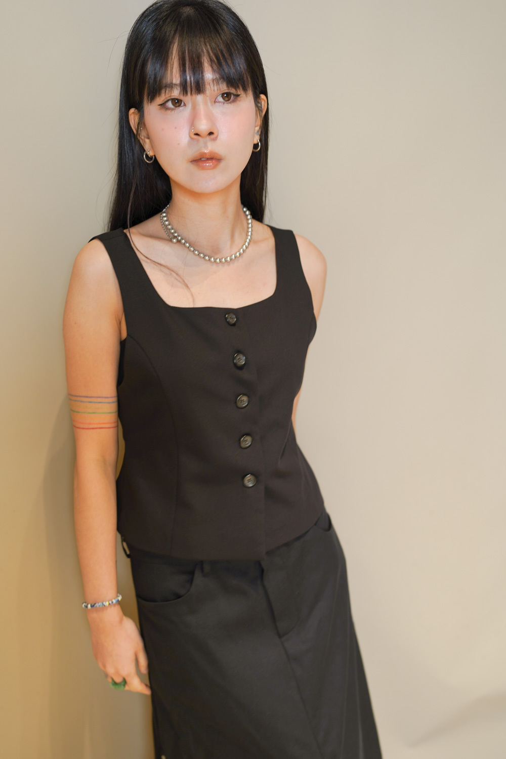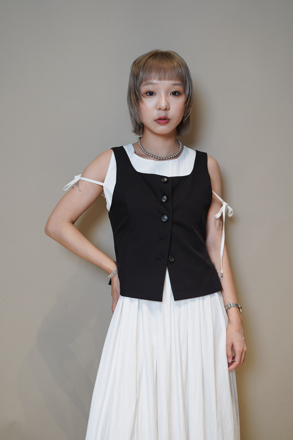 2 sided Anna waistcoat (BEIGE/BLACK)