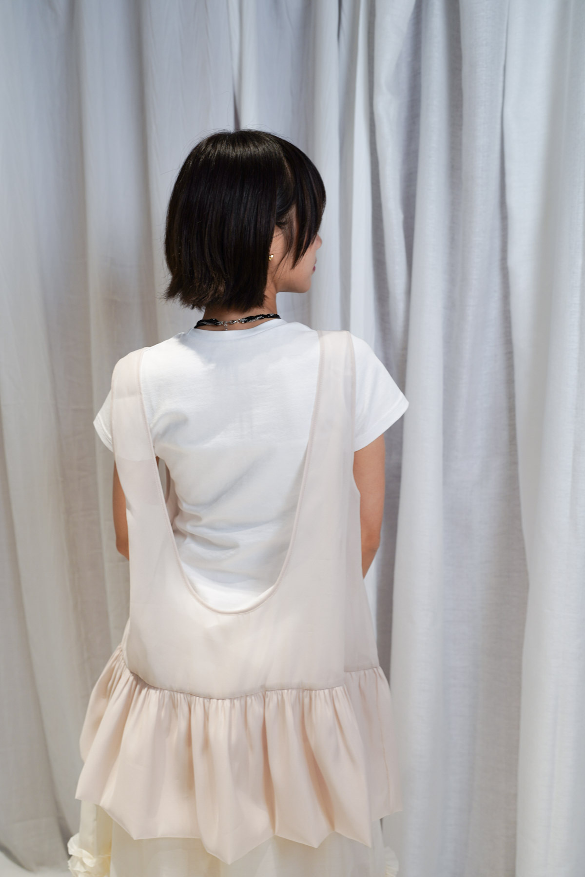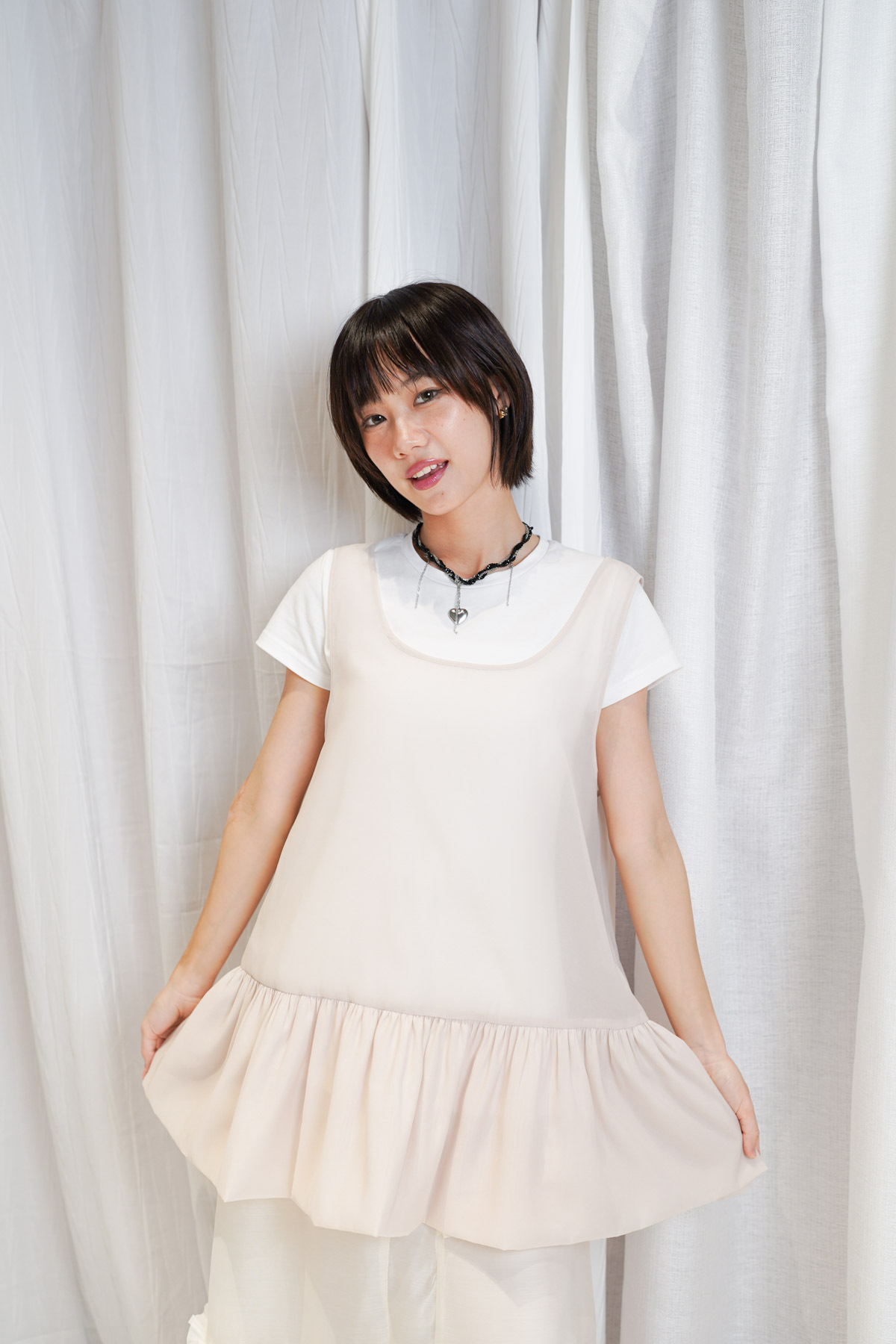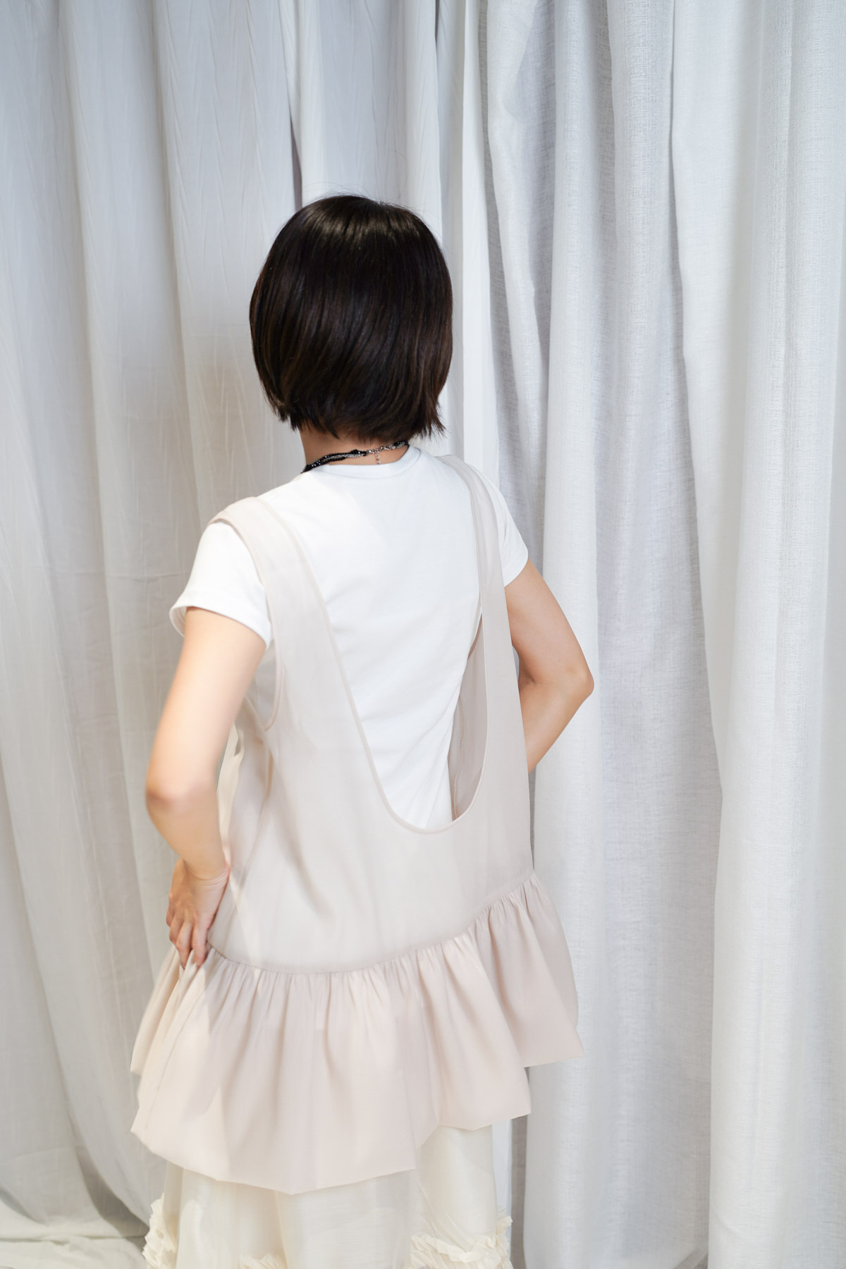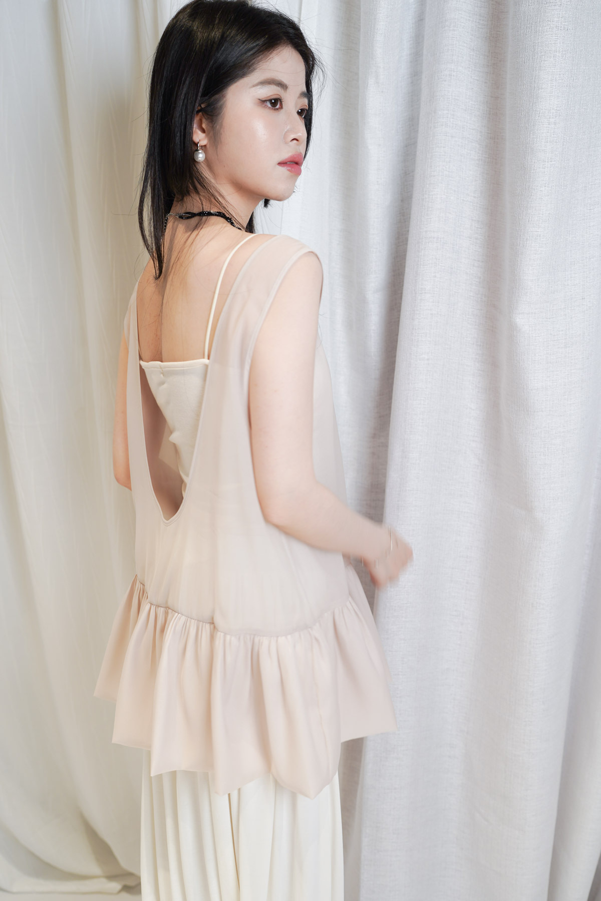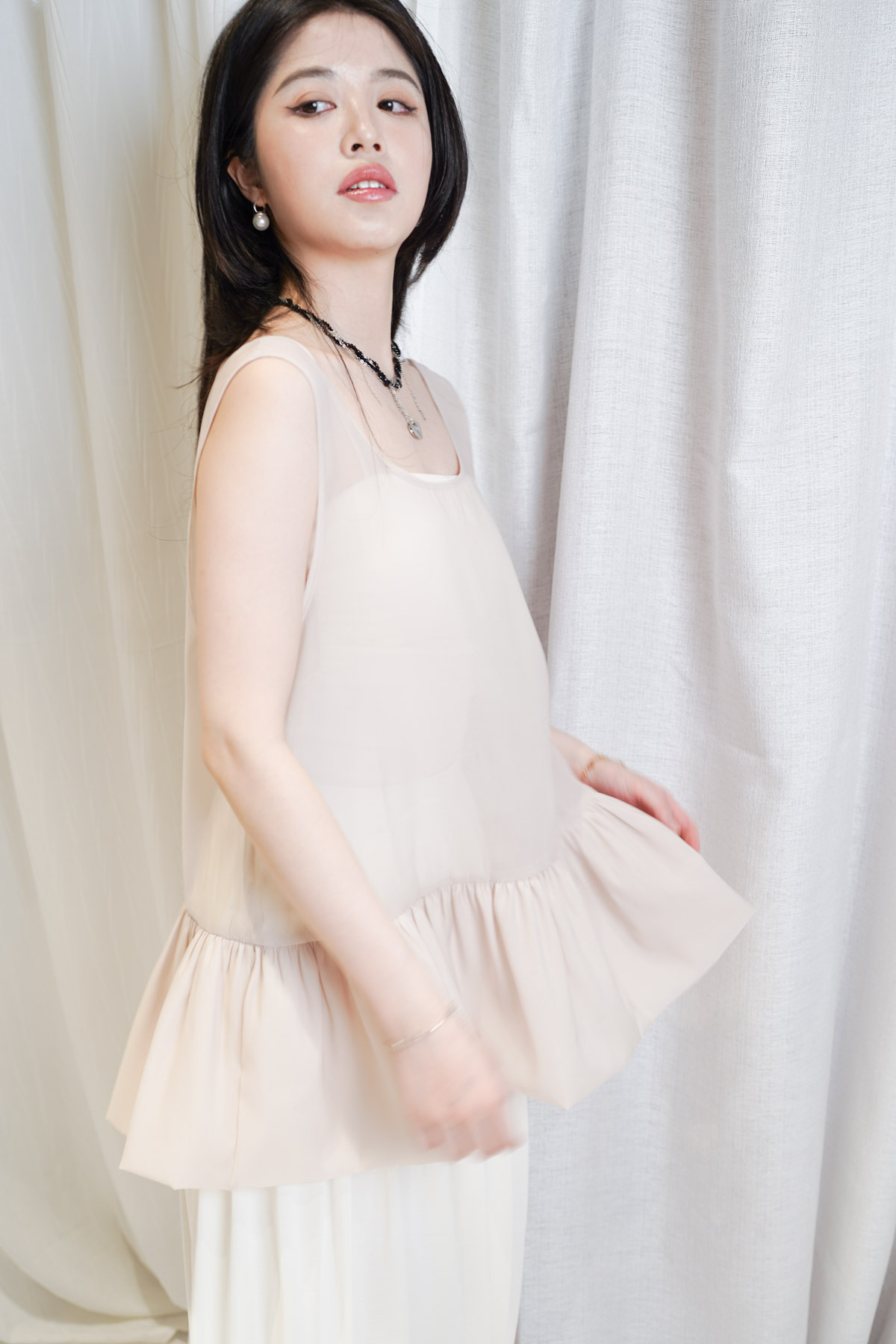 2 sided sheer low puff tank top (BEIGE / BLACK)