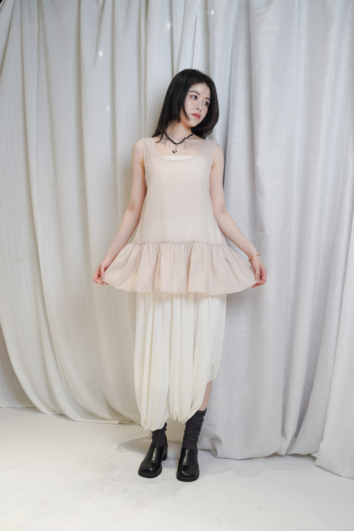 / 大皺褶下擺 傘狀 Peplum 巧妙遮蓋小腹及盆骨線條,視覺極度顯瘦