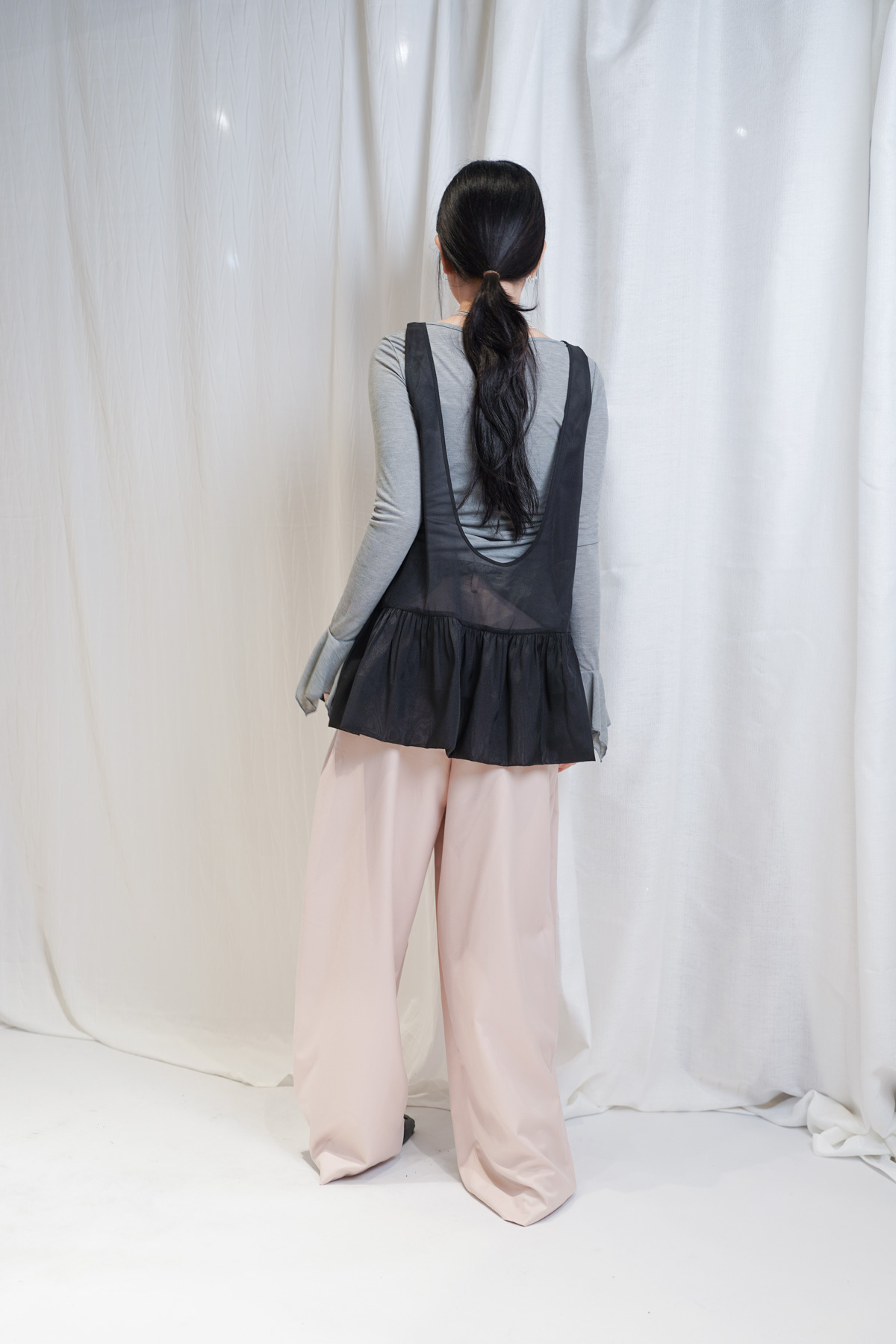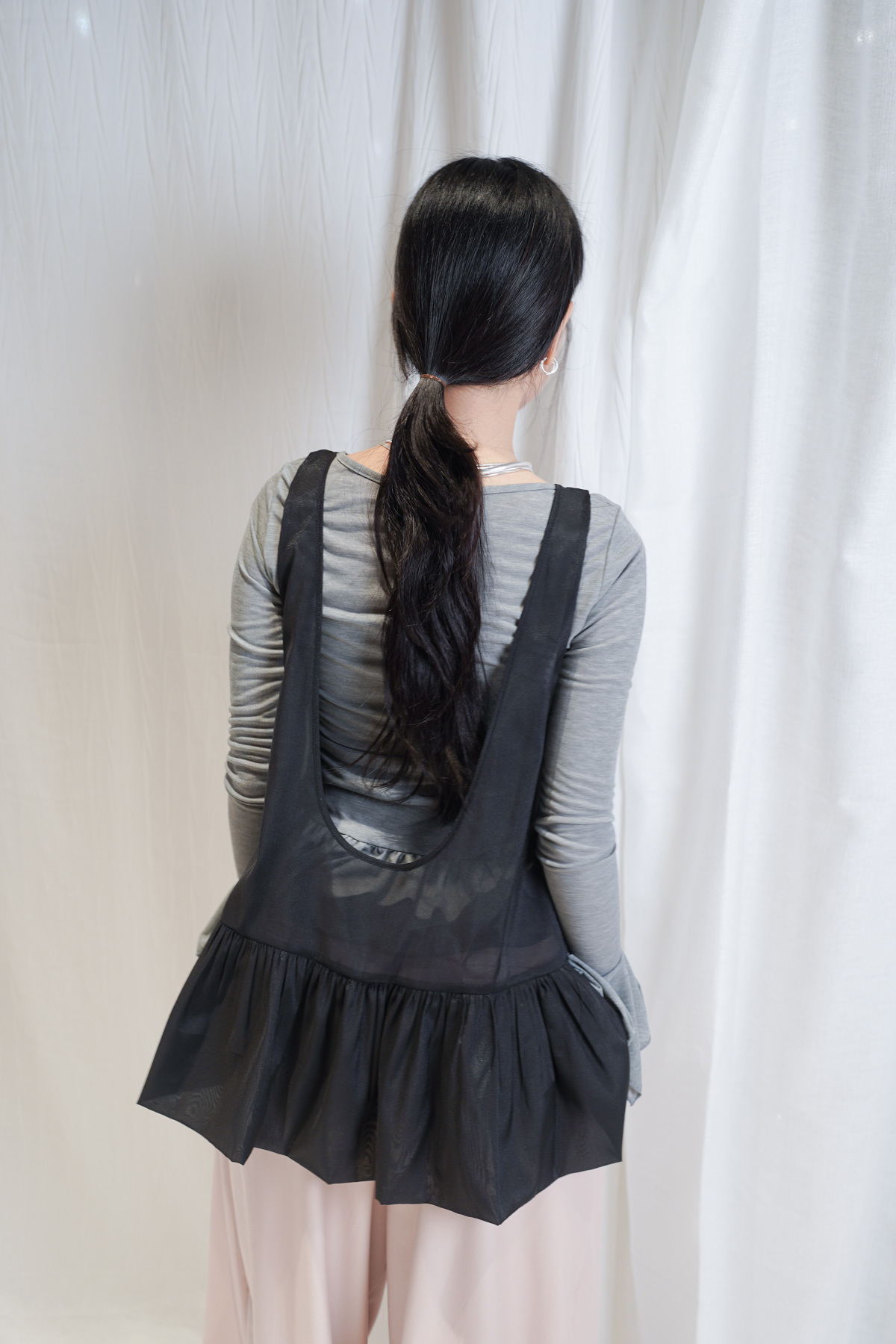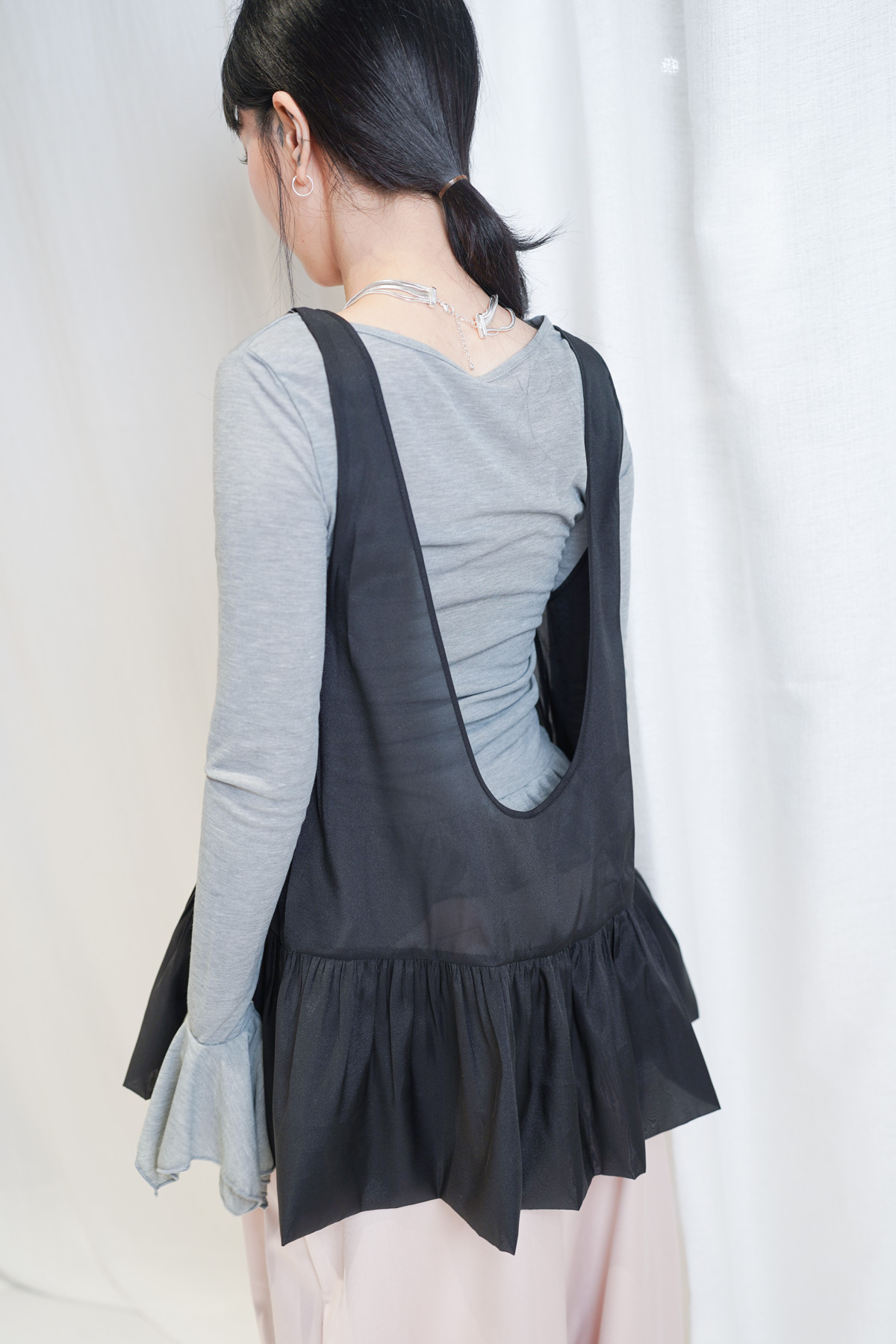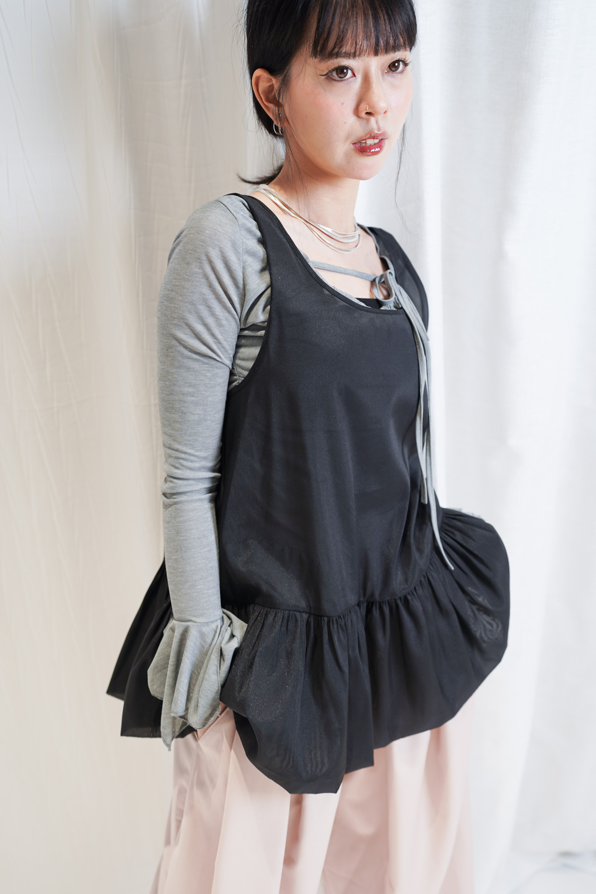 2 sided sheer low puff tank top (BEIGE / BLACK)