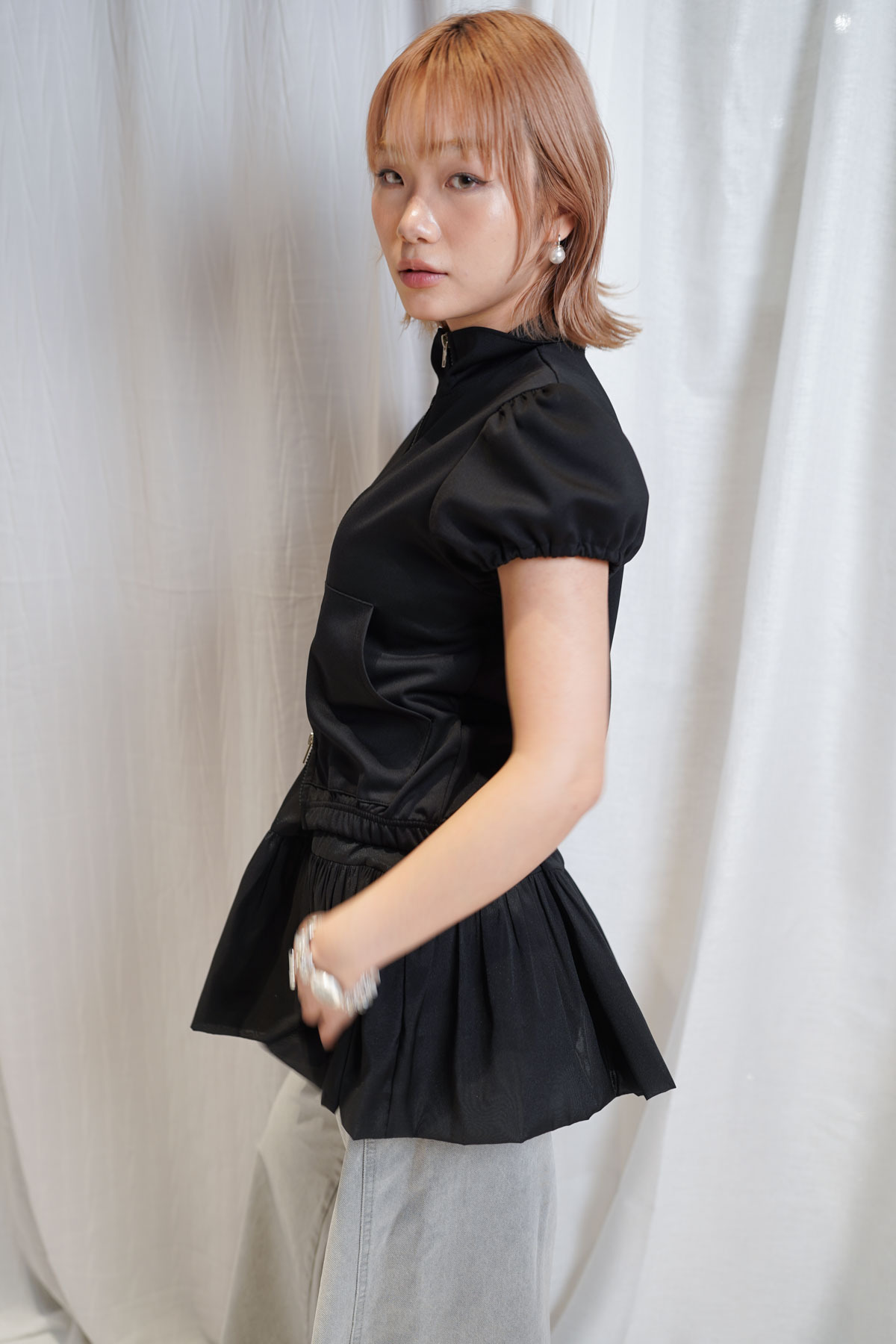 / 布料自帶珍珠光澤,提升穿搭高級感