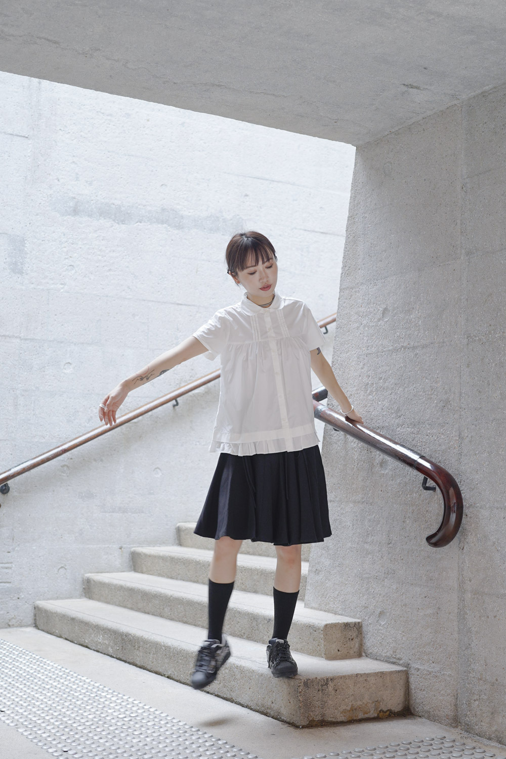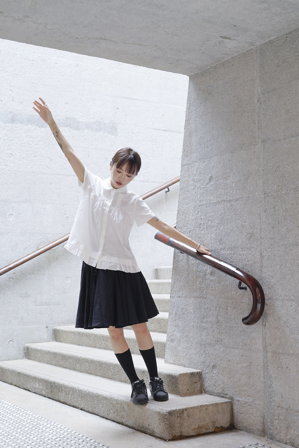 型格中性又帶有少女品味感/ 可配搭西裝外套 顯氣場/ 或配搭fancy恤衫/