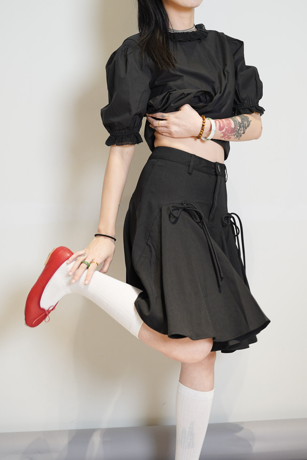 後腰有橡筋設計 適合不同身型女生~/特別口袋蝴蝶結設計 設計感造型感 up!/Fancy 又機能的亮眼時尚單品 /