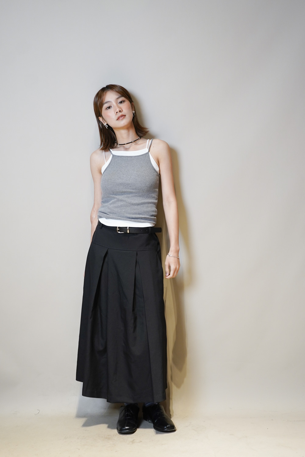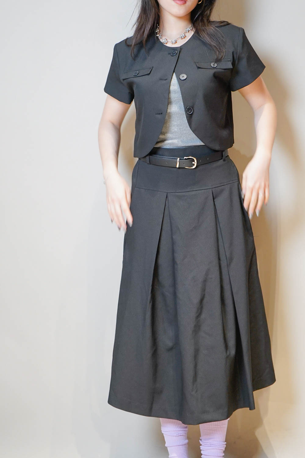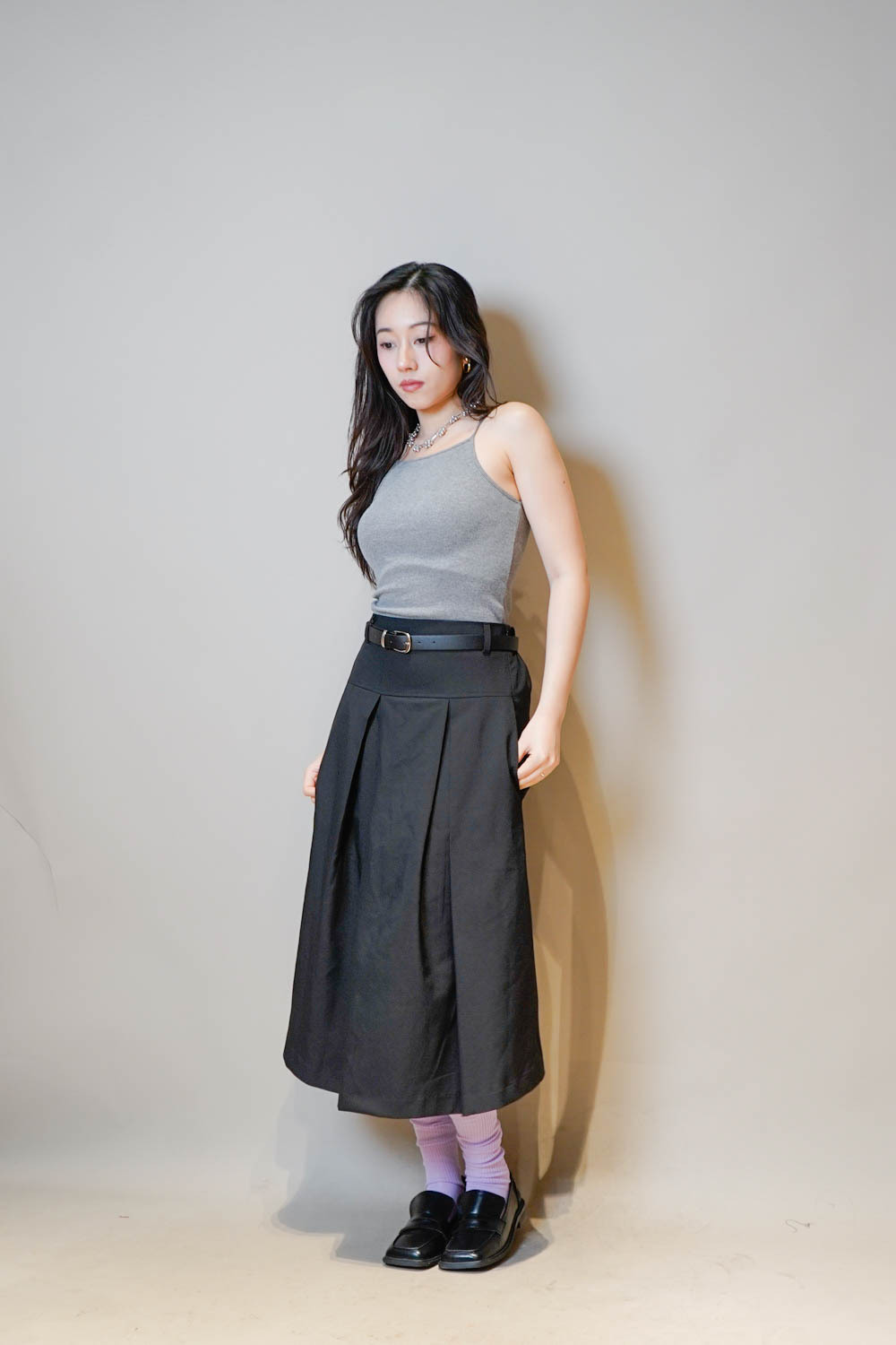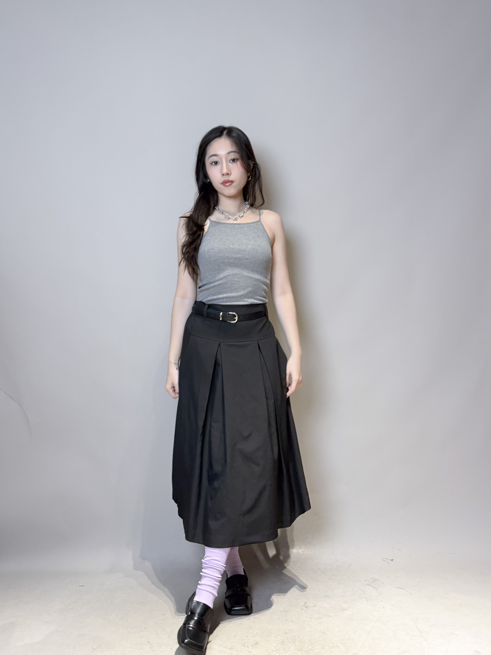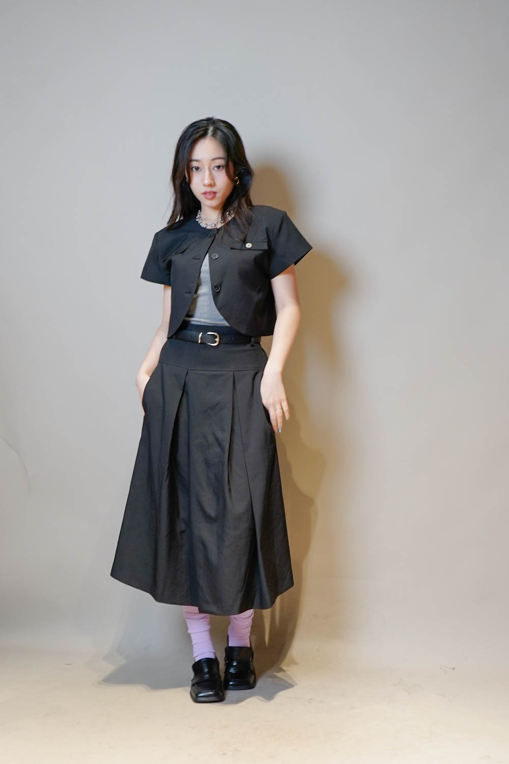 Stranger room made: Eun set - plated skirt with belt - (WHITE/BLACK)