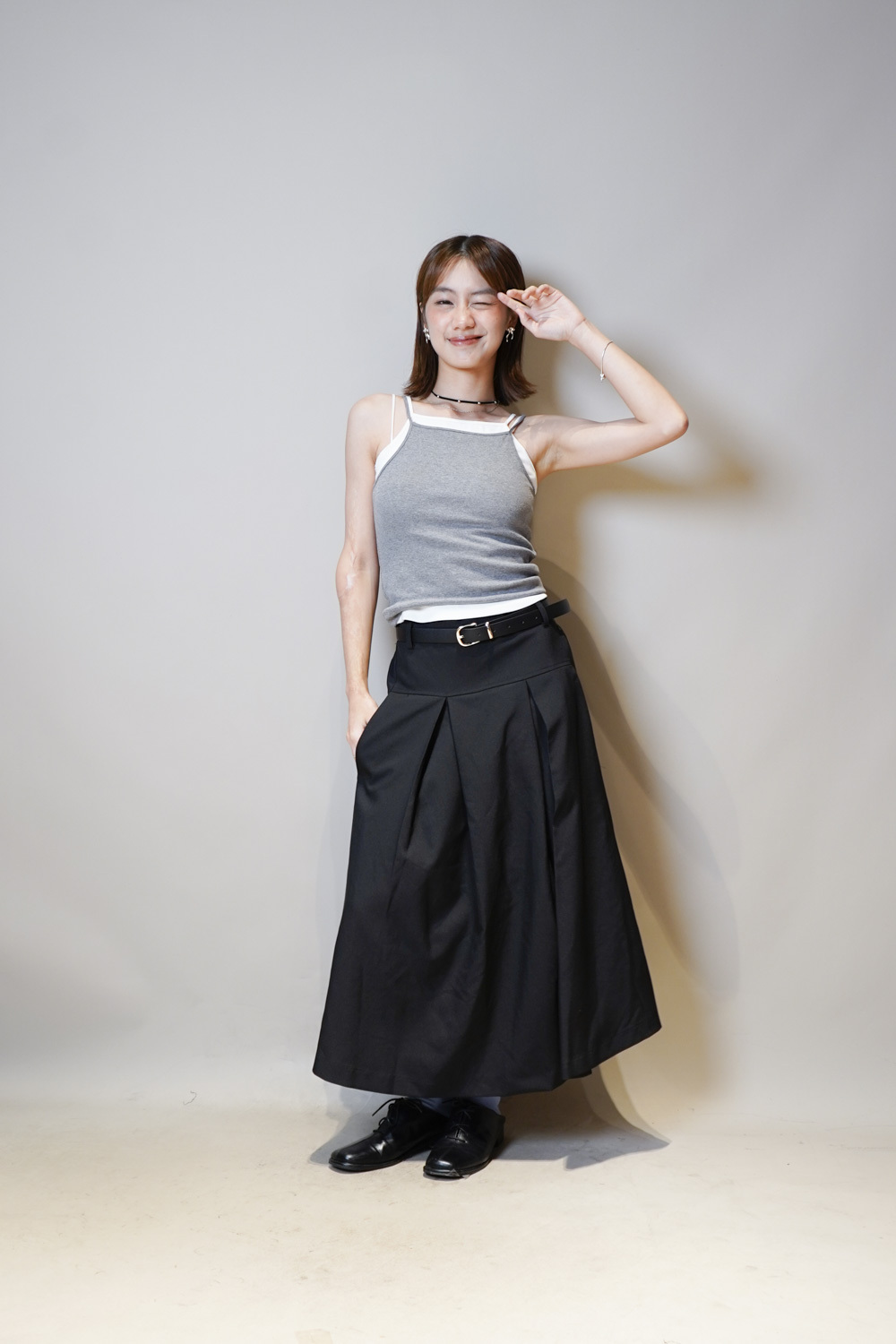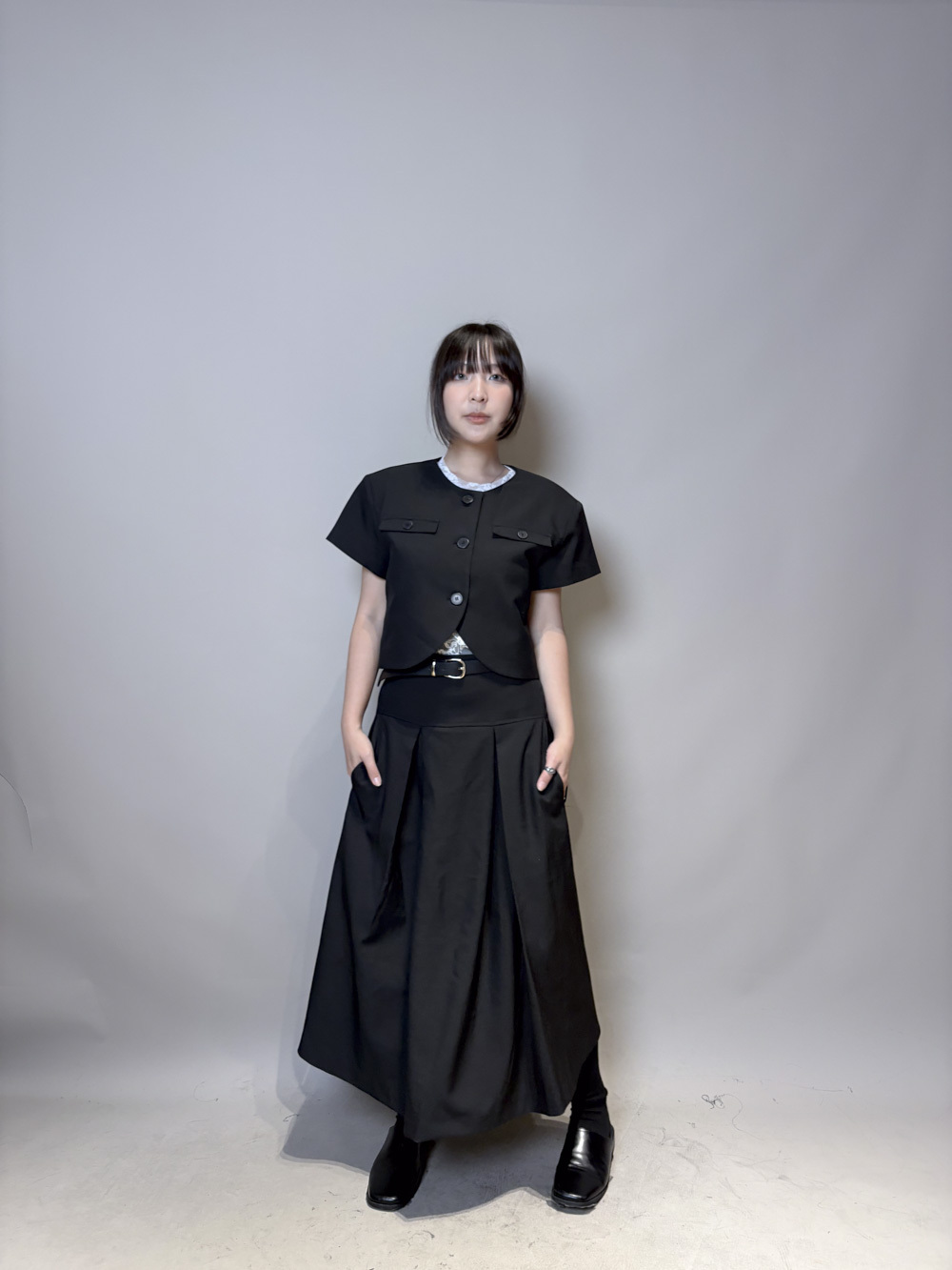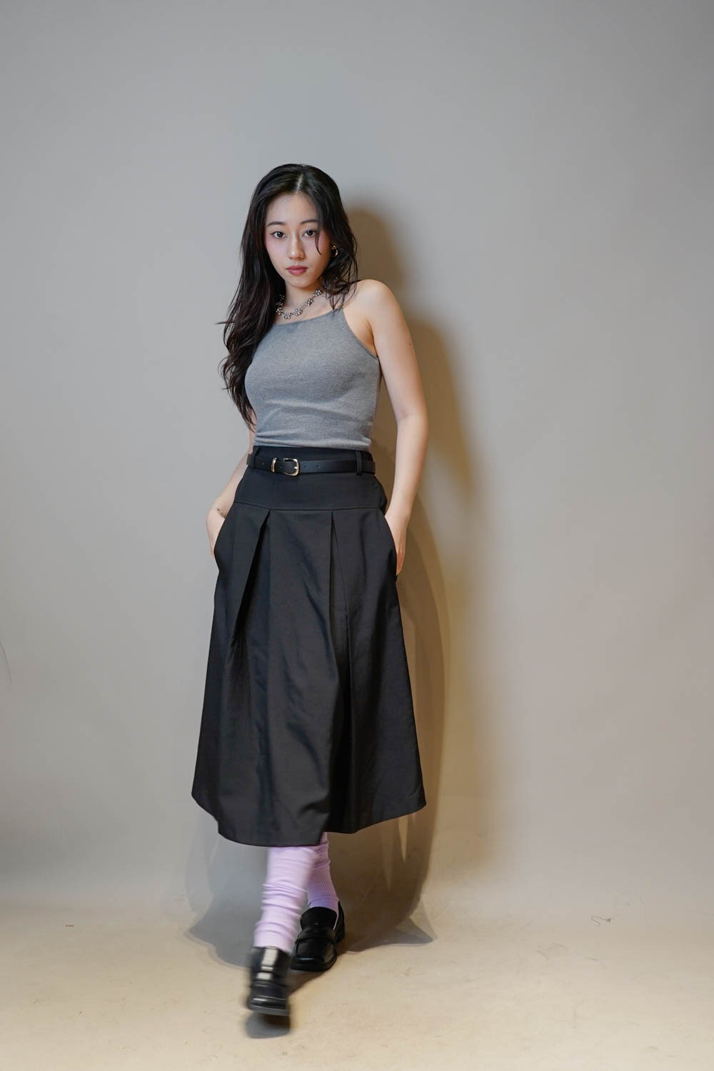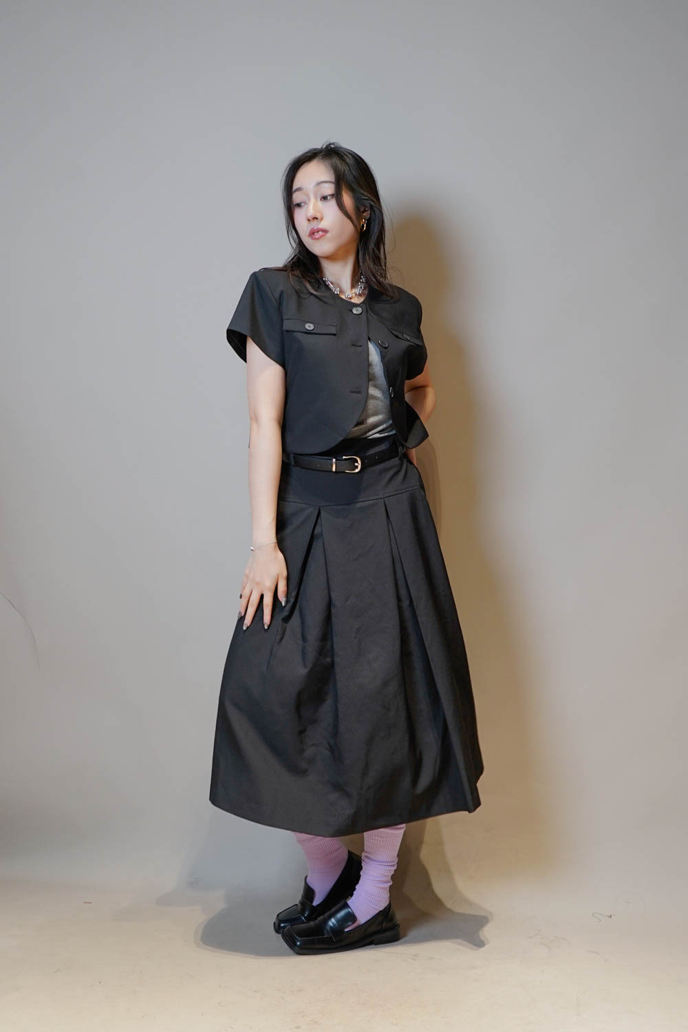 Stranger room made: Eun set - plated skirt with belt - (WHITE/BLACK)
