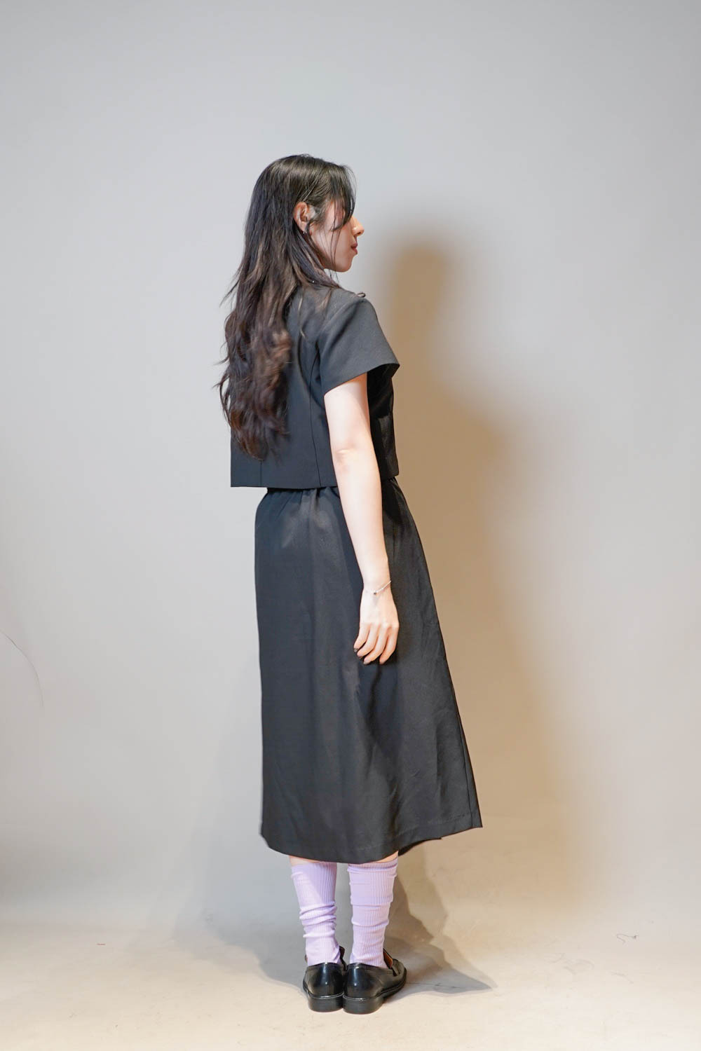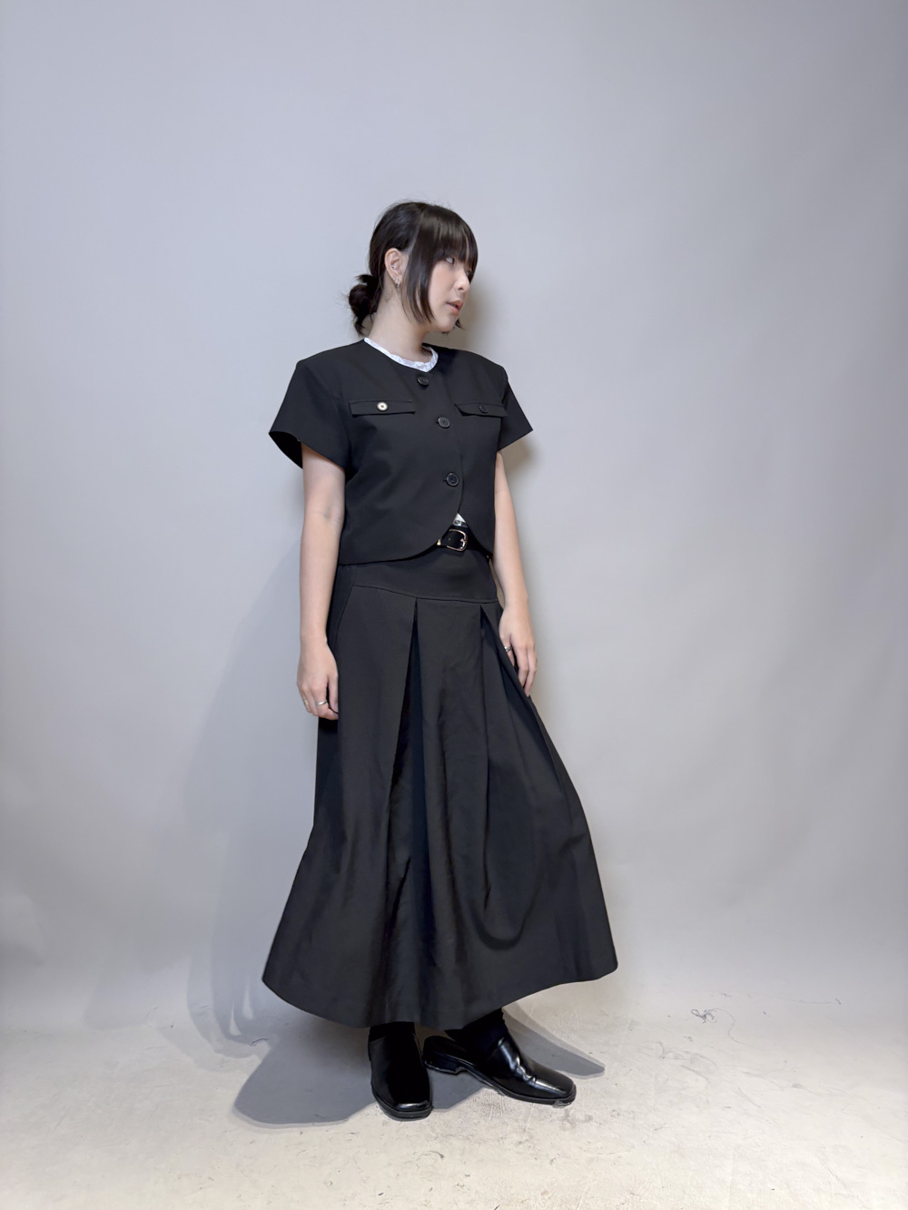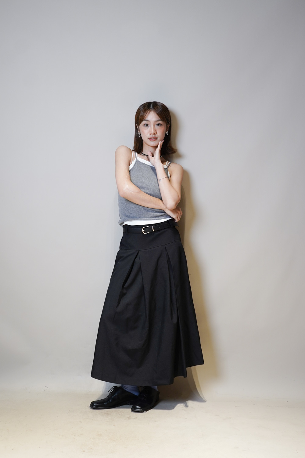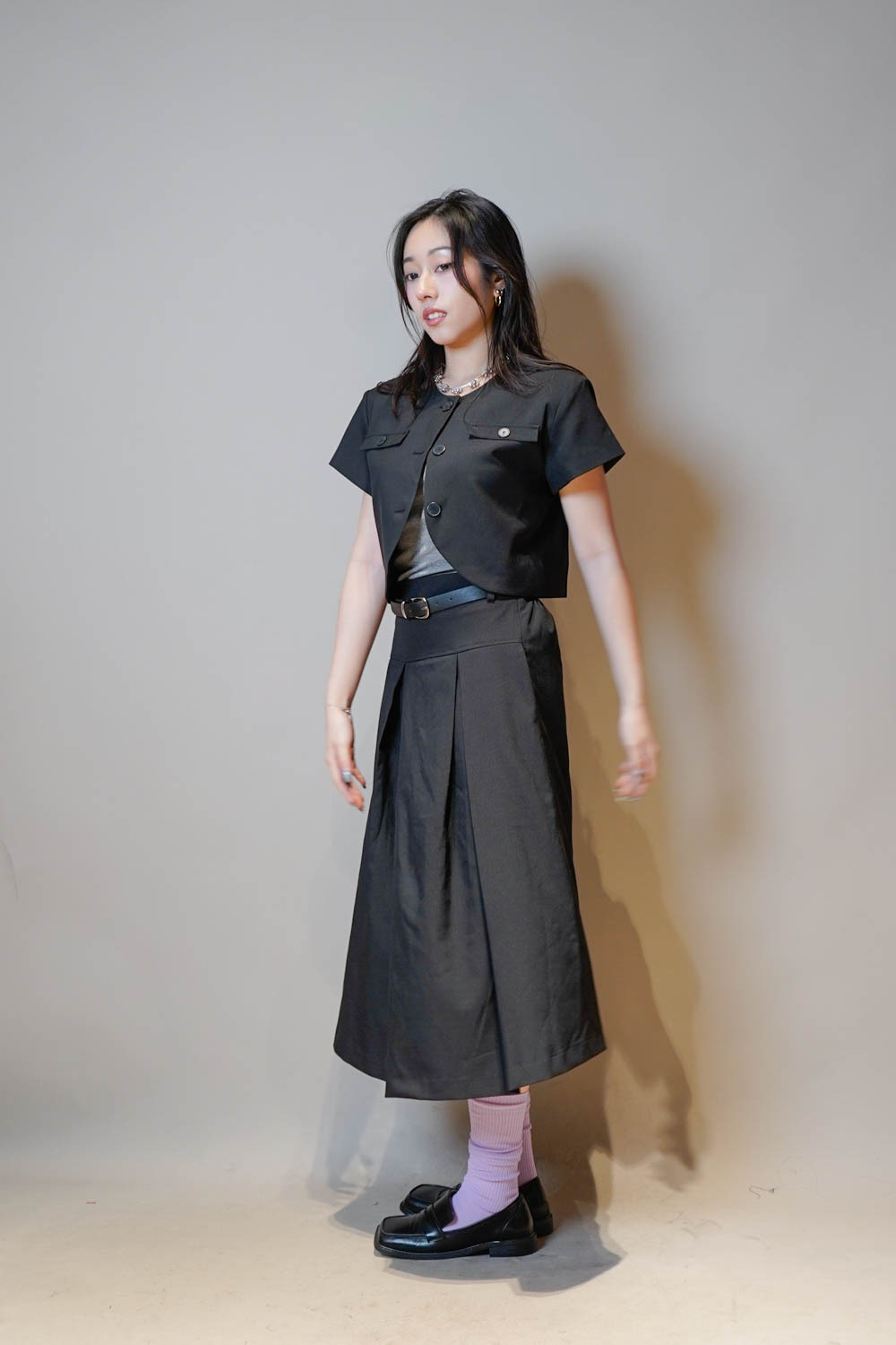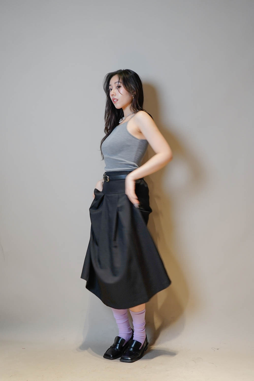 Stranger room made: Eun set - plated skirt with belt - (WHITE/BLACK)
