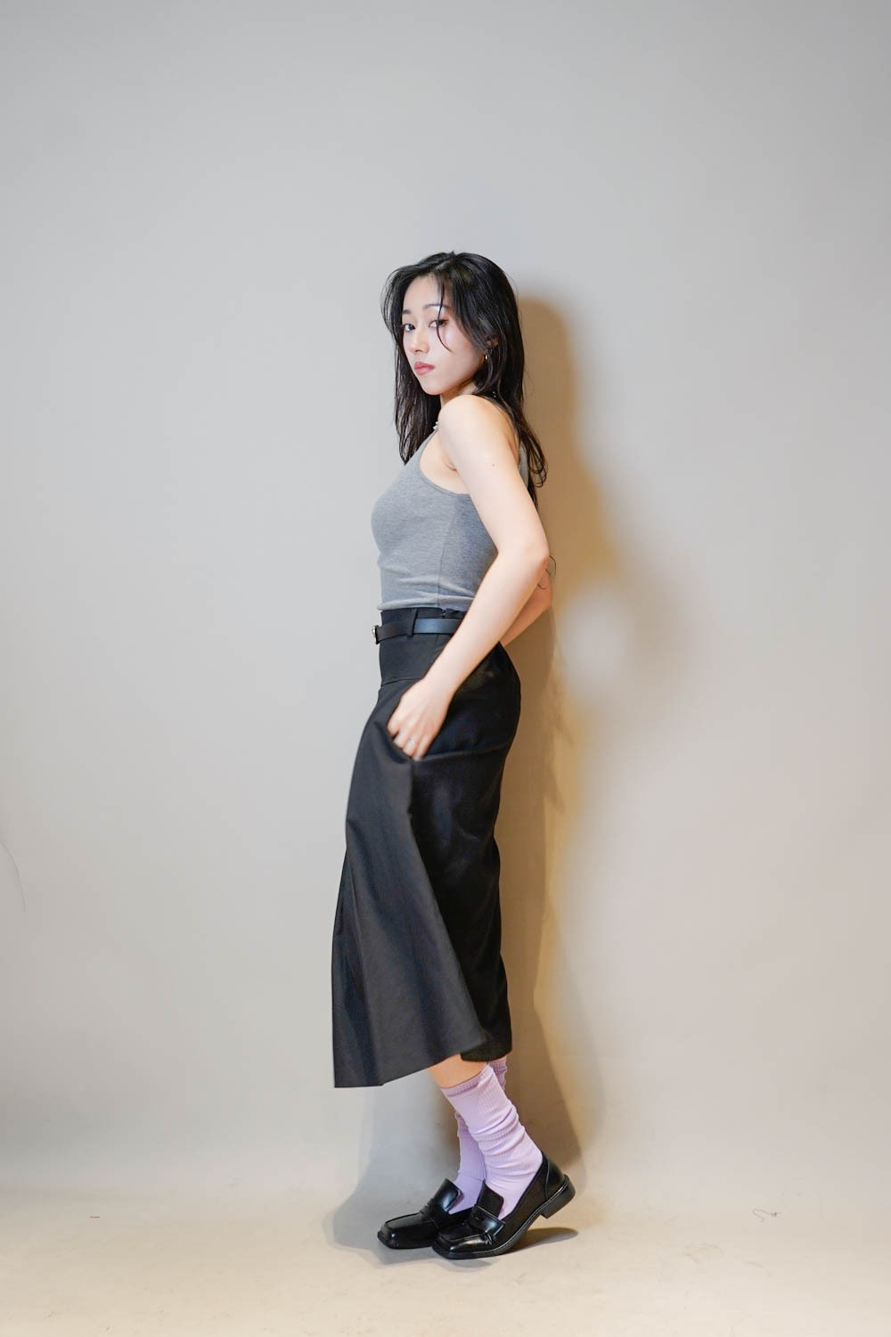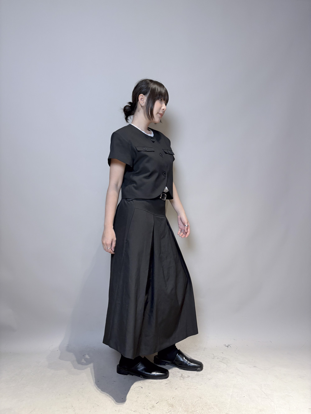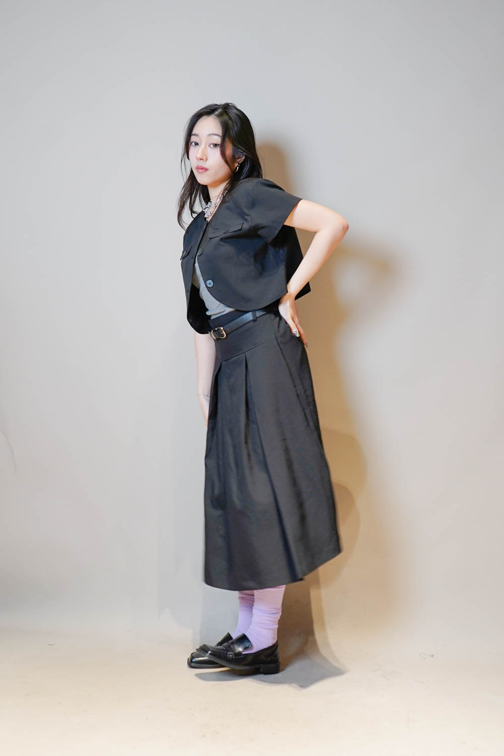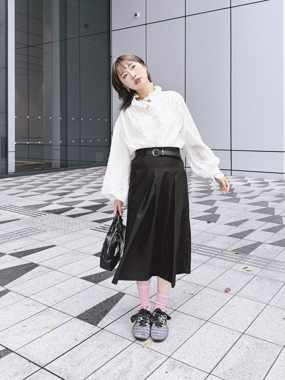 Stranger room made: Eun set - plated skirt with belt - (WHITE/BLACK)