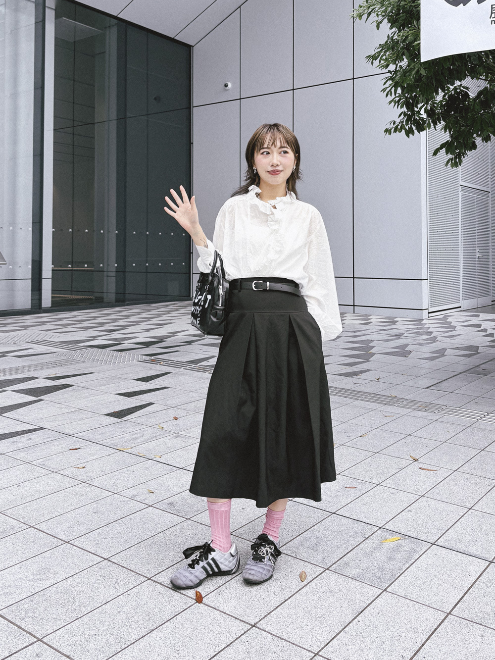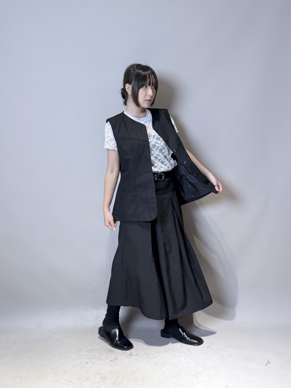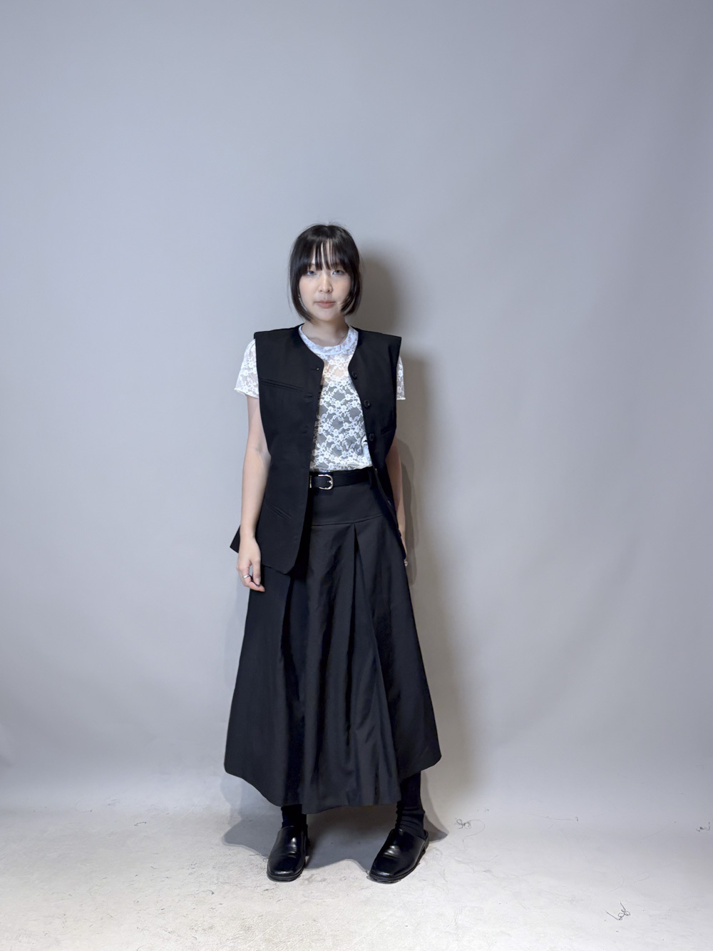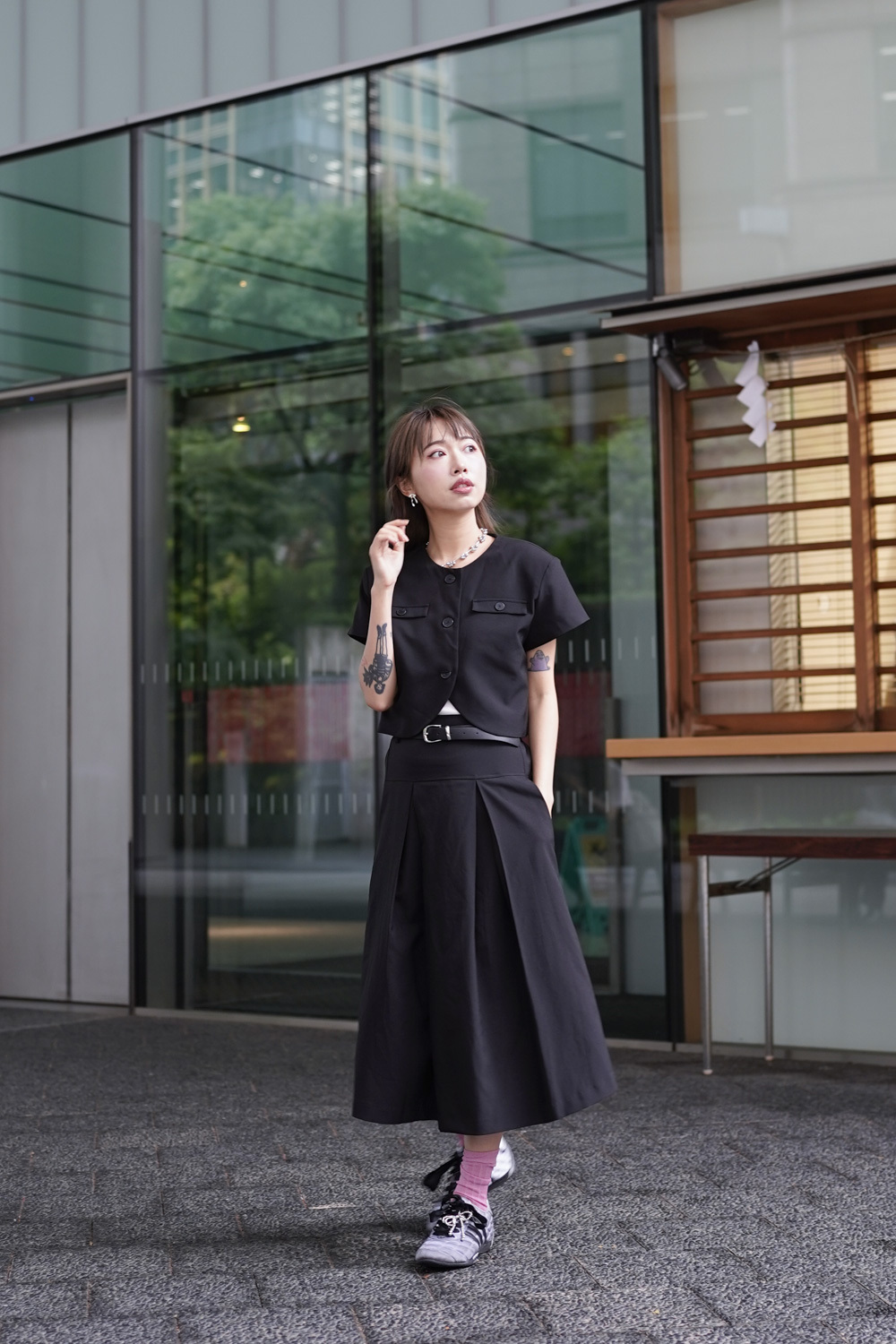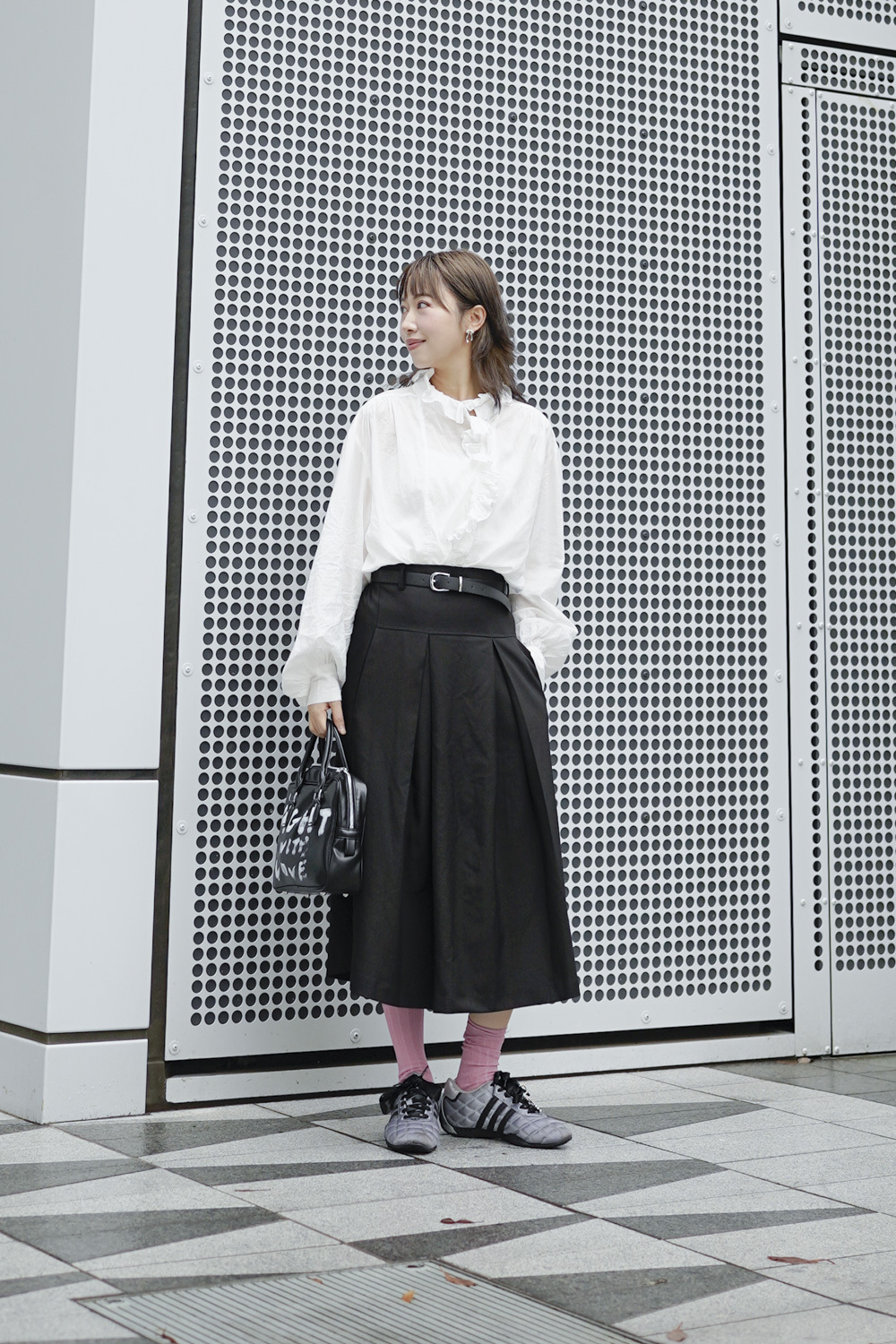 Stranger room made: Eun set - plated skirt with belt - (WHITE/BLACK)