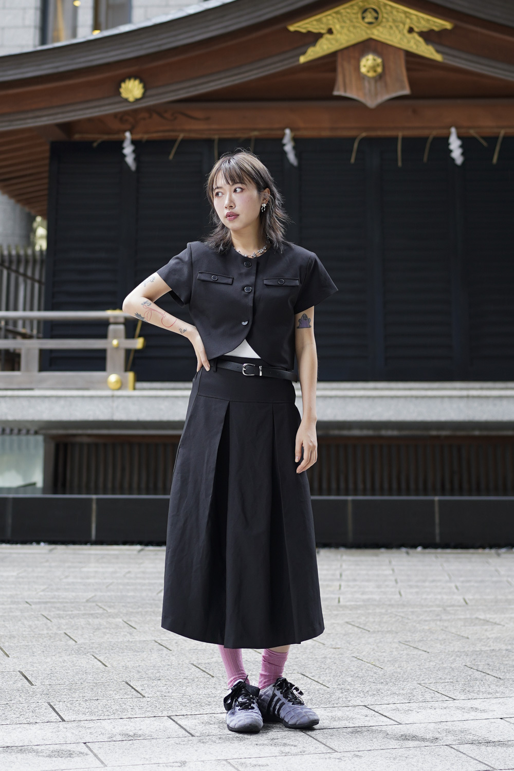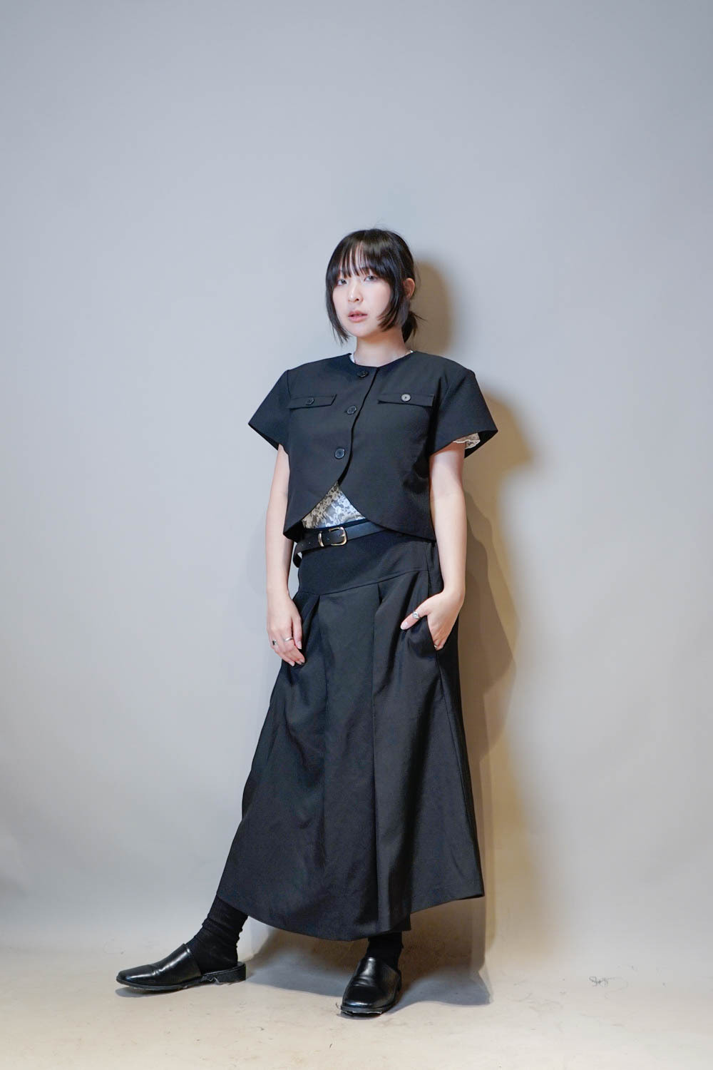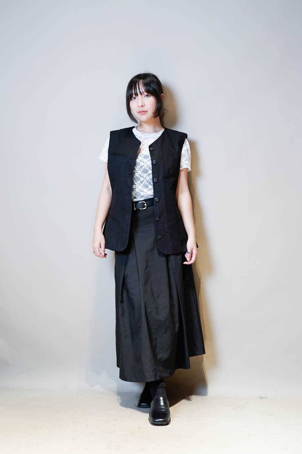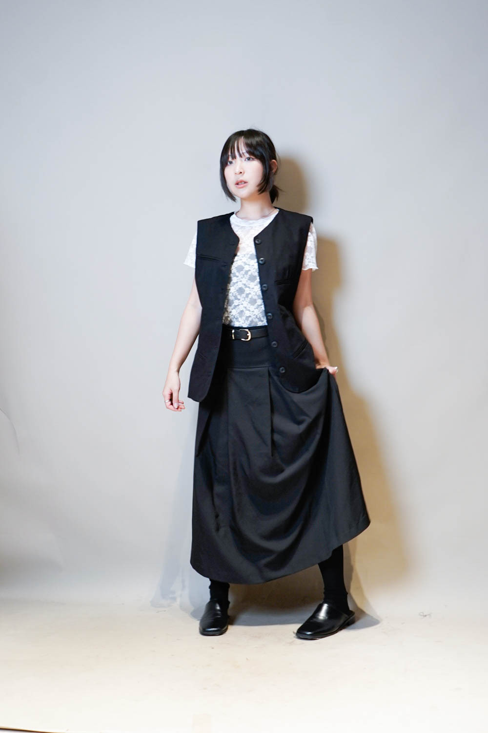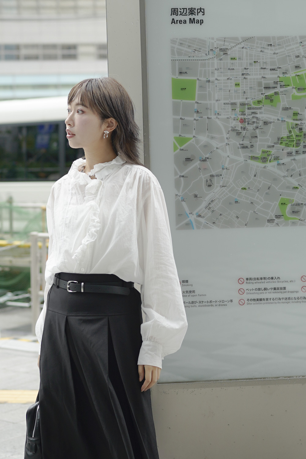 Stranger room made: Eun set - plated skirt with belt - (WHITE/BLACK)