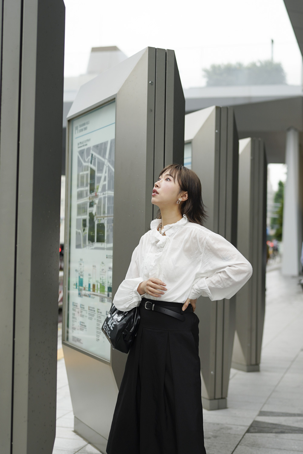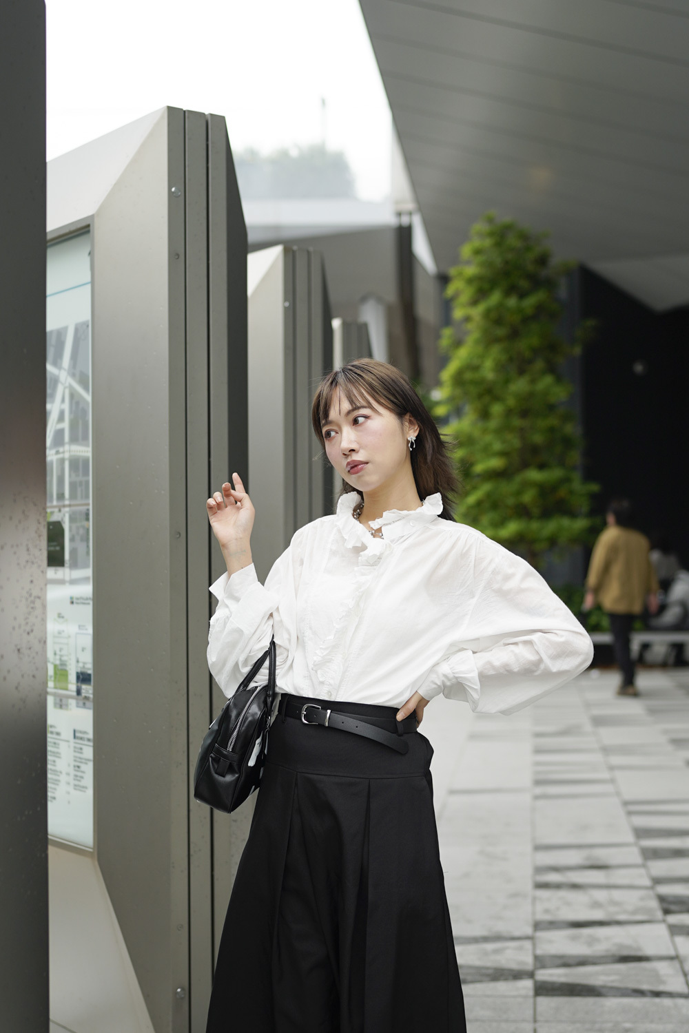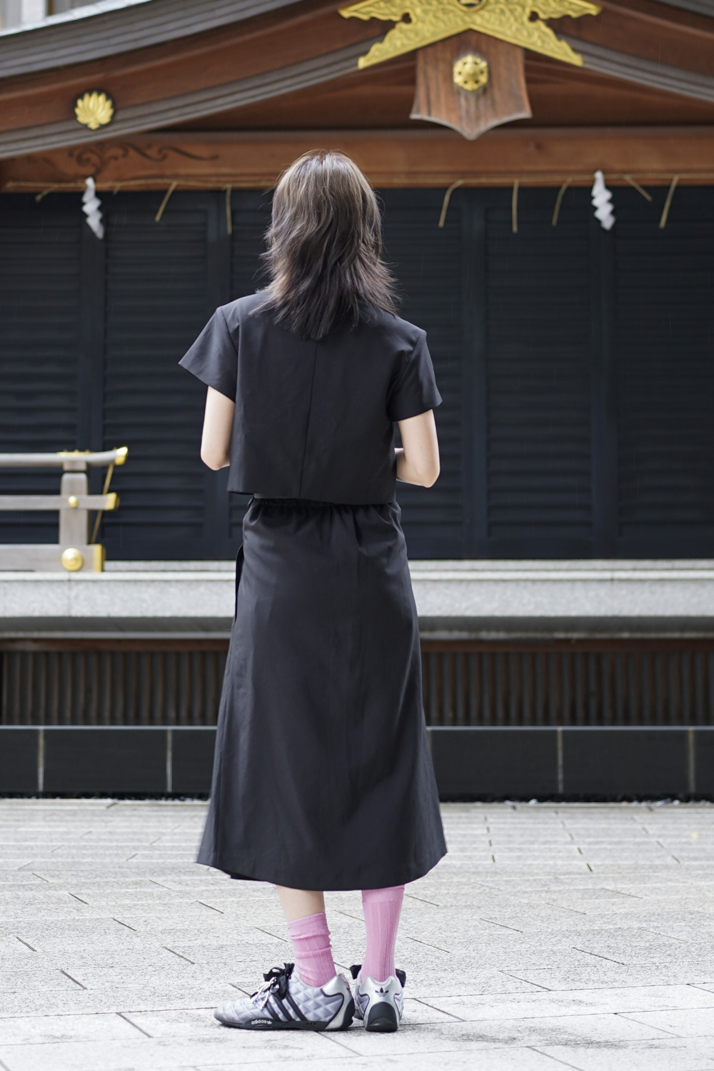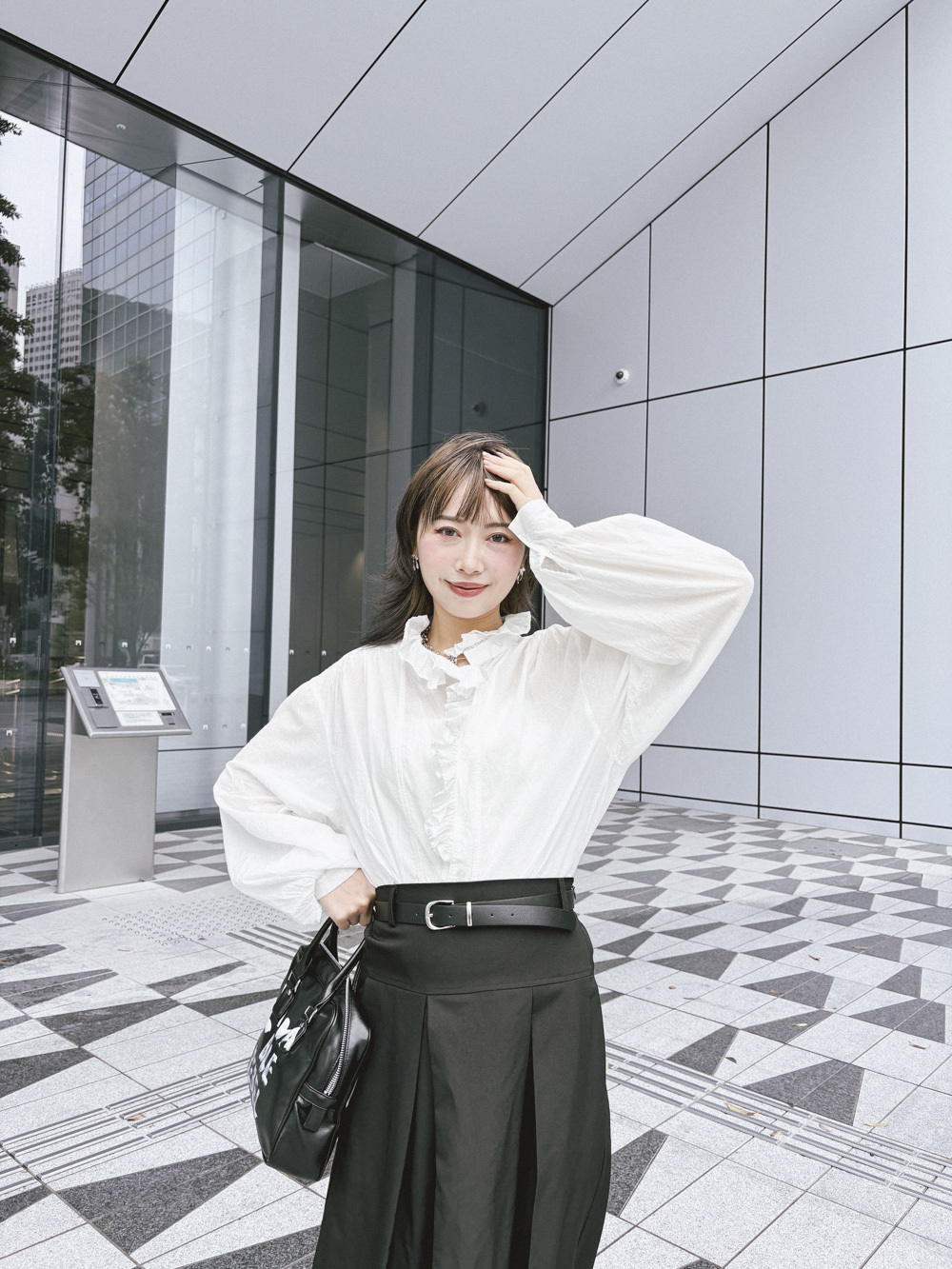 Stranger room made: Eun set - plated skirt with belt - (WHITE/BLACK)