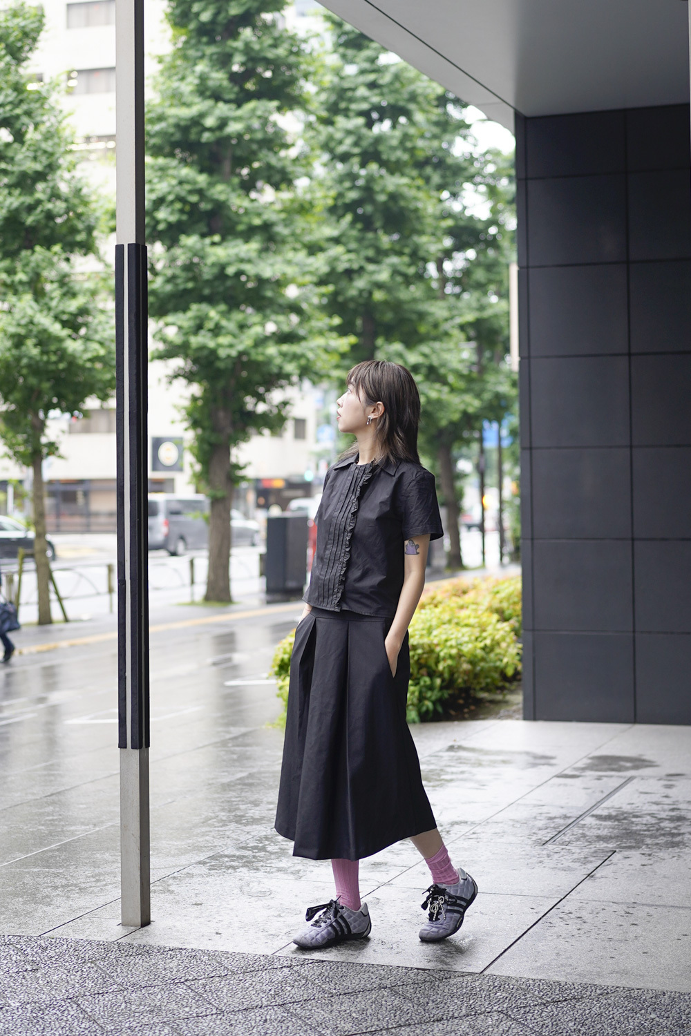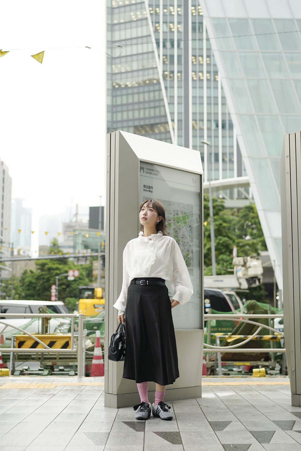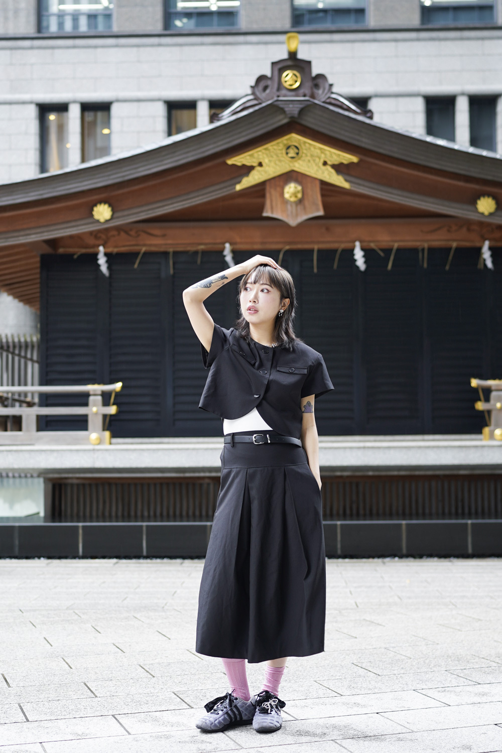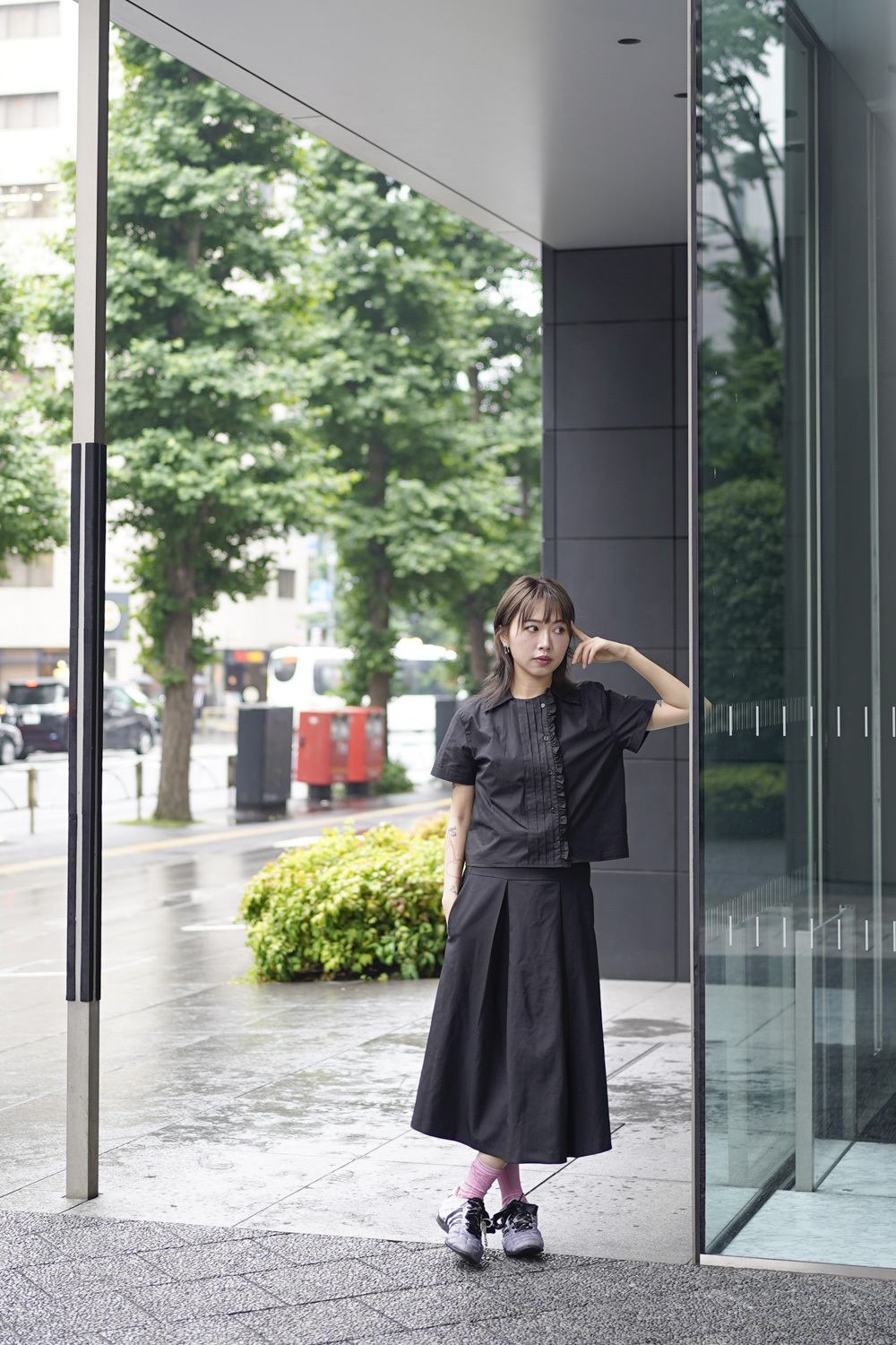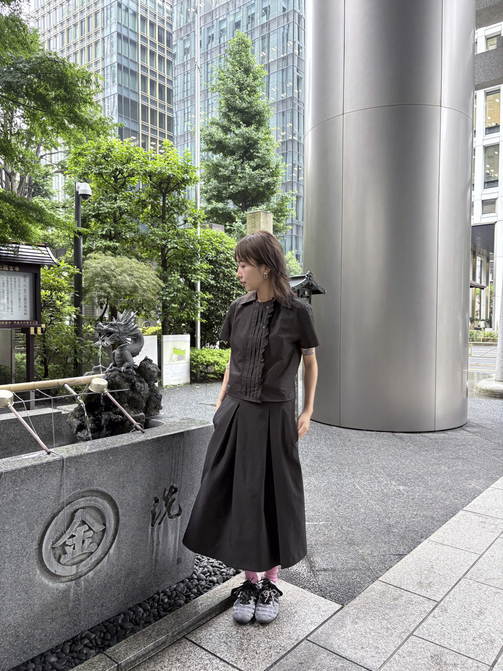 Stranger room made: Eun set - plated skirt with belt - (WHITE/BLACK)