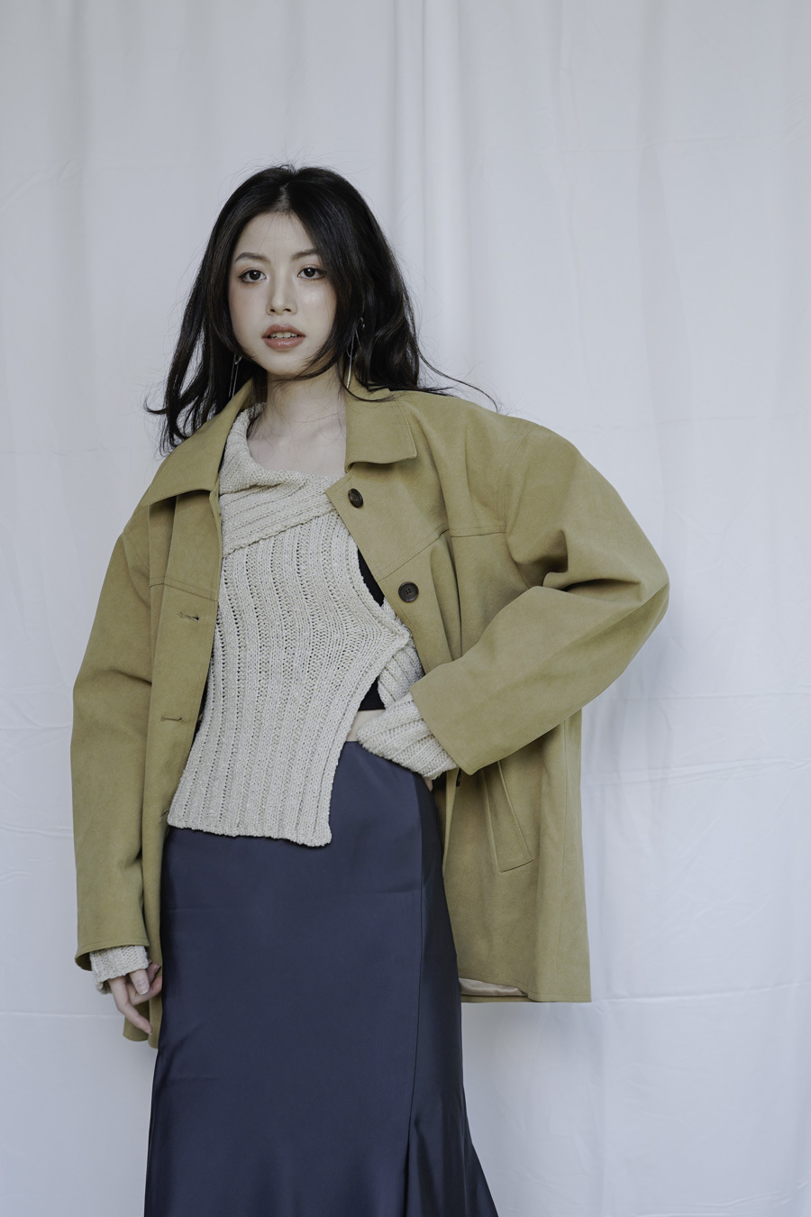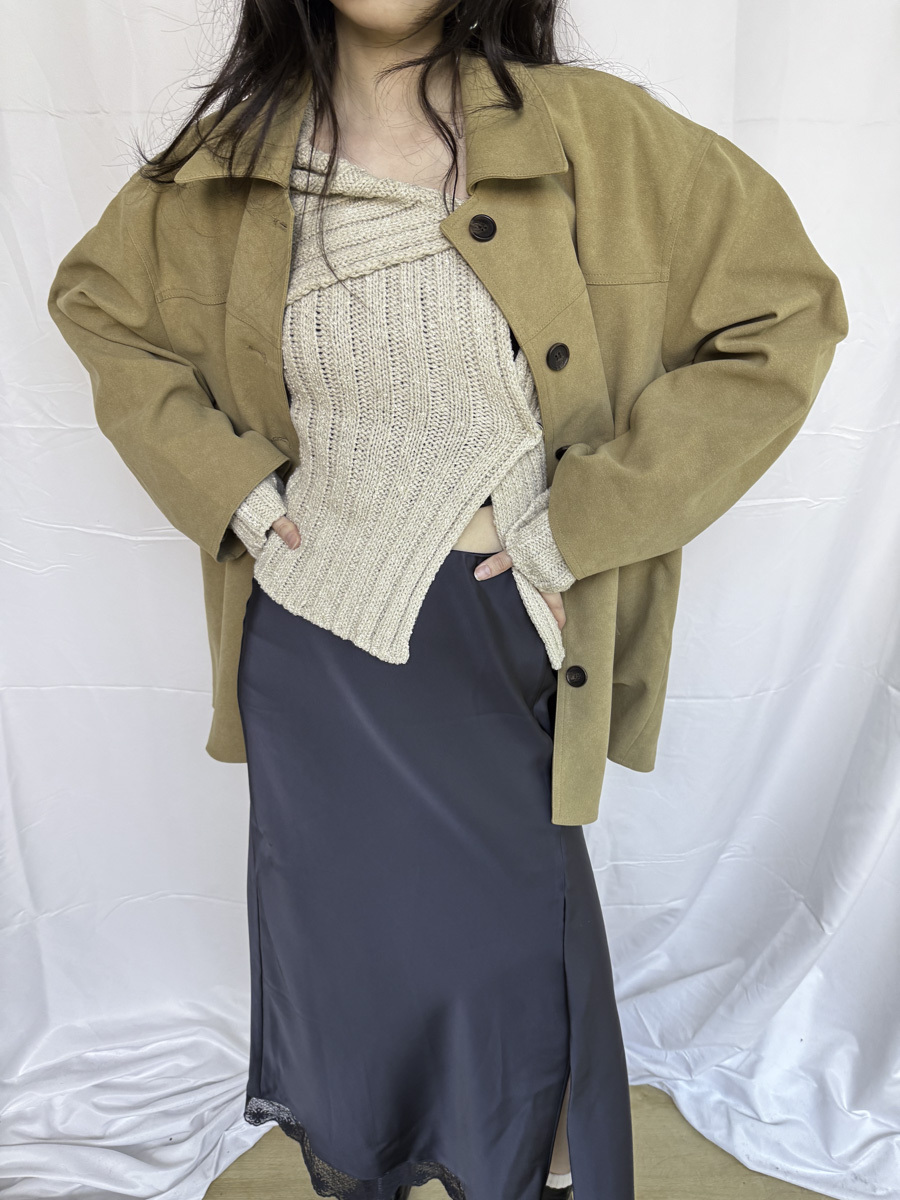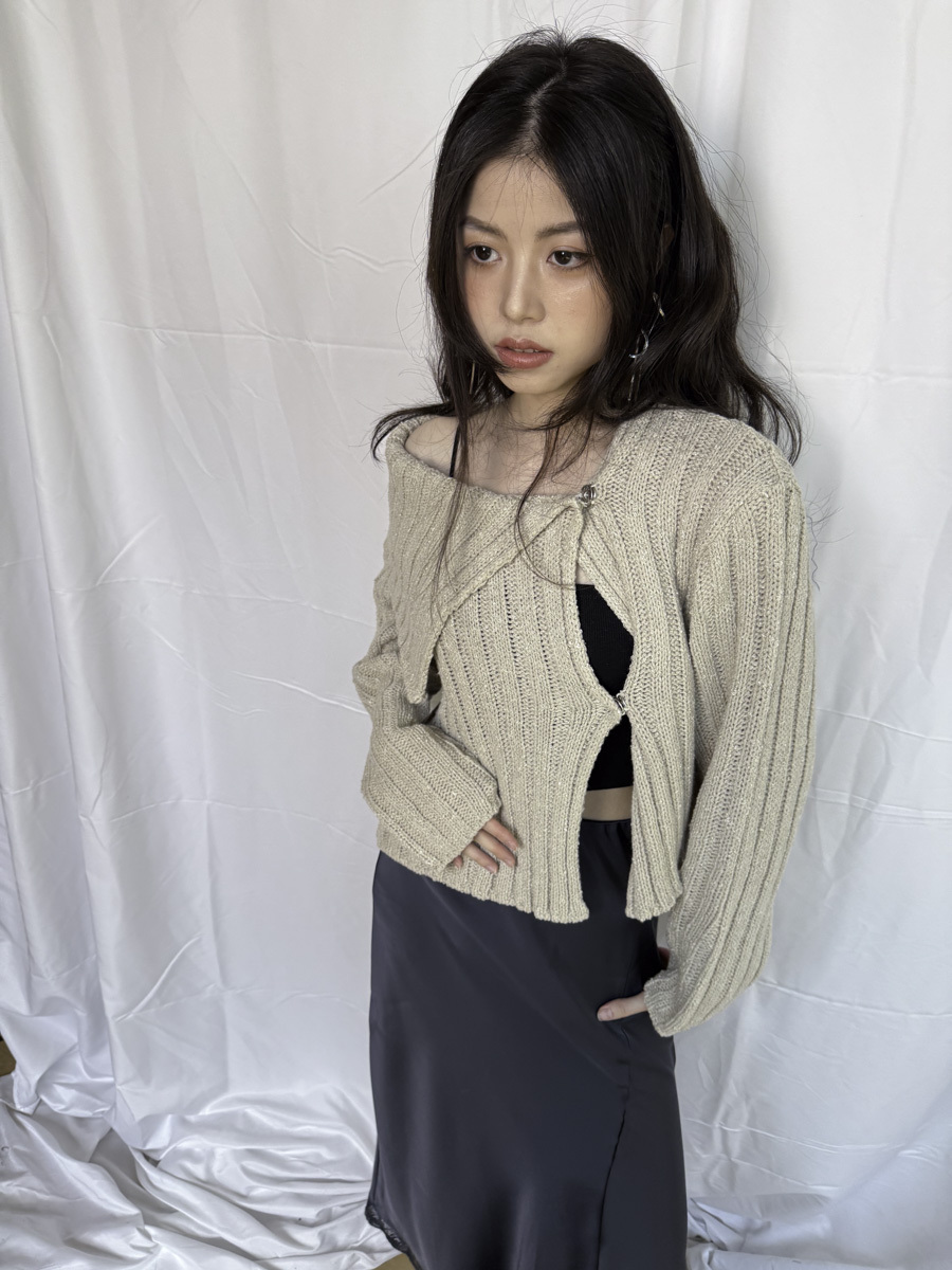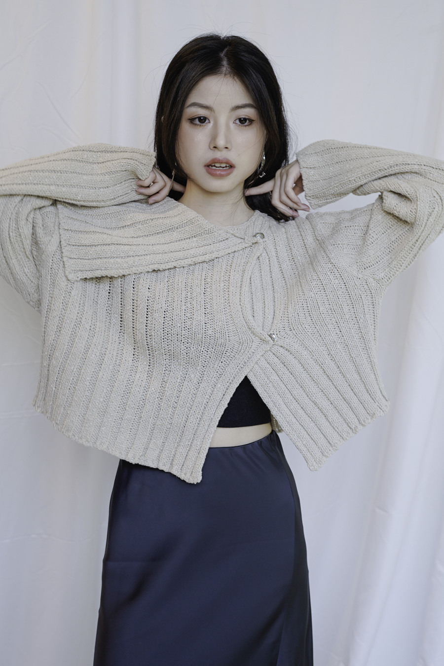兩邊不規則鈕扣 露出腰線 型格時尚/