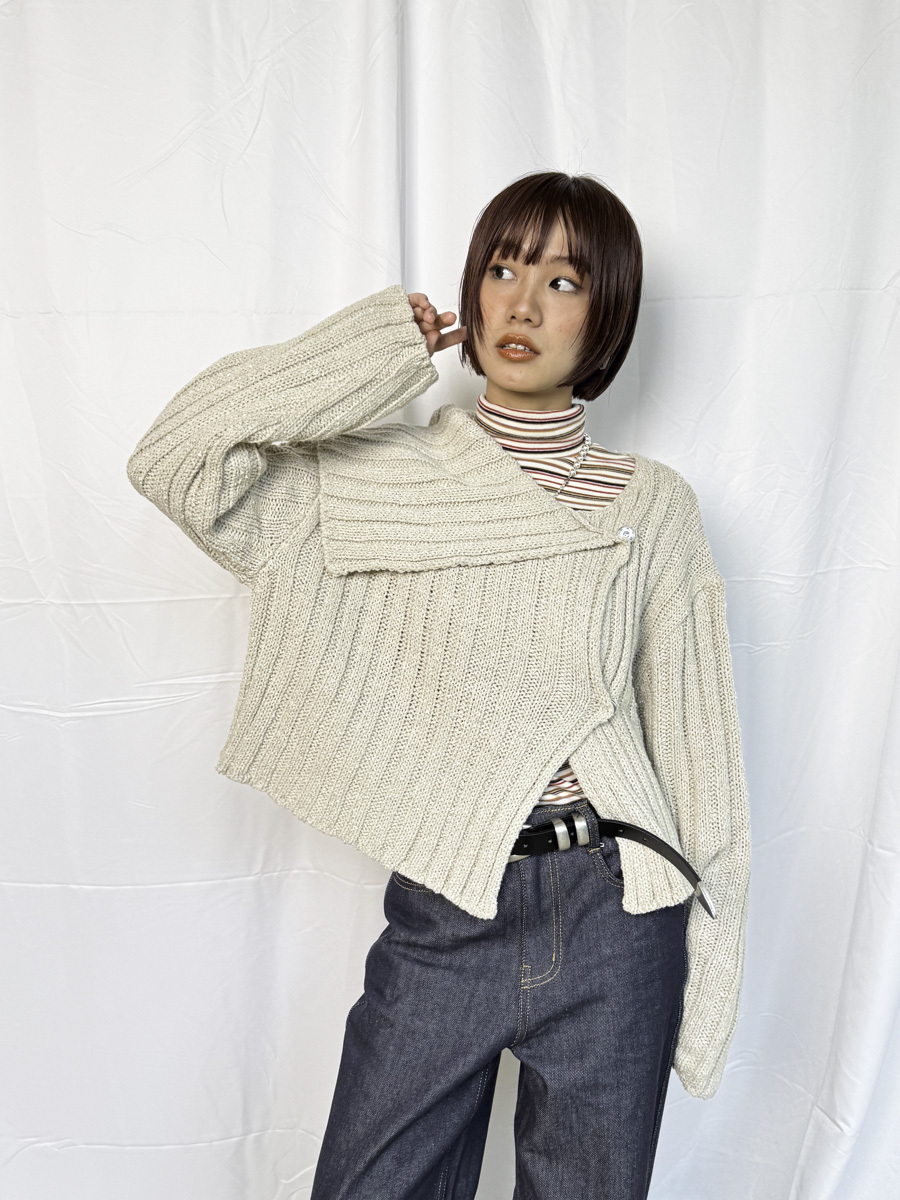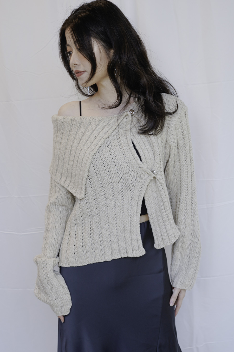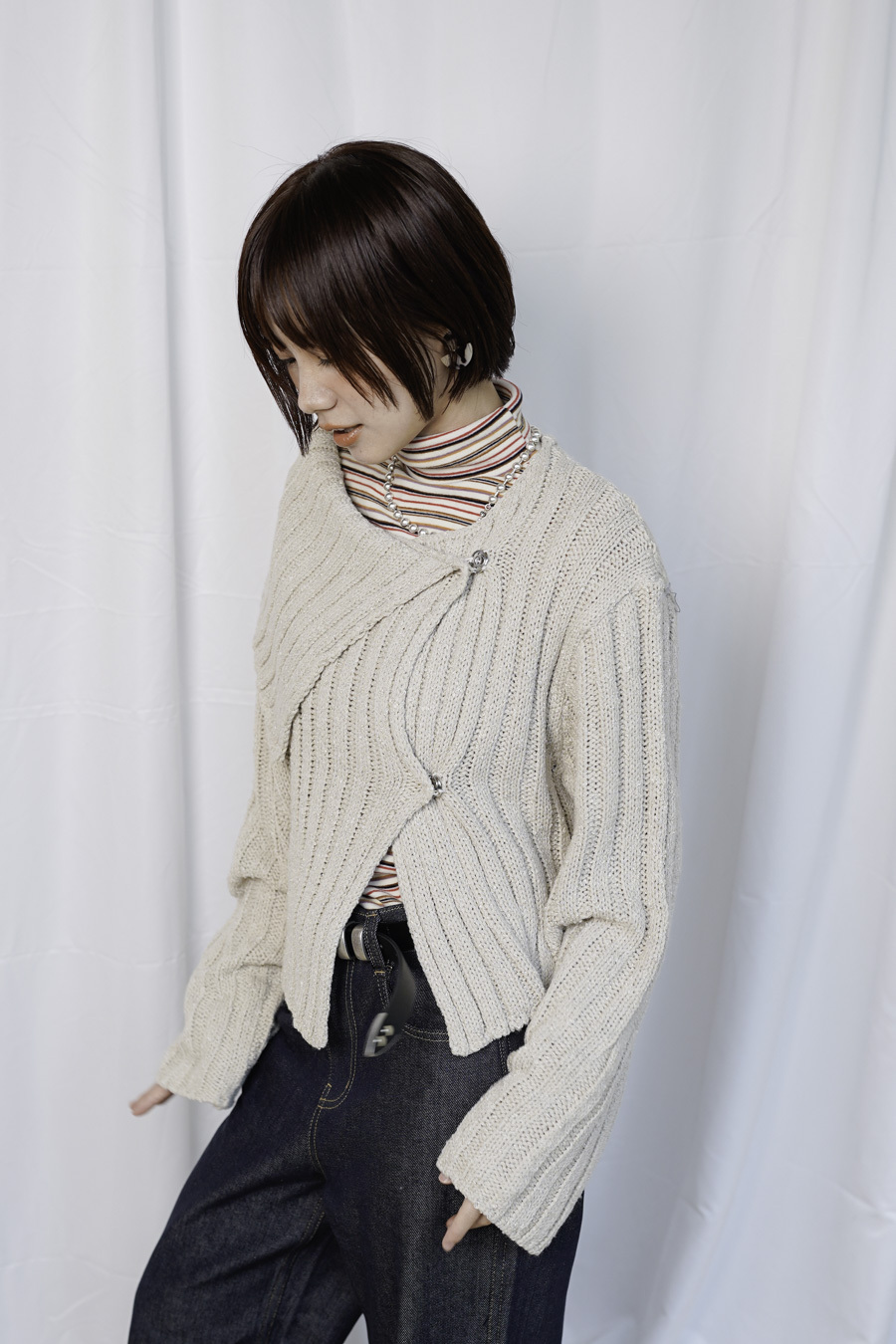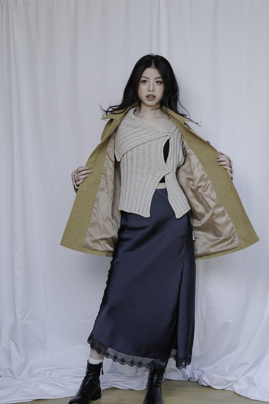 兩邊不規則鈕扣 露出腰線 型格時尚/