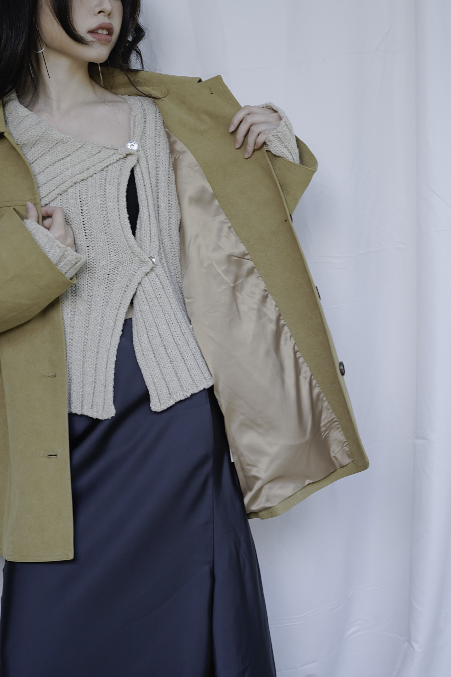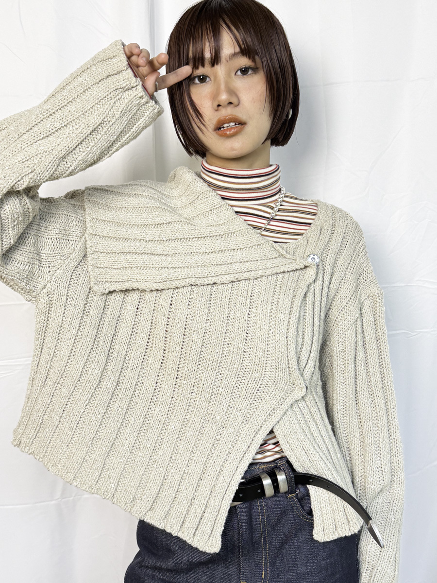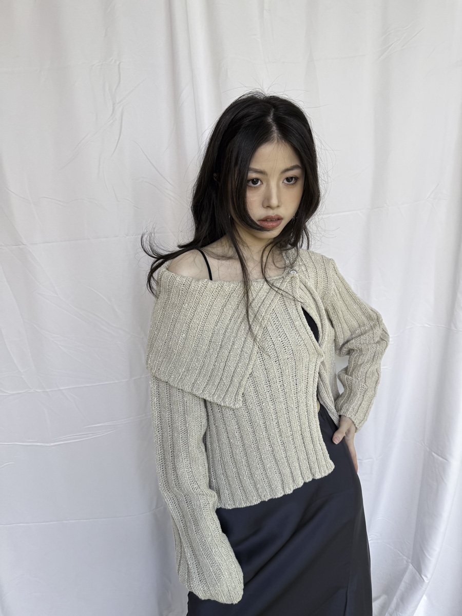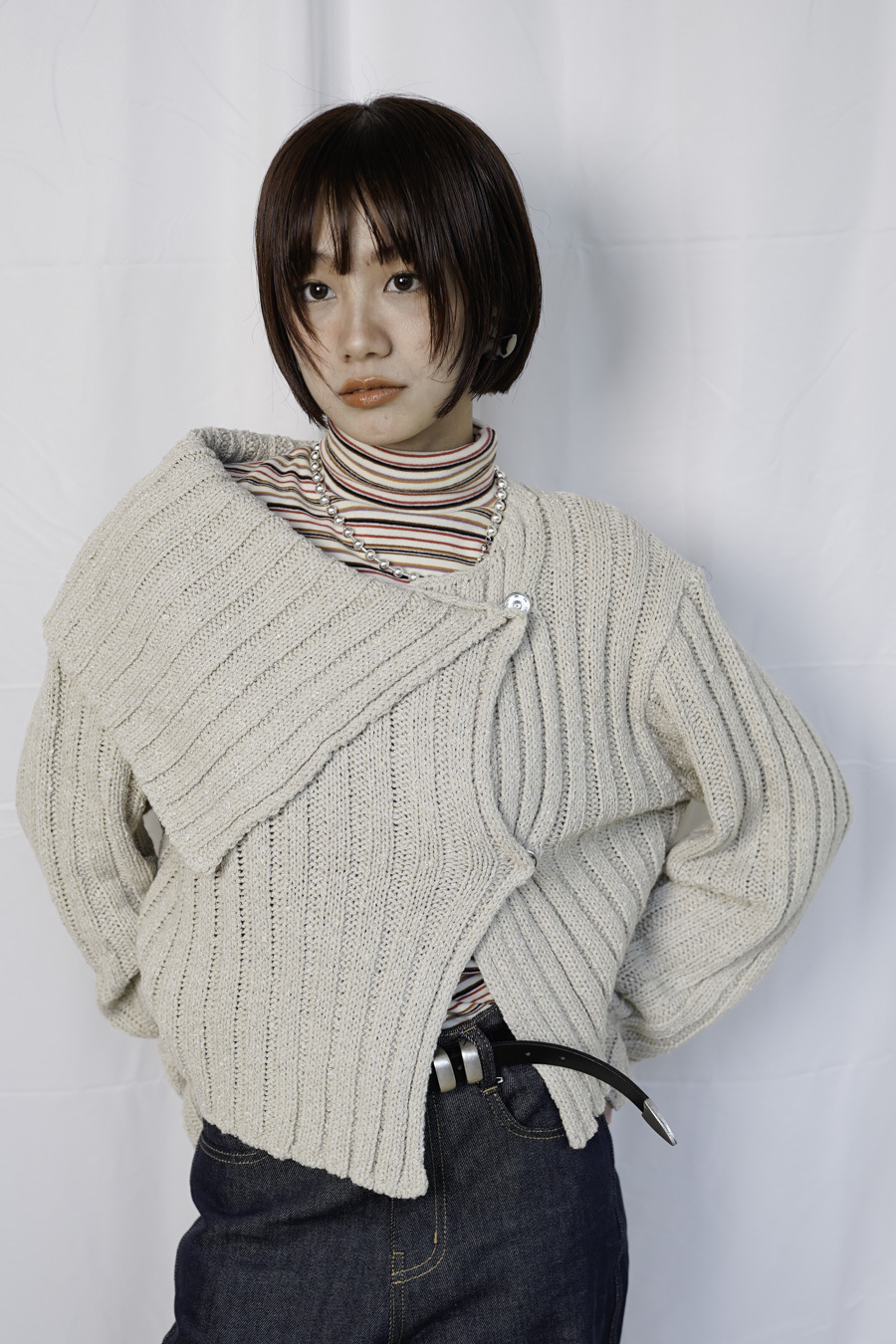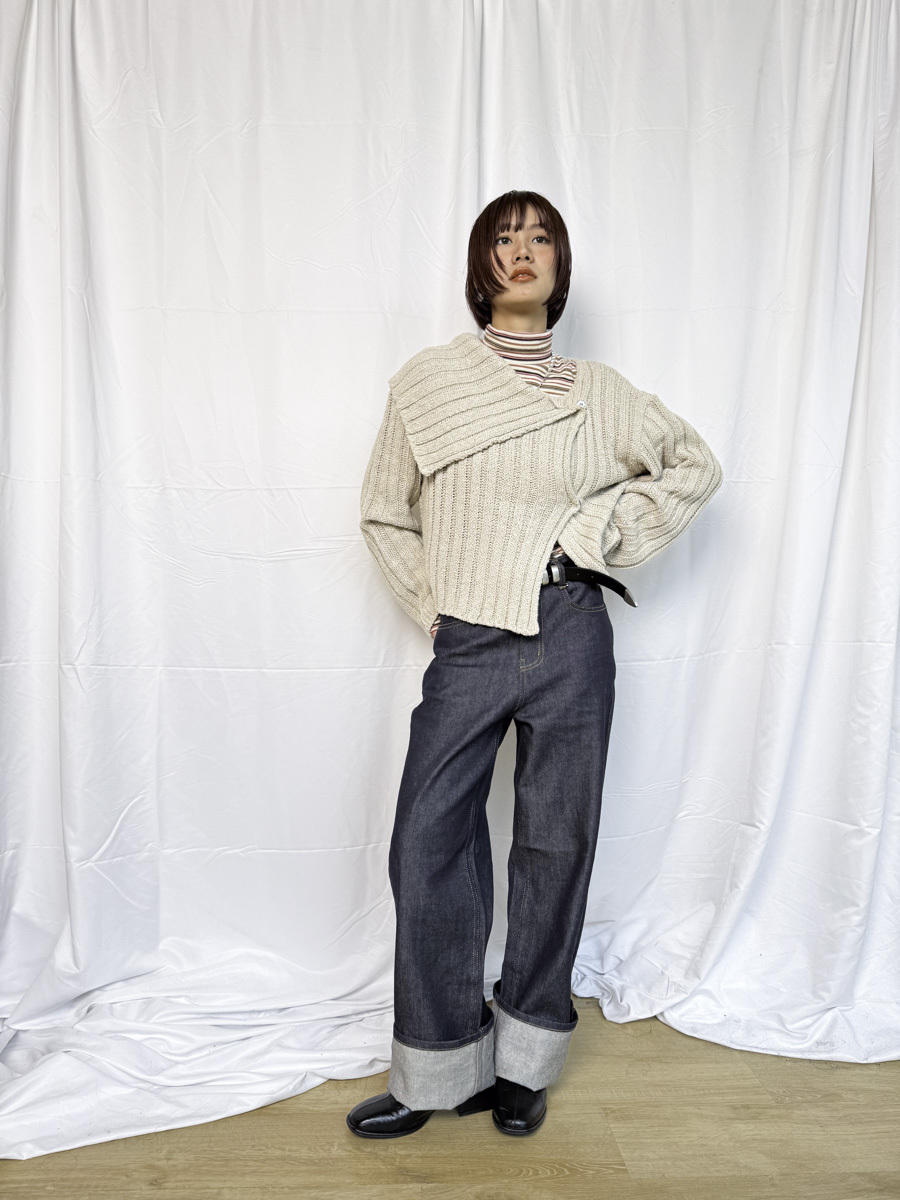 兩邊不規則鈕扣 露出腰線 型格時尚/