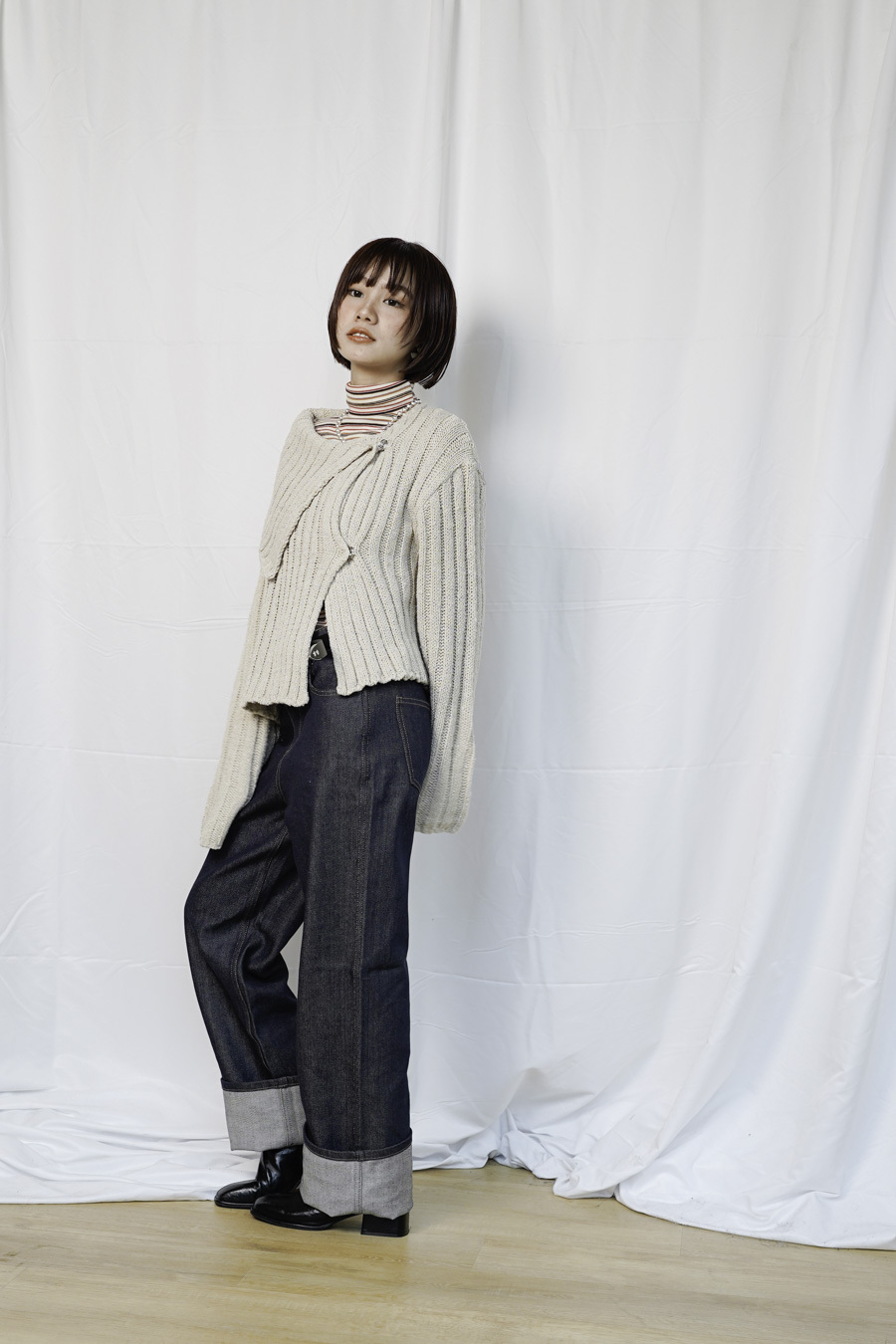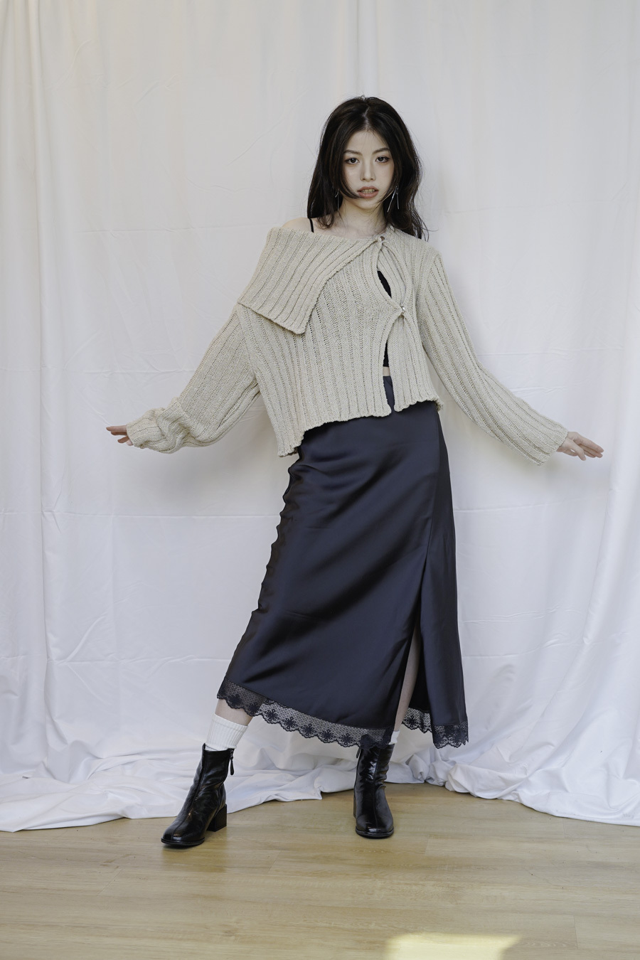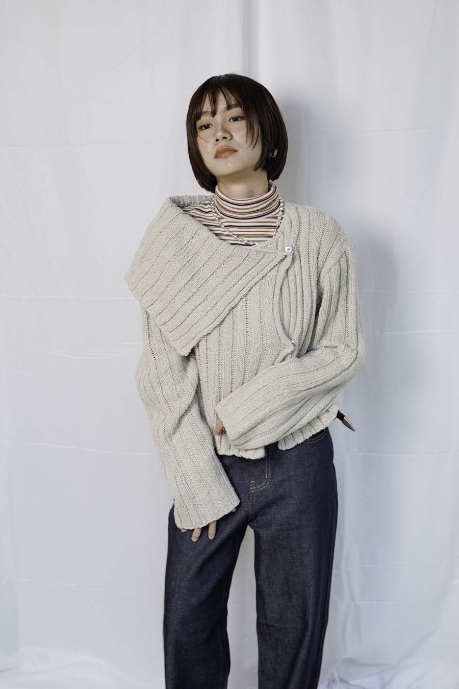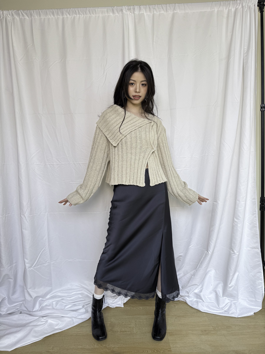 兩邊不規則鈕扣 露出腰線 型格時尚/