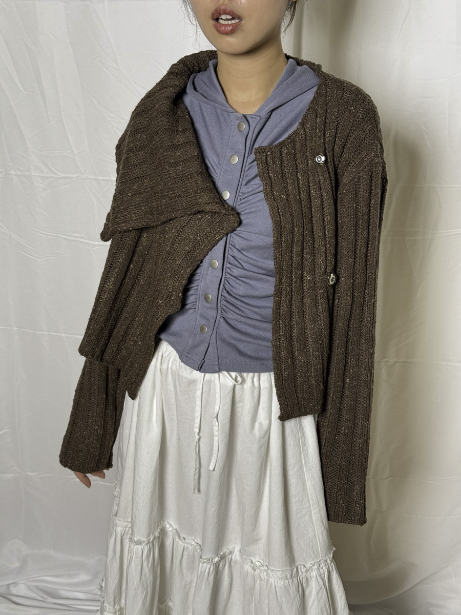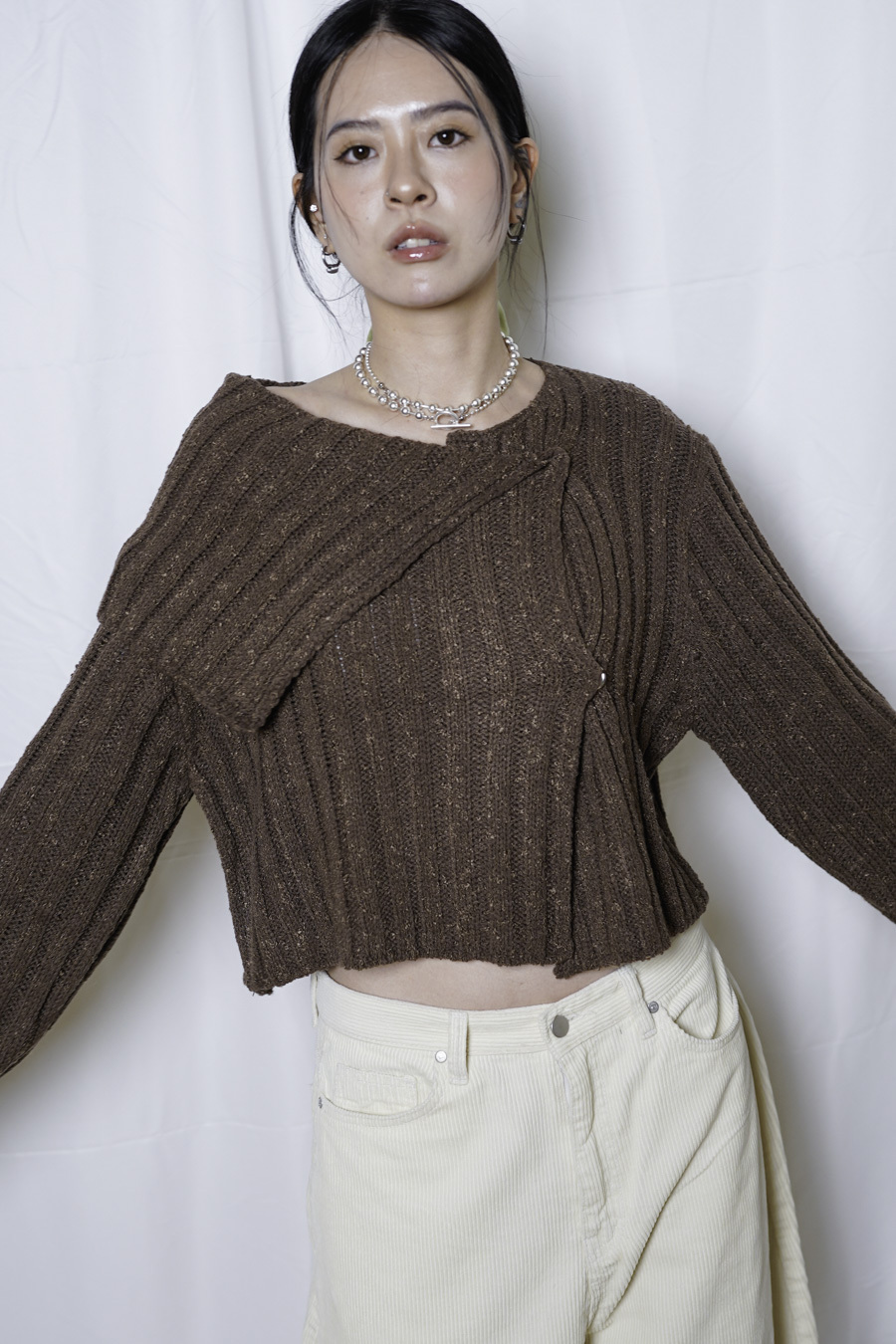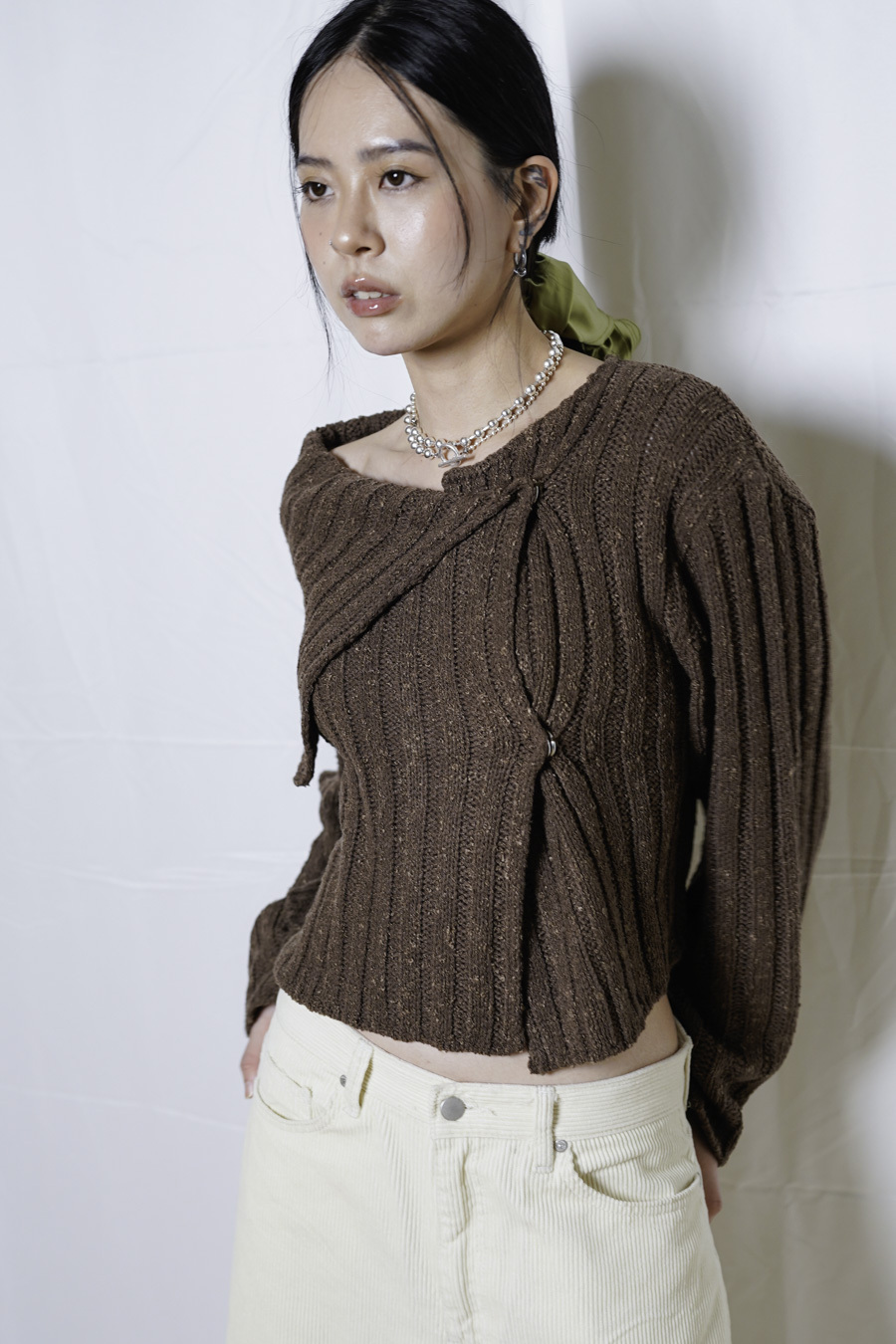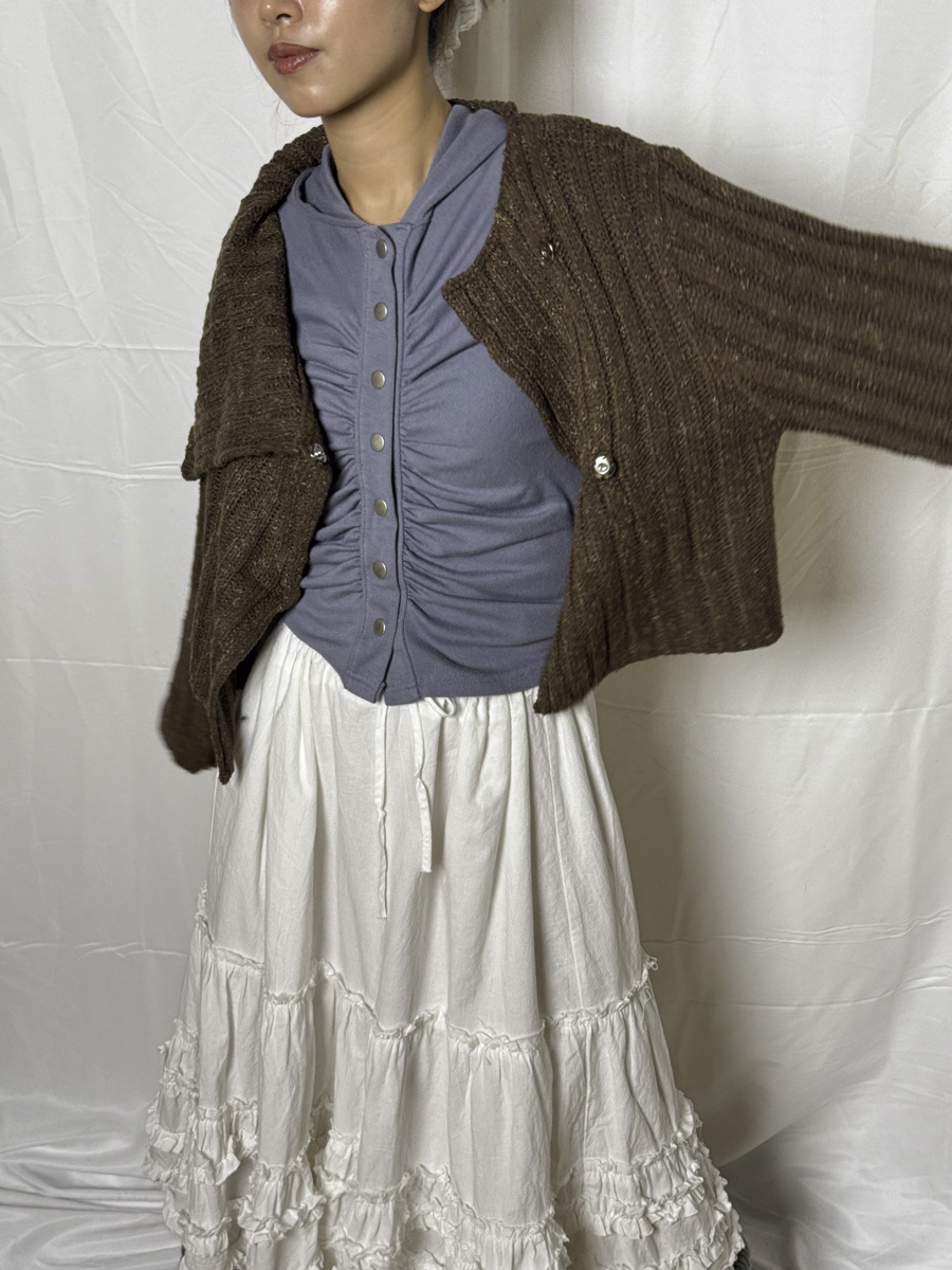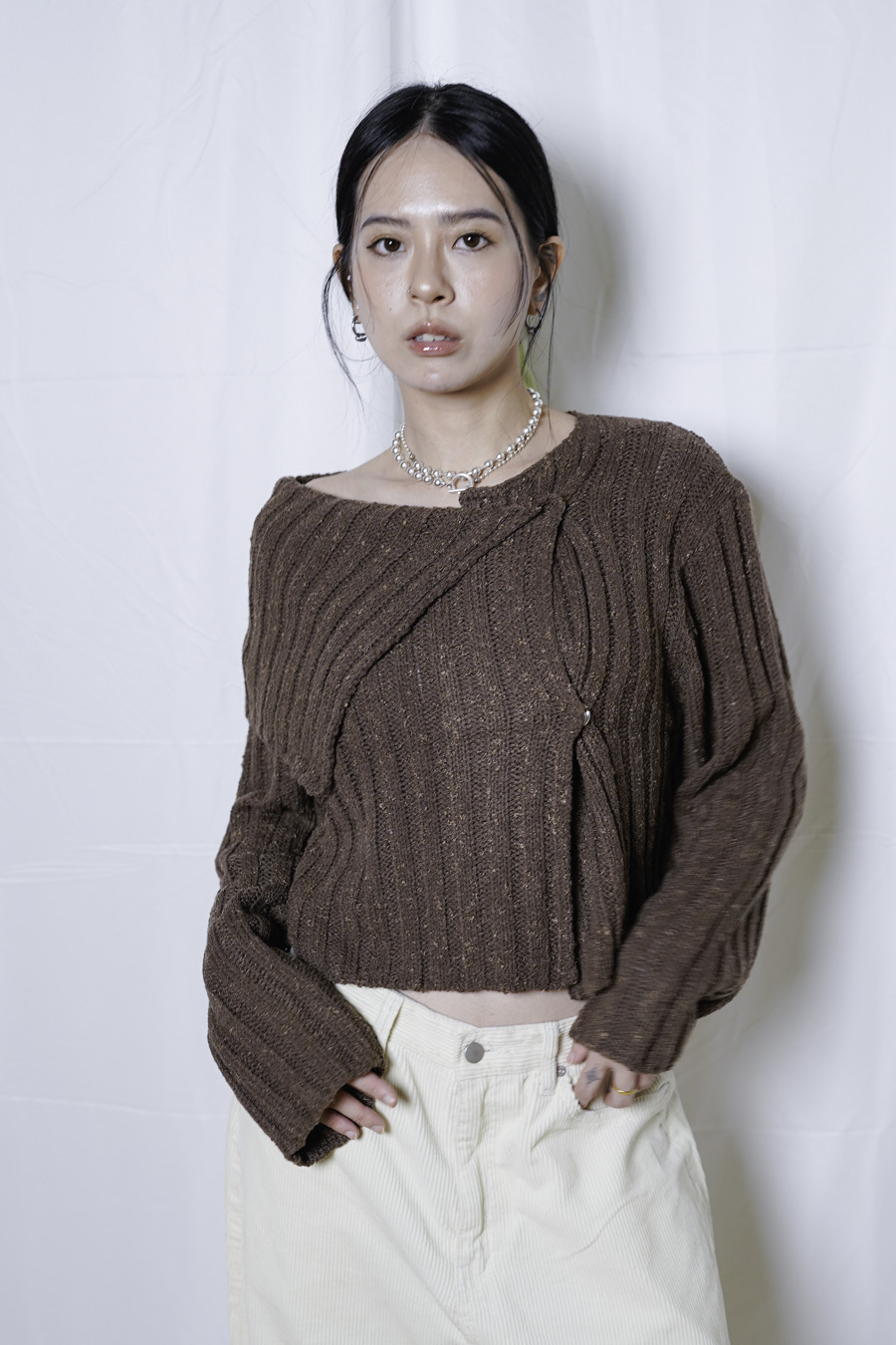兩邊不規則鈕扣 露出腰線 型格時尚/