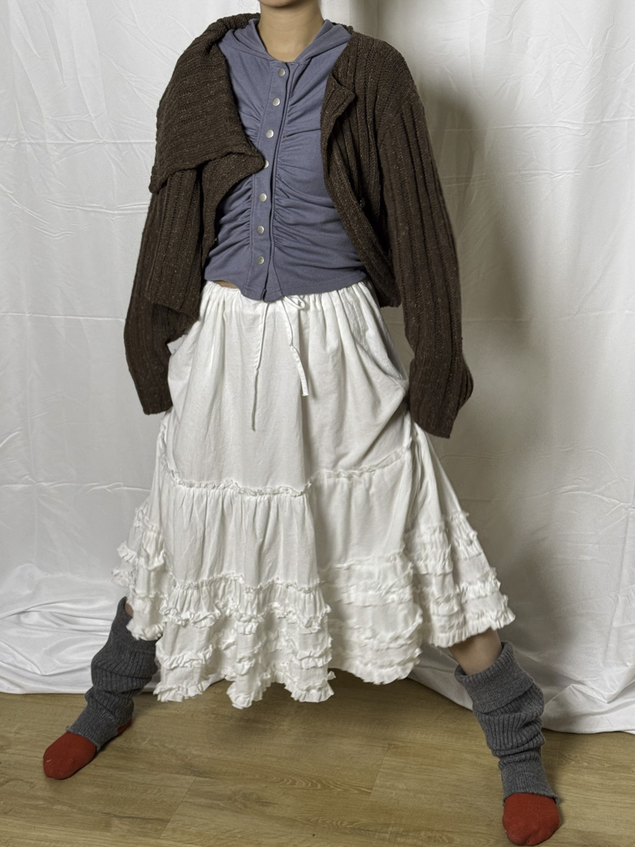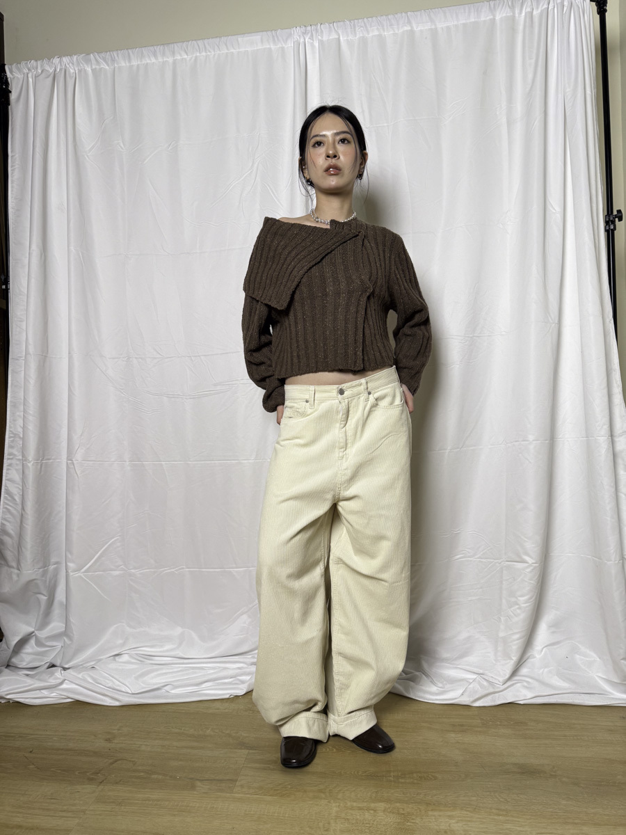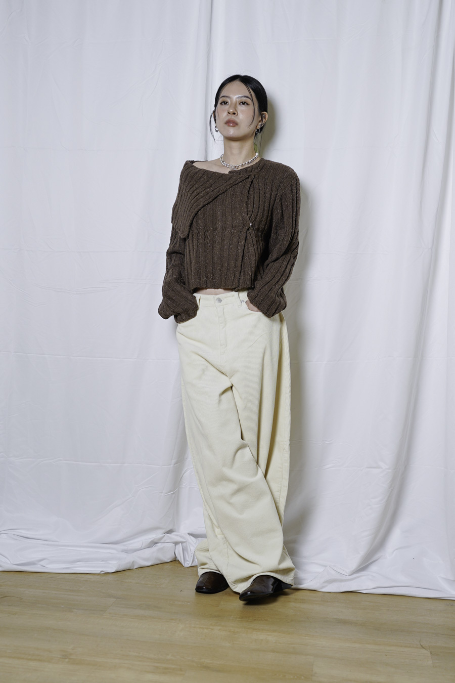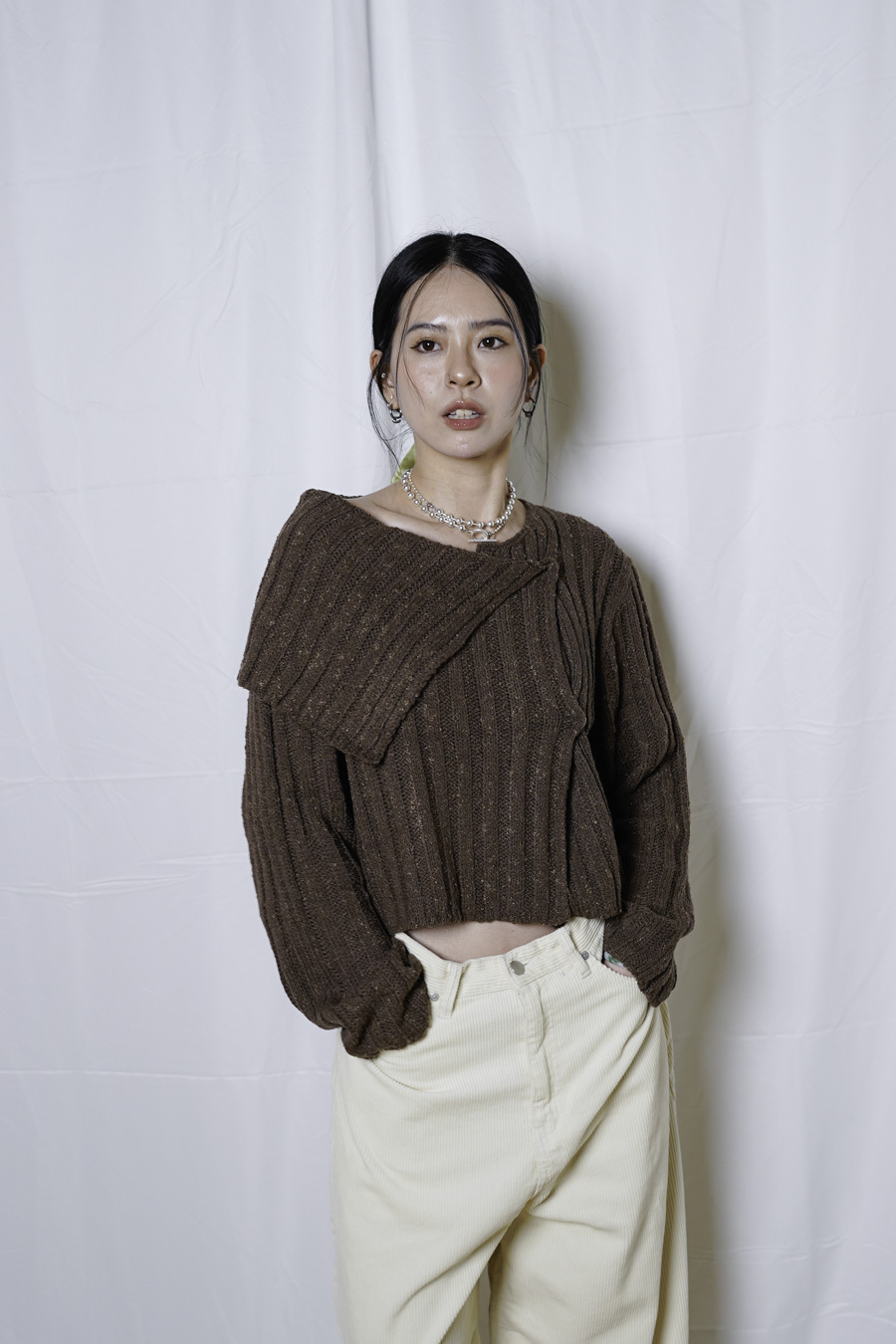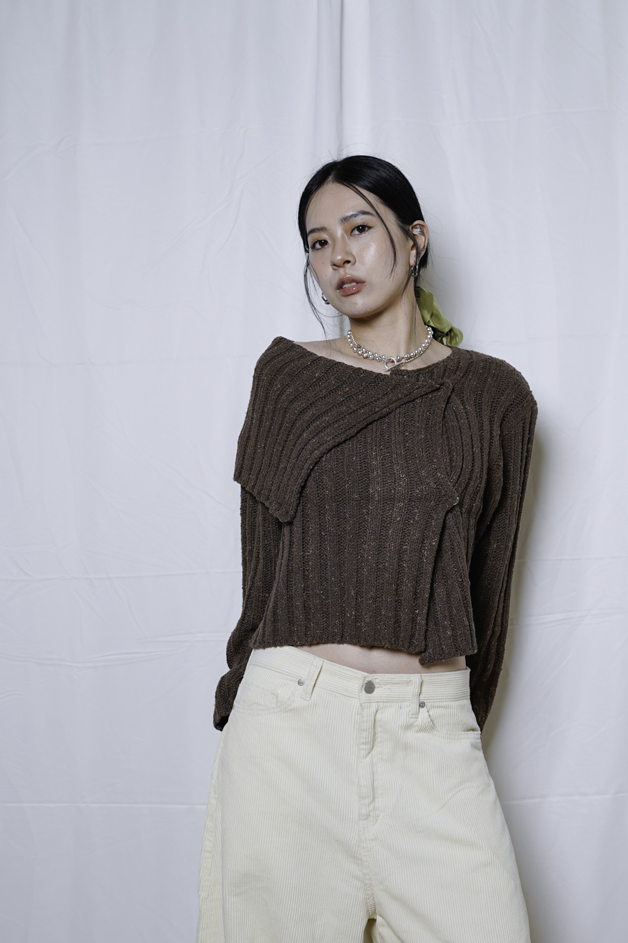兩邊不規則鈕扣 露出腰線 型格時尚/