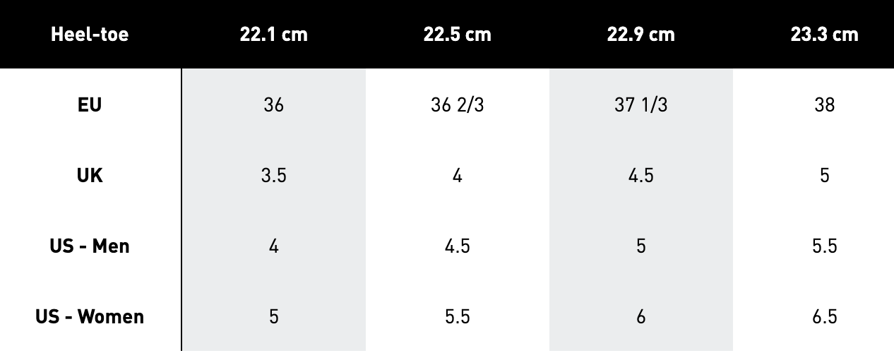鞋款尺寸建議:24cm 約等於 EU 38。若擔心偏細,建議選購大 0.5cm。大部分鞋款為鞋帶設計,較易調節鬆緊。
