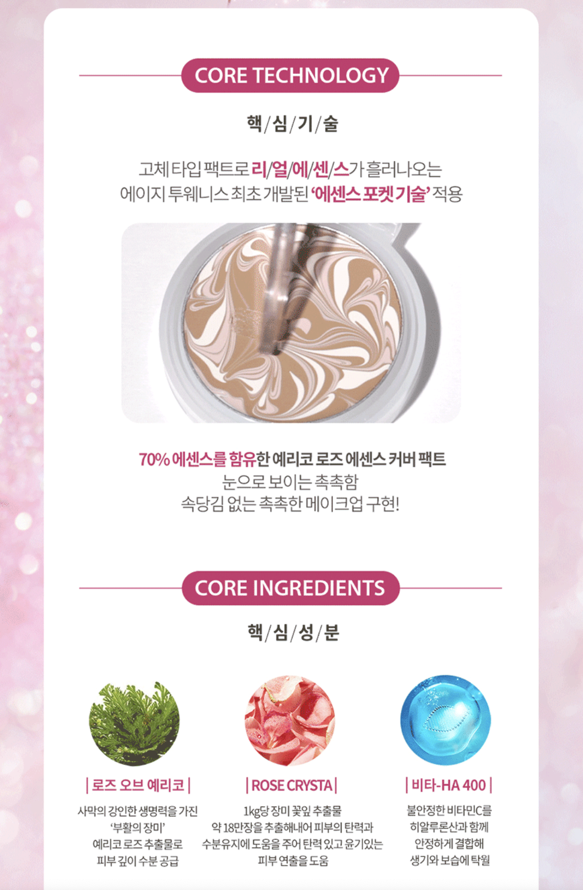 • 保濕效果: 含有 65% 的耶利哥玫瑰精華和三重透明質酸精華,提供長效保濕效果,讓肌膚水潤飽滿。