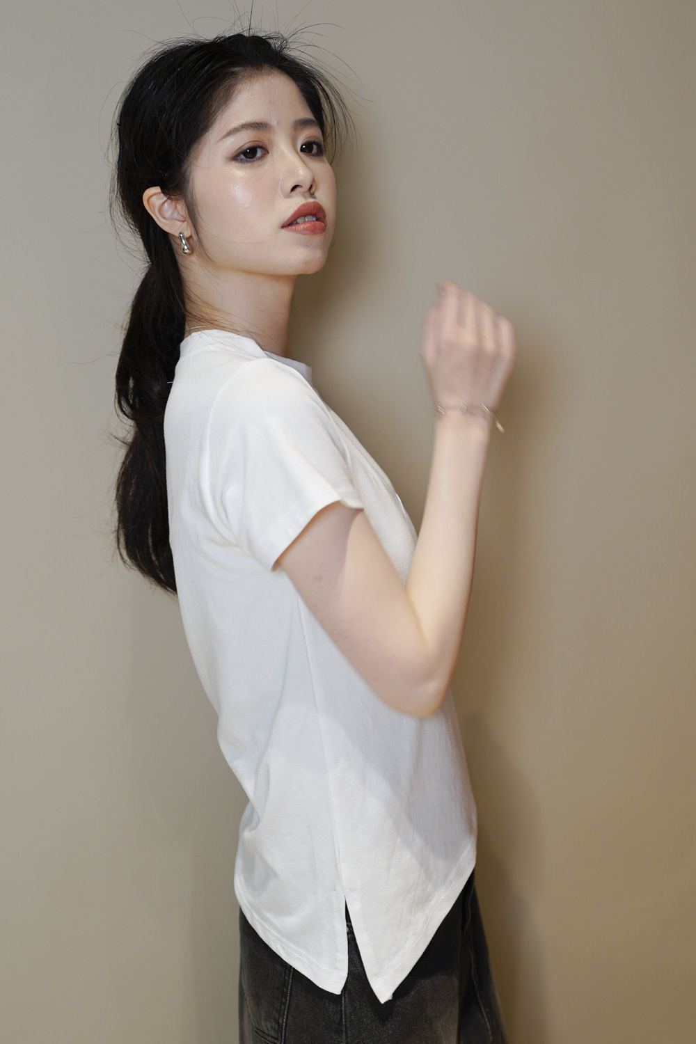 一邊衫尾小開叉/