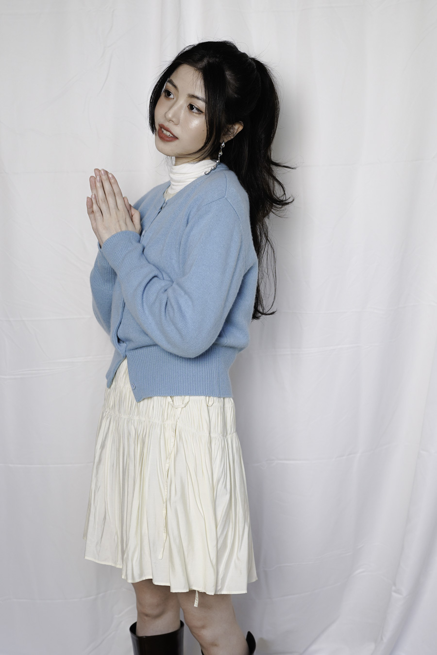 Baby skin Premium cardigan (wool 45%, Raccoon 15%) - (WHITE/ BLUE/ BLACK)