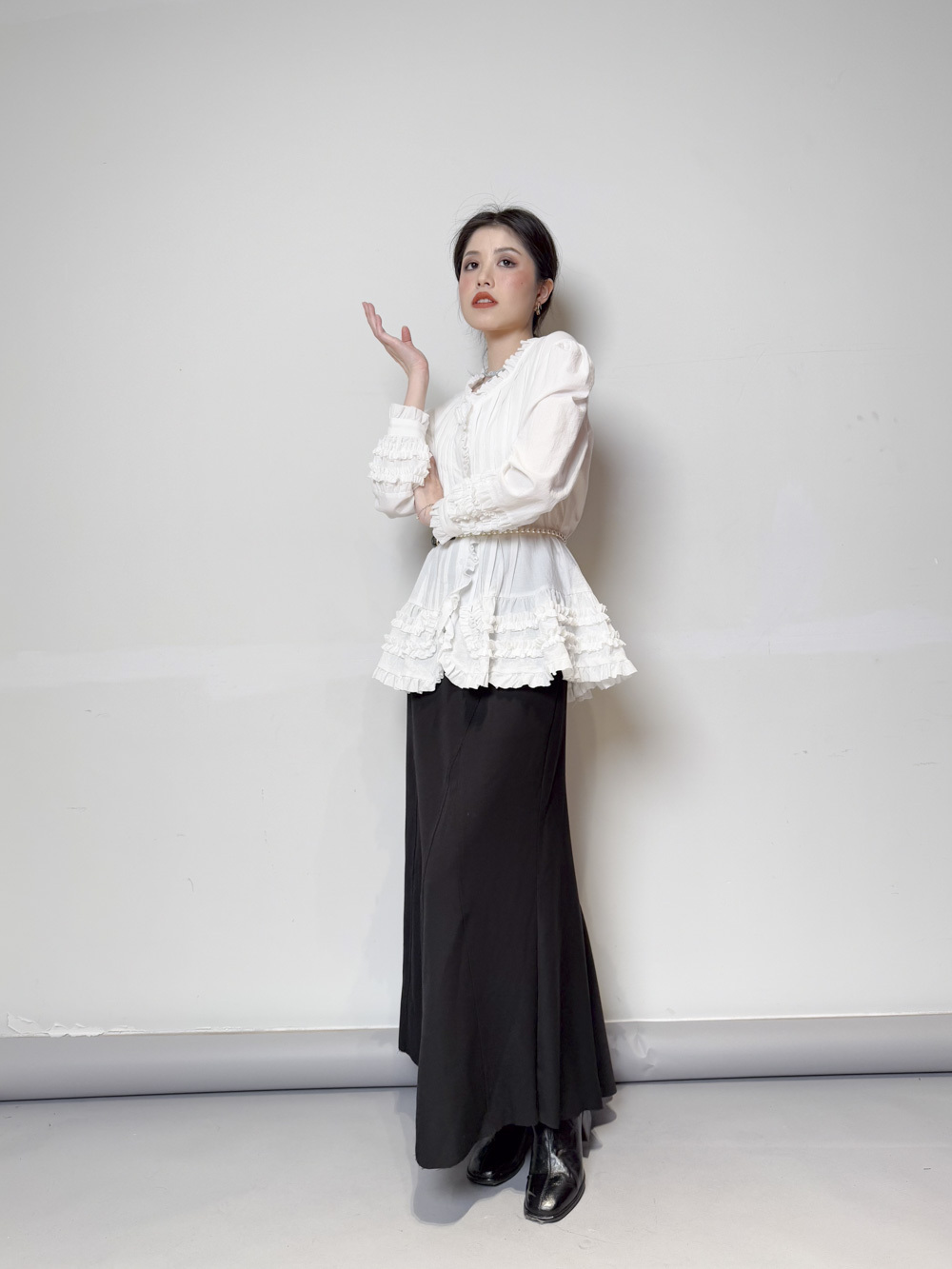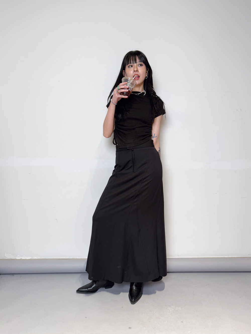 S: Waist: 68cm (26.5”) / Hip: 99cm (39”) / Length: 92cm / Hem: 190cm