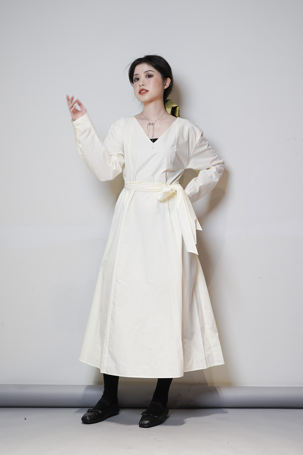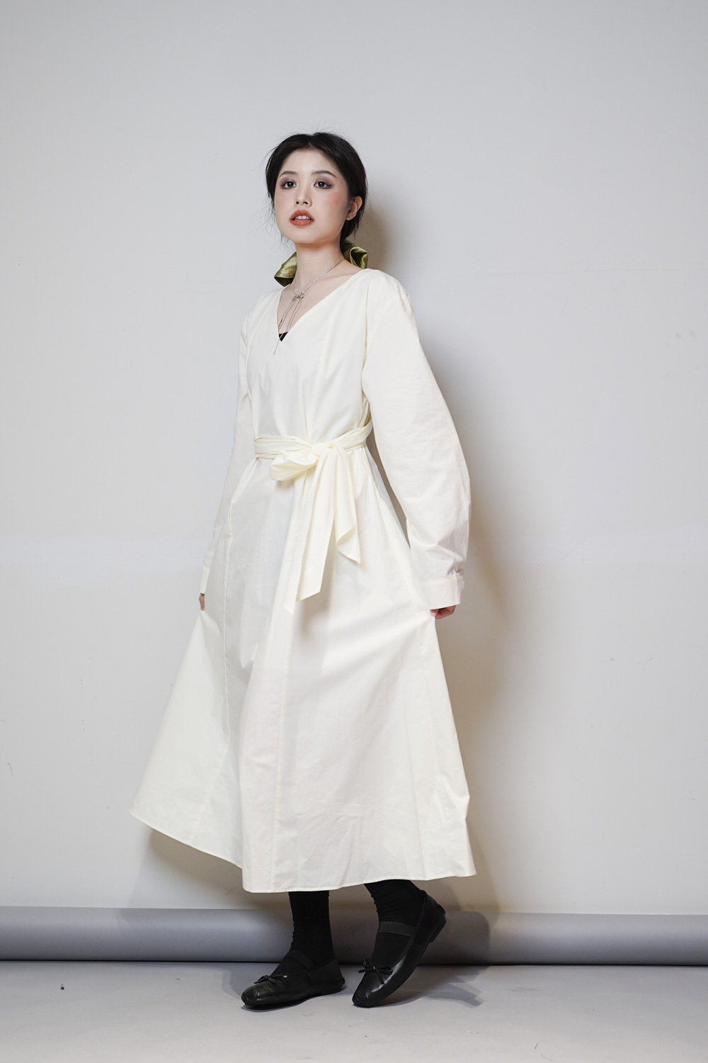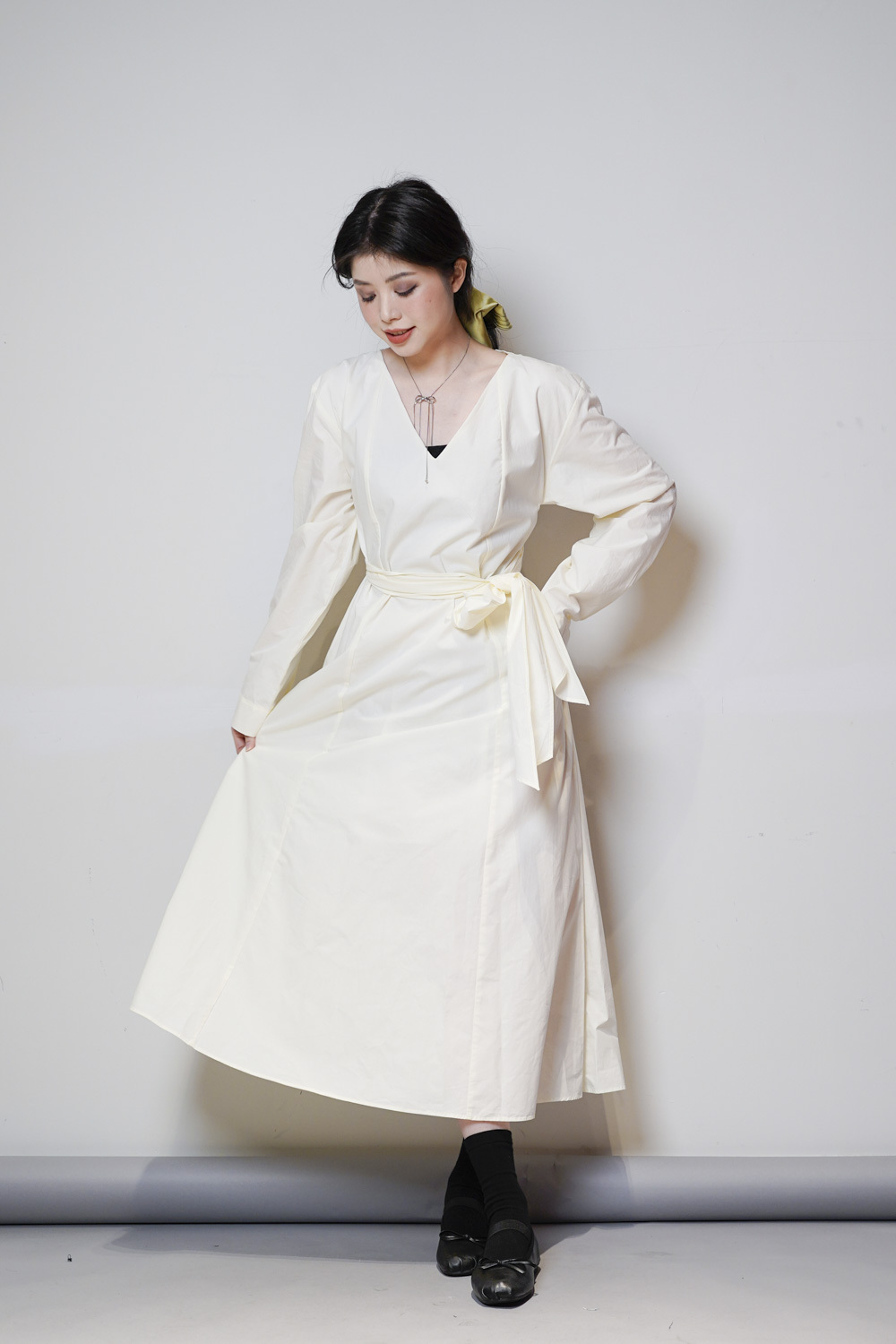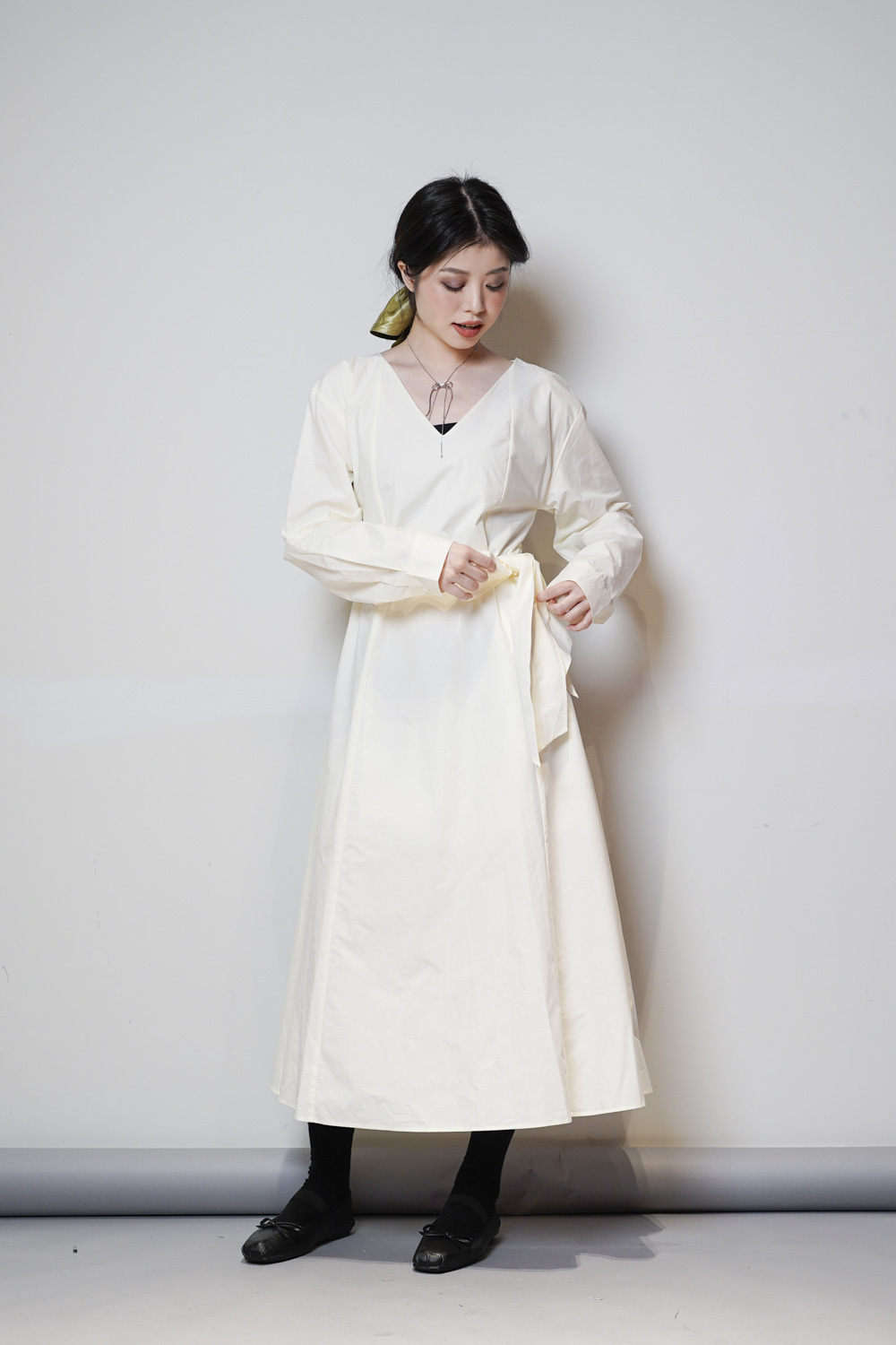 Back triangle cross wrapping dress (WHITE/ BLACK)