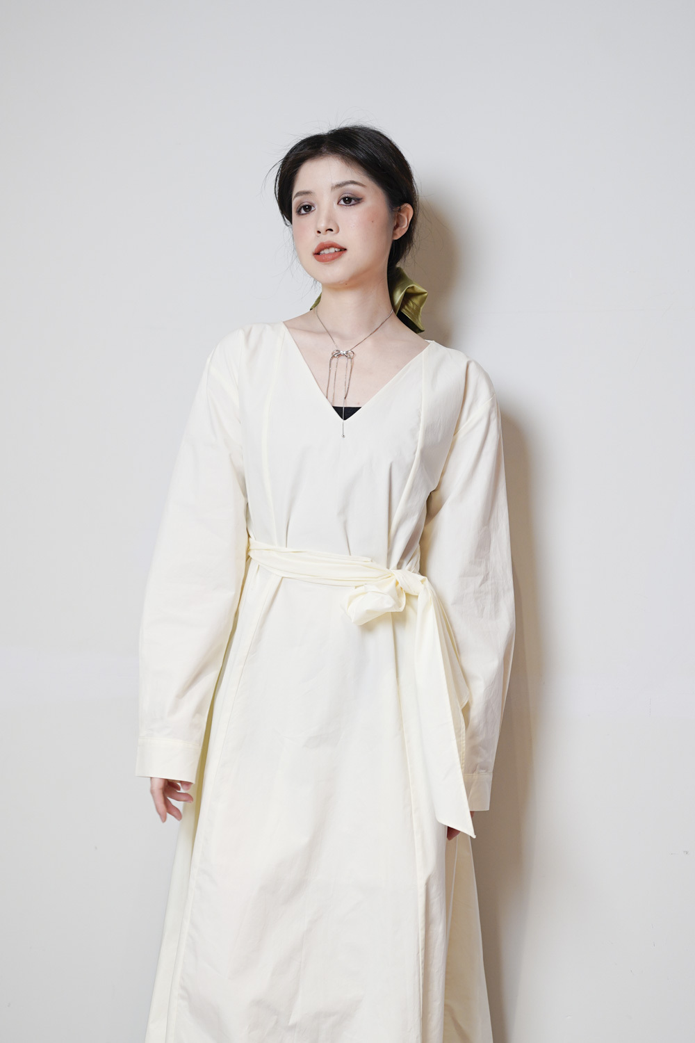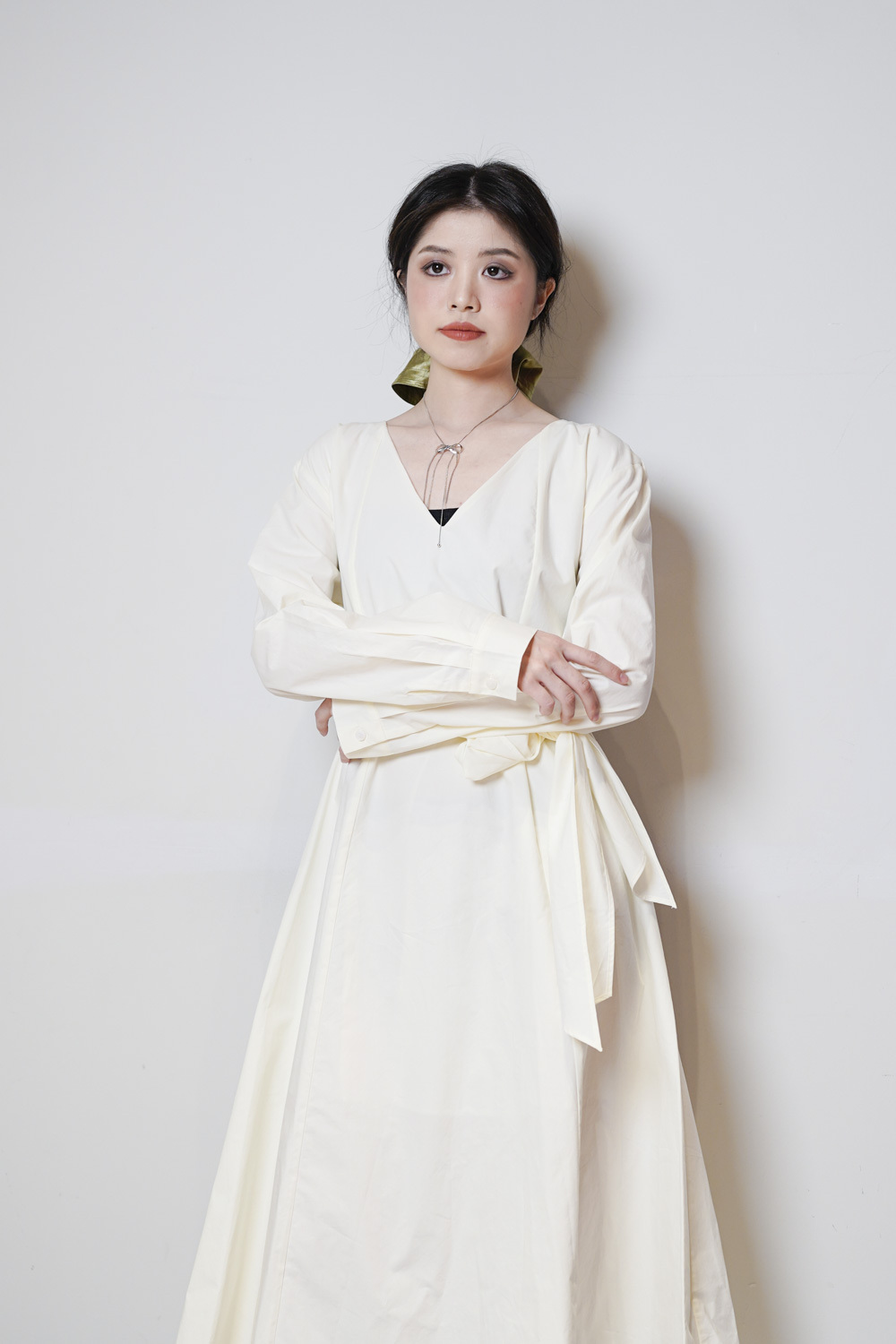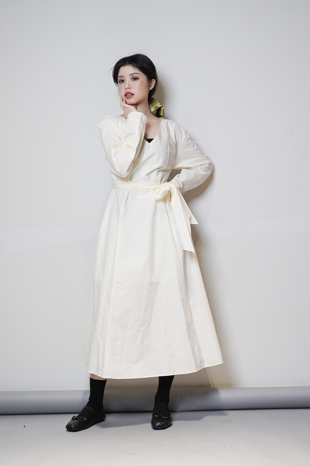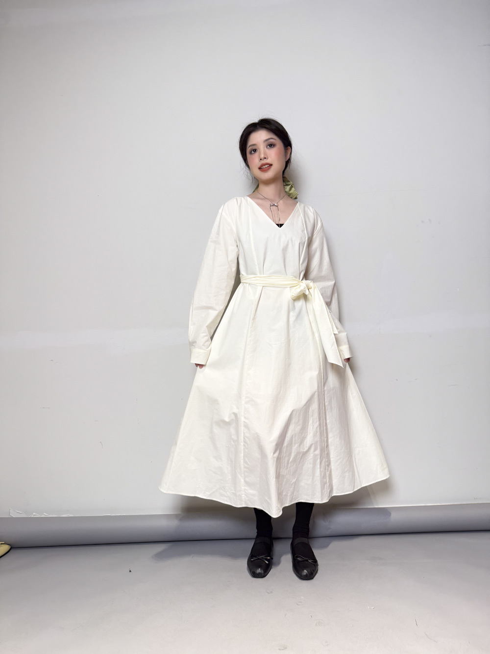 Back triangle cross wrapping dress (WHITE/ BLACK)