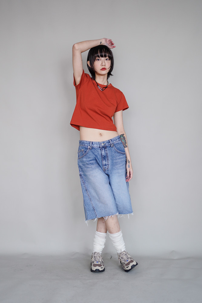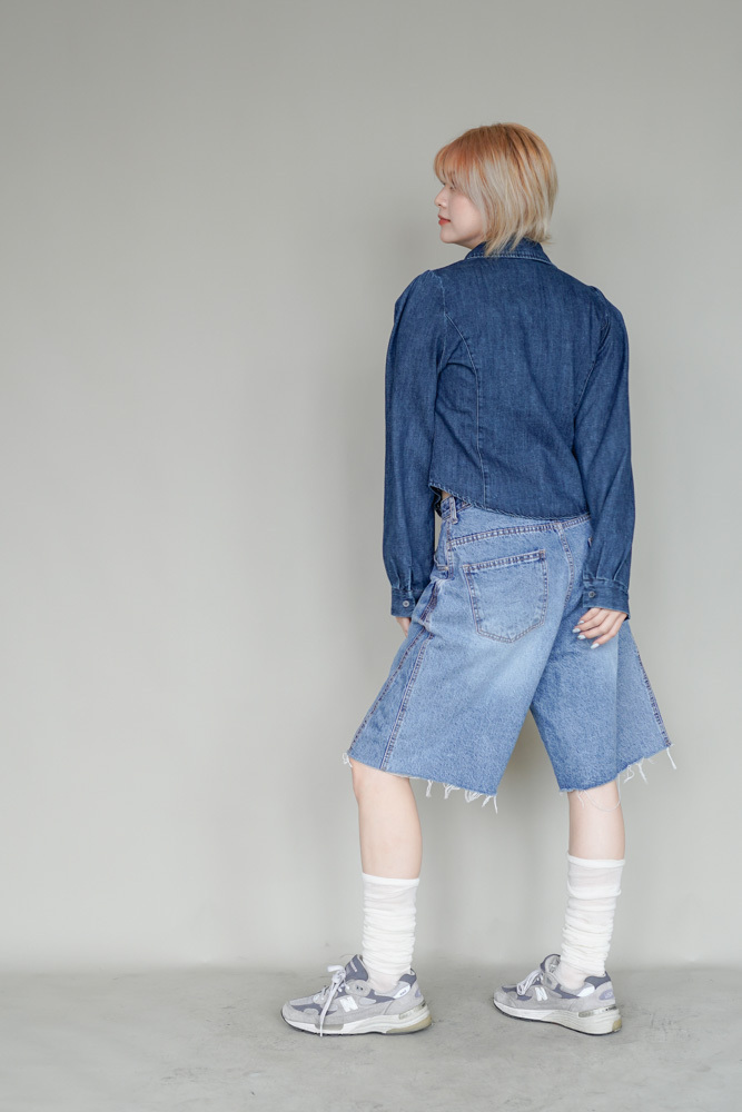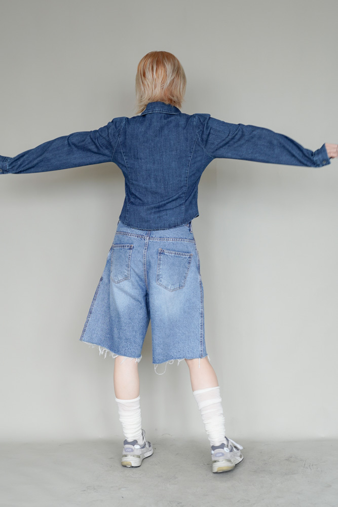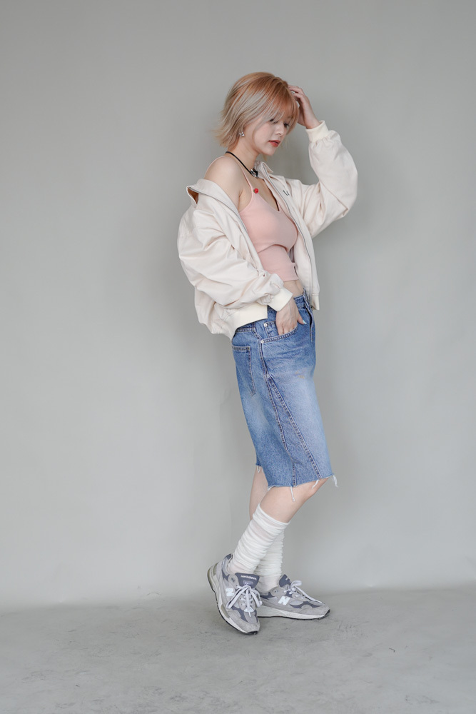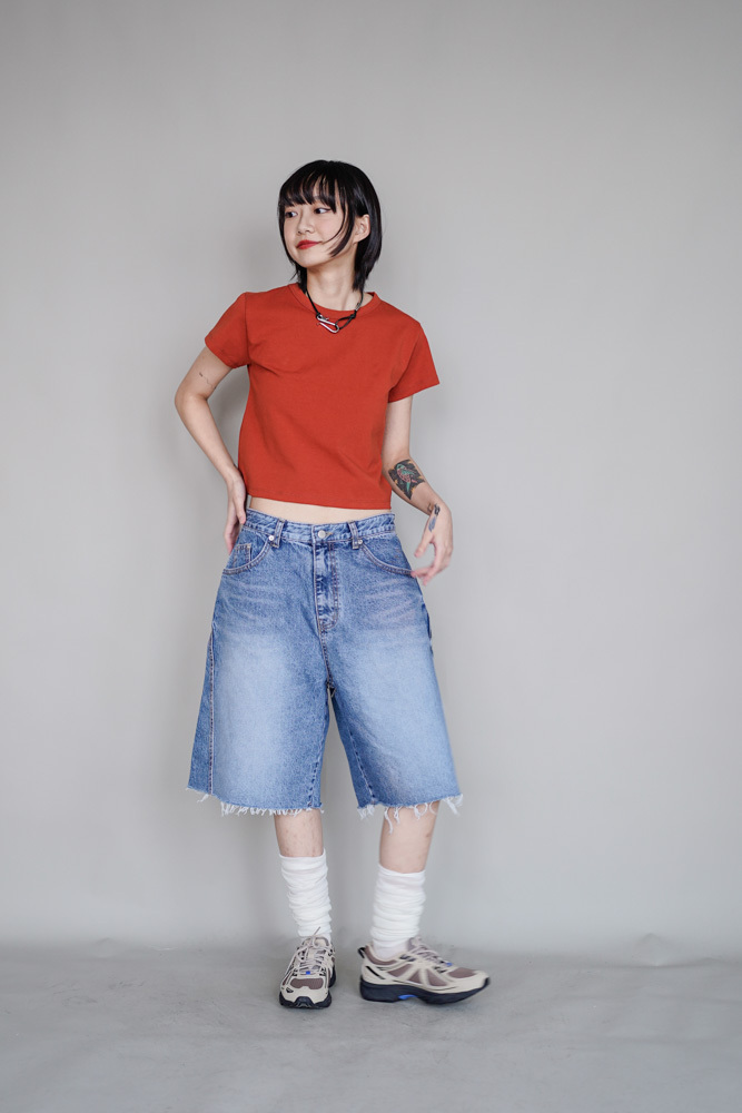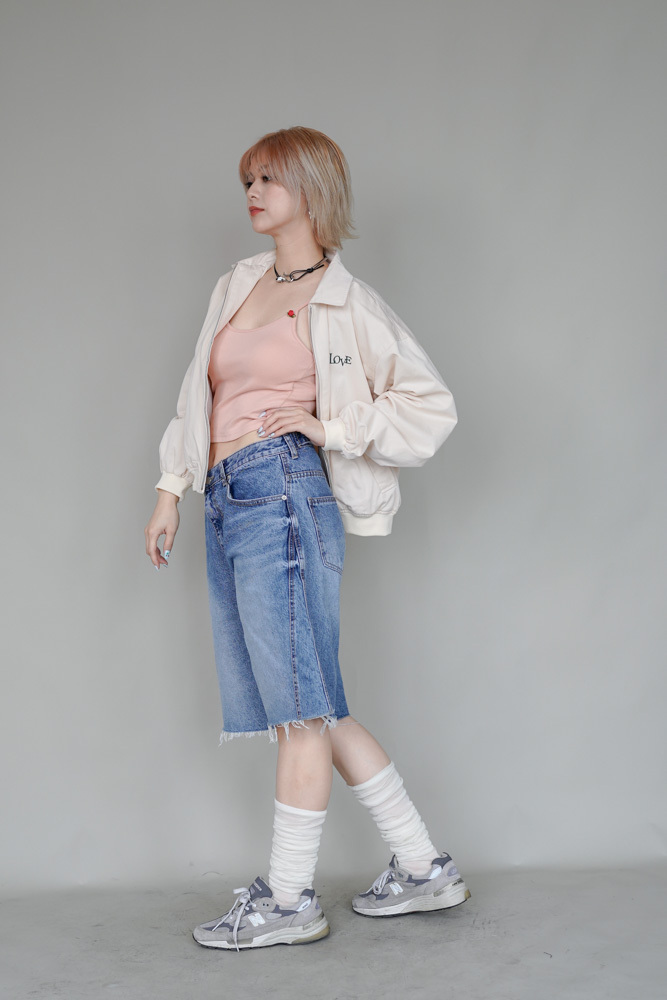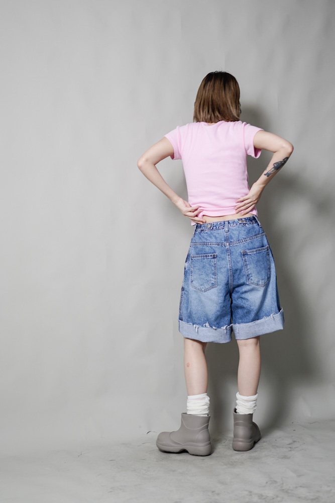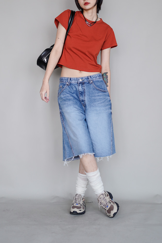 A shape mid length boy jeans (BLUE/BLACK) - free size