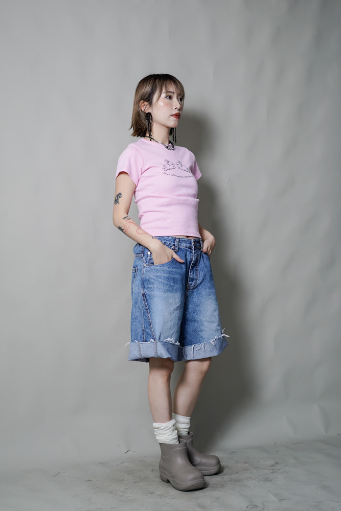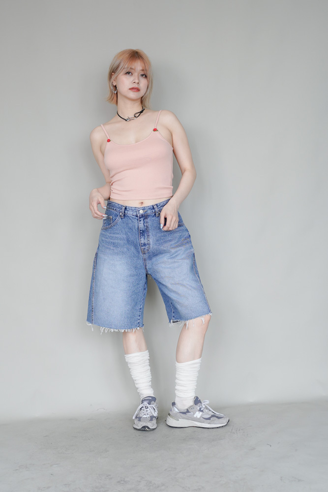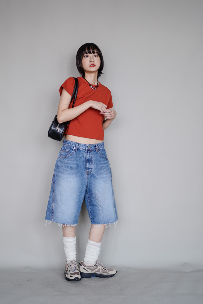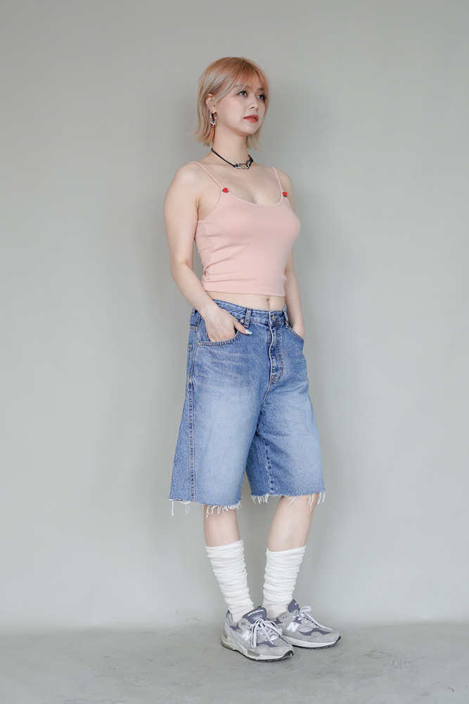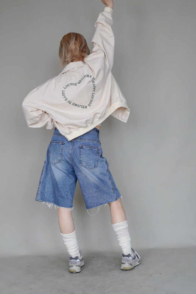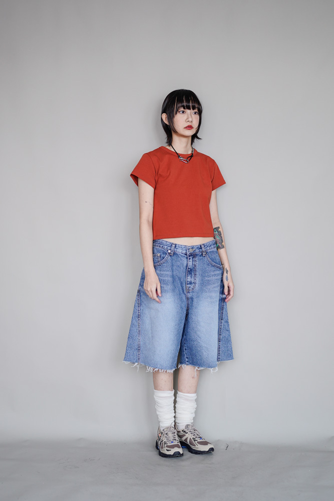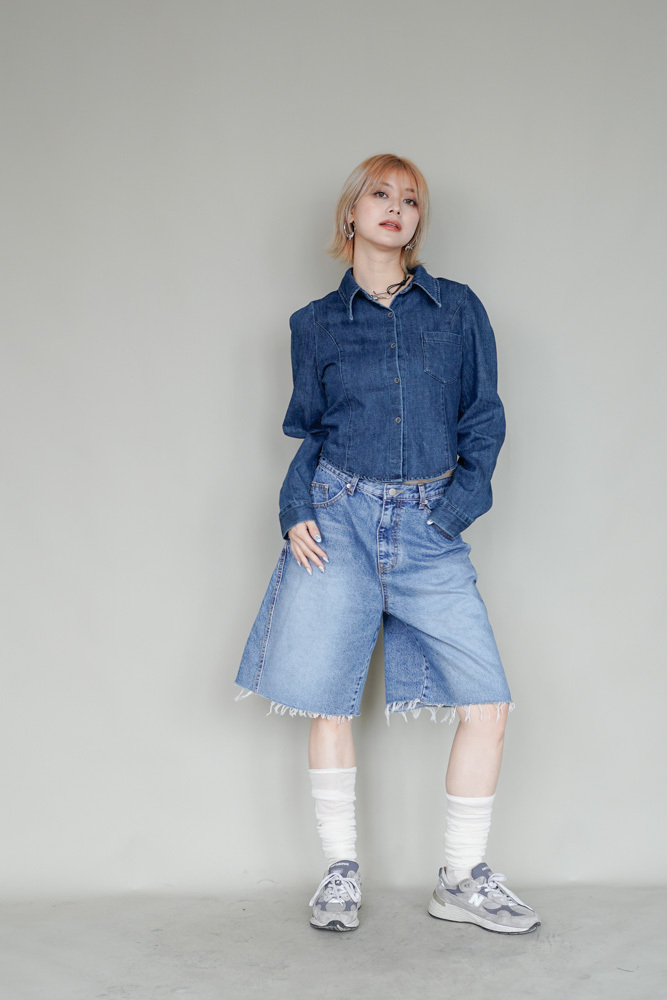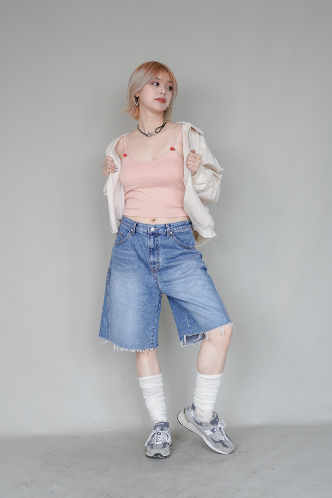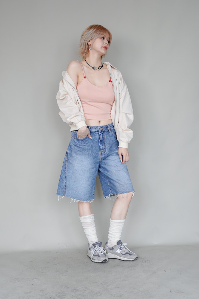 A shape mid length boy jeans (BLUE/BLACK) - free size