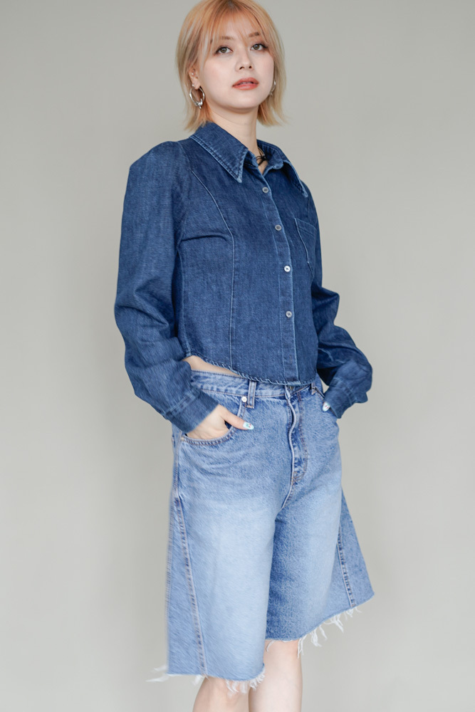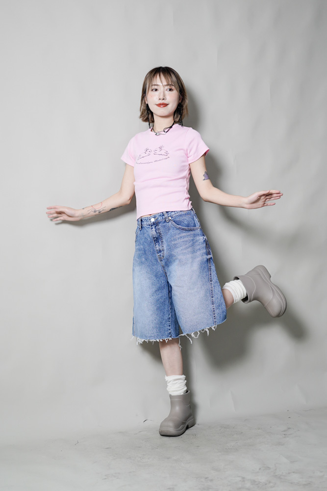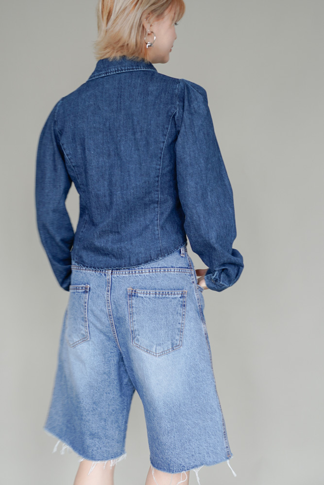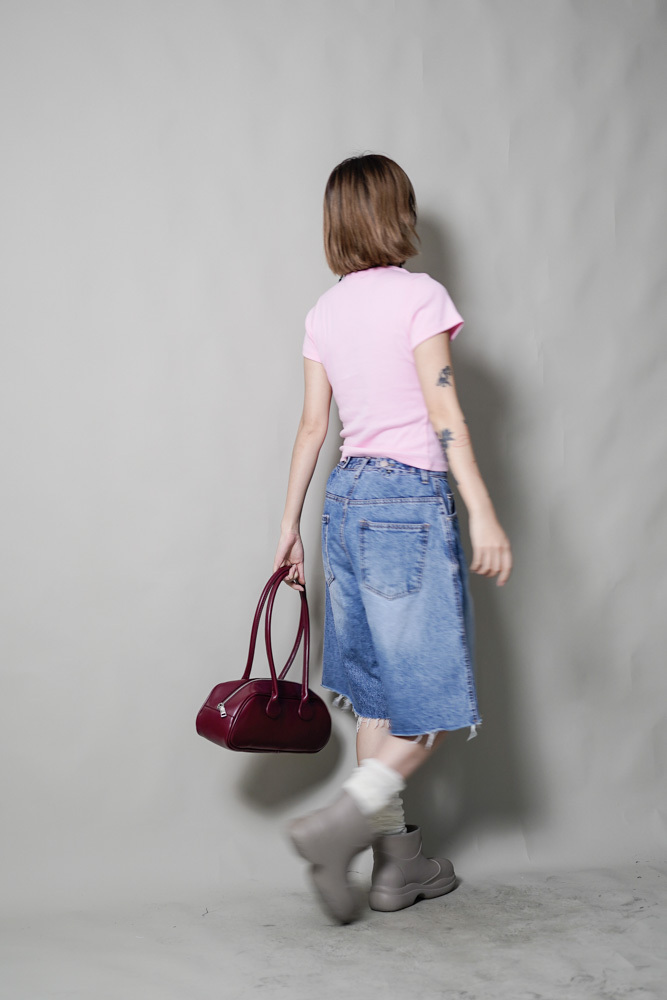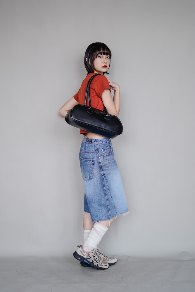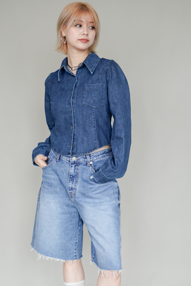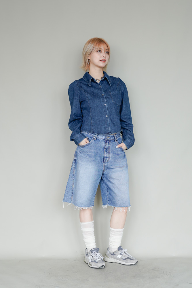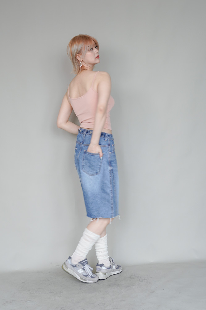 A shape mid length boy jeans (BLUE/BLACK) - free size