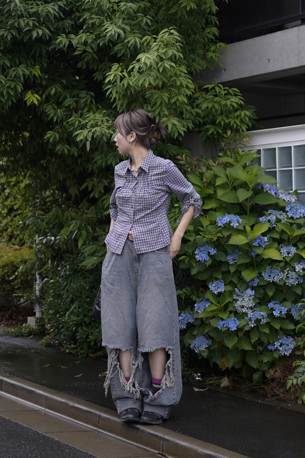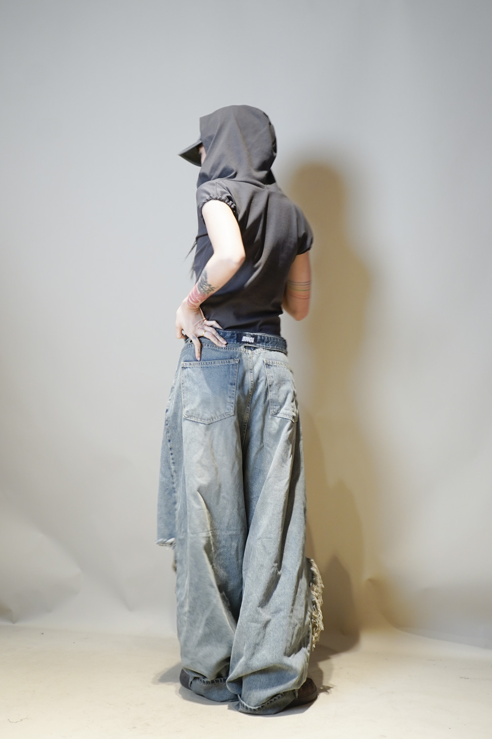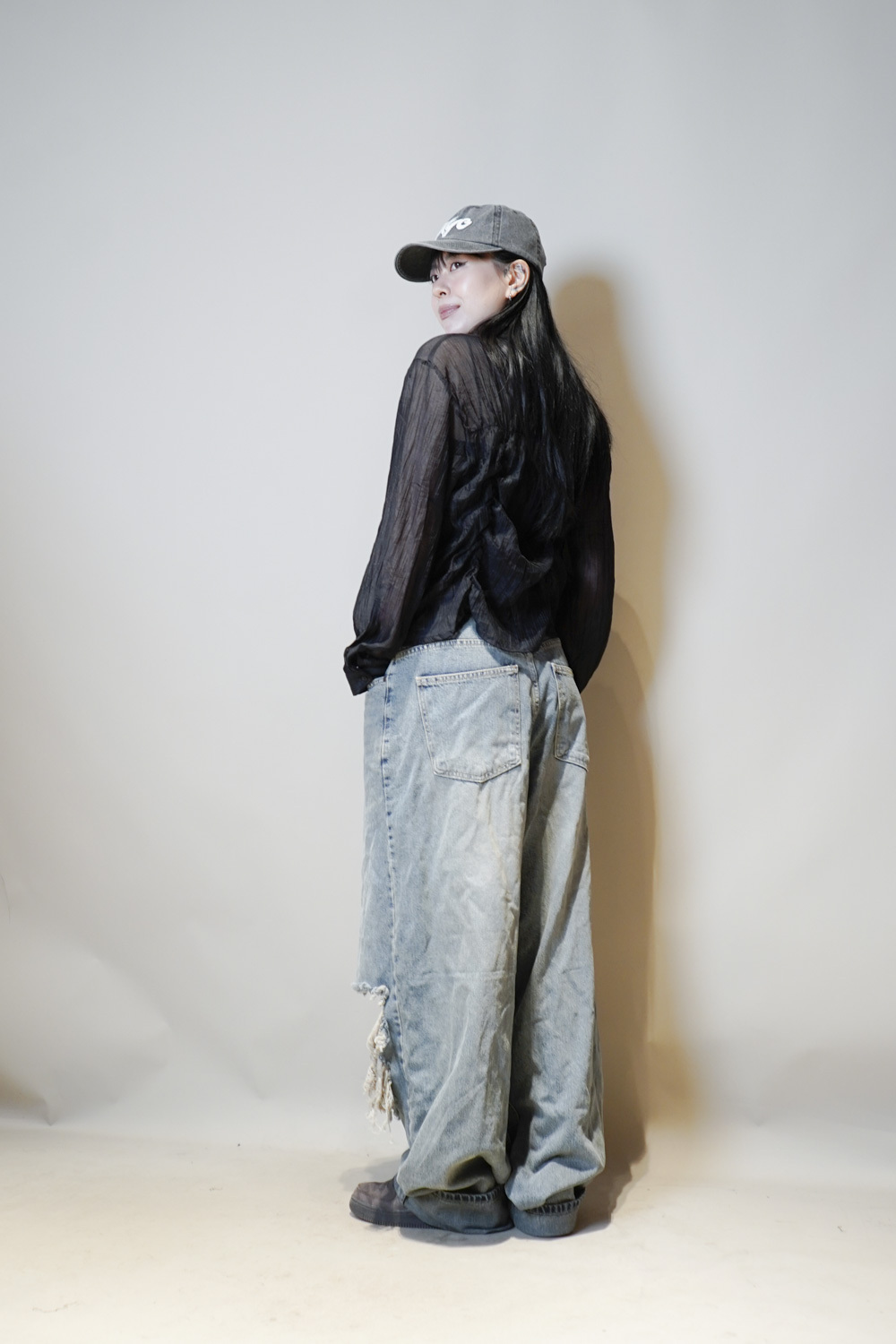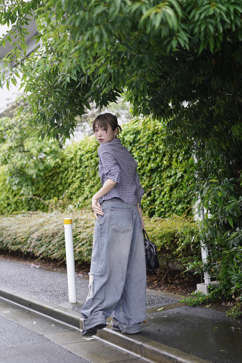 L:Waist: 82cm (32.5”) / Hip: 116cm (45.5”) / Rise: 47cm / Length: 124cm / Thigh: 82cm / Hem: 47cm