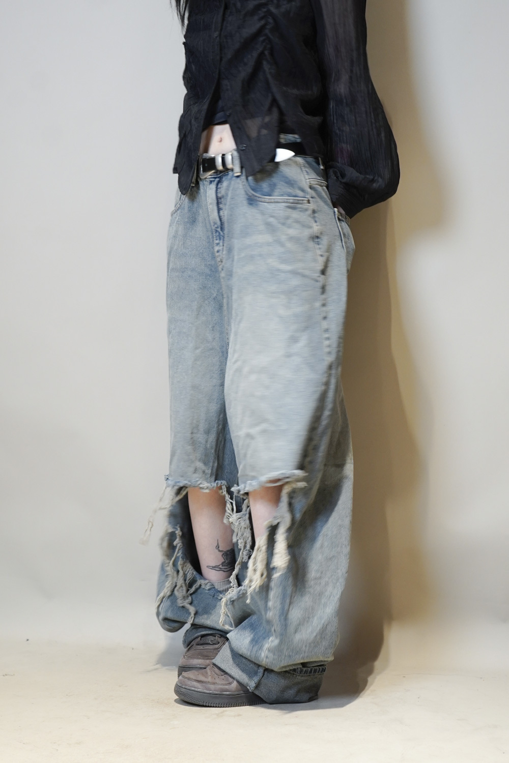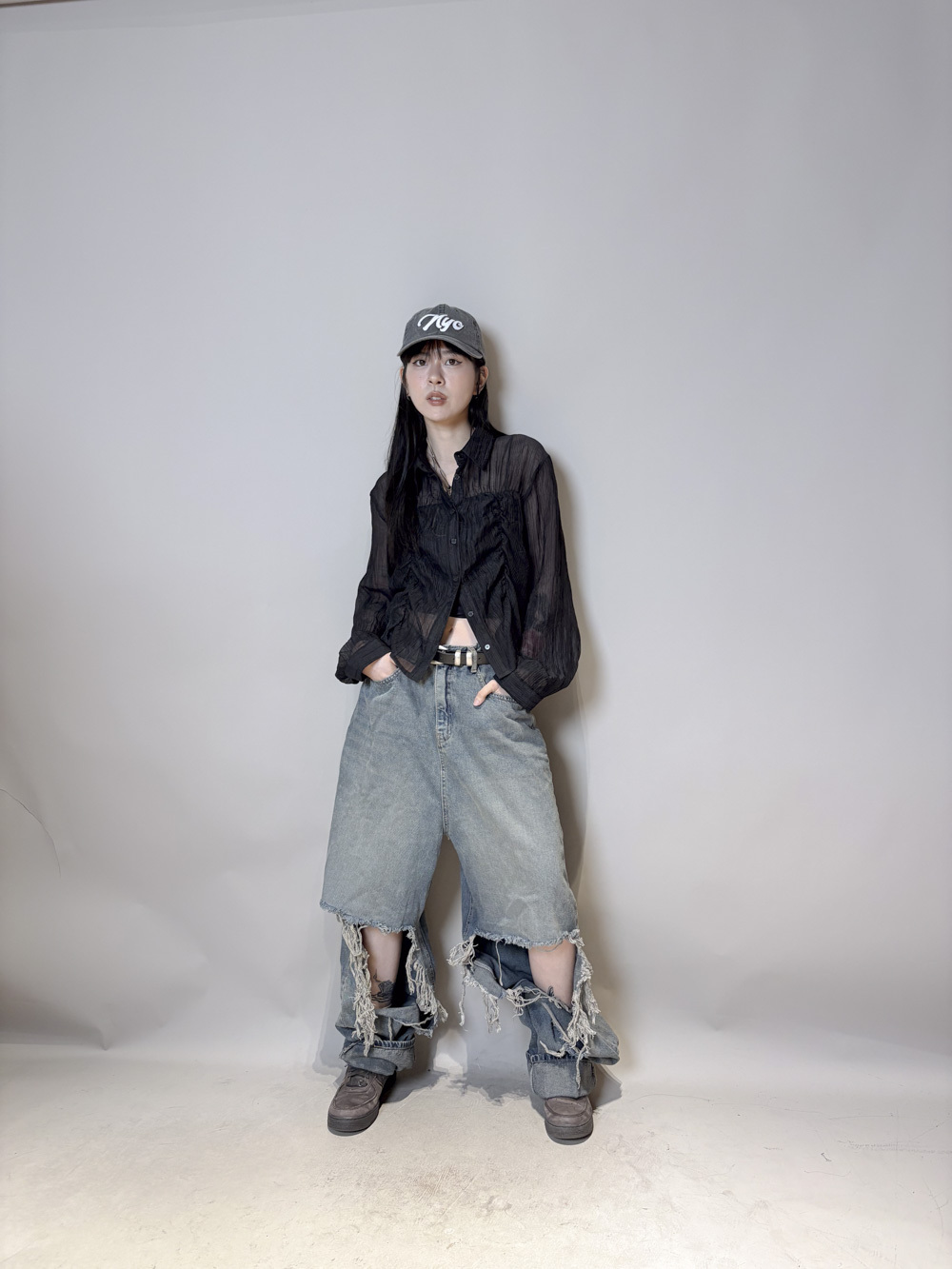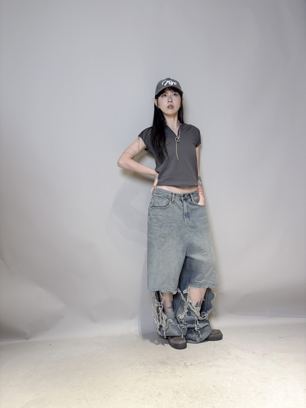破洞造型涼爽又型格 / 活動自如 / 彷短褲感 /