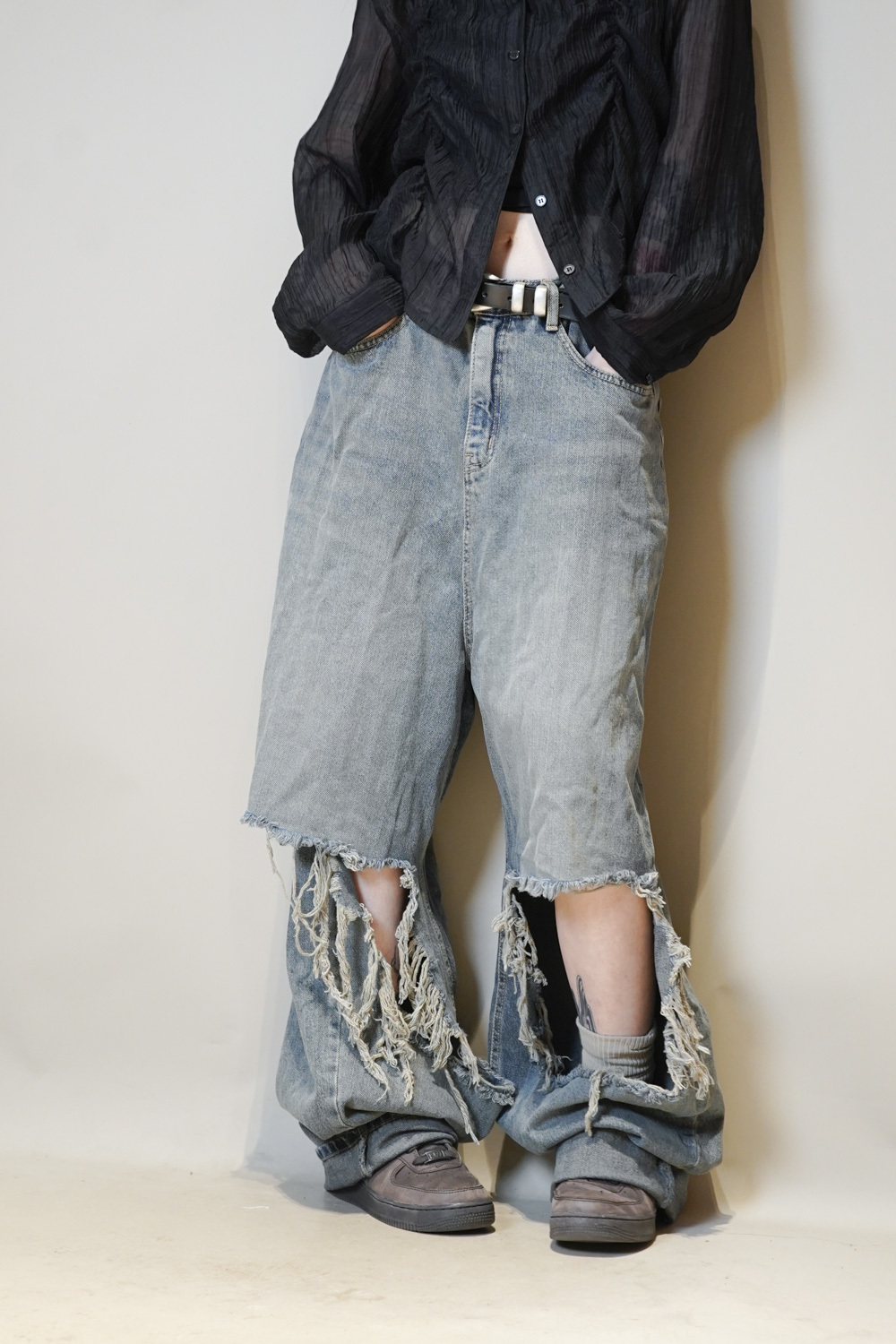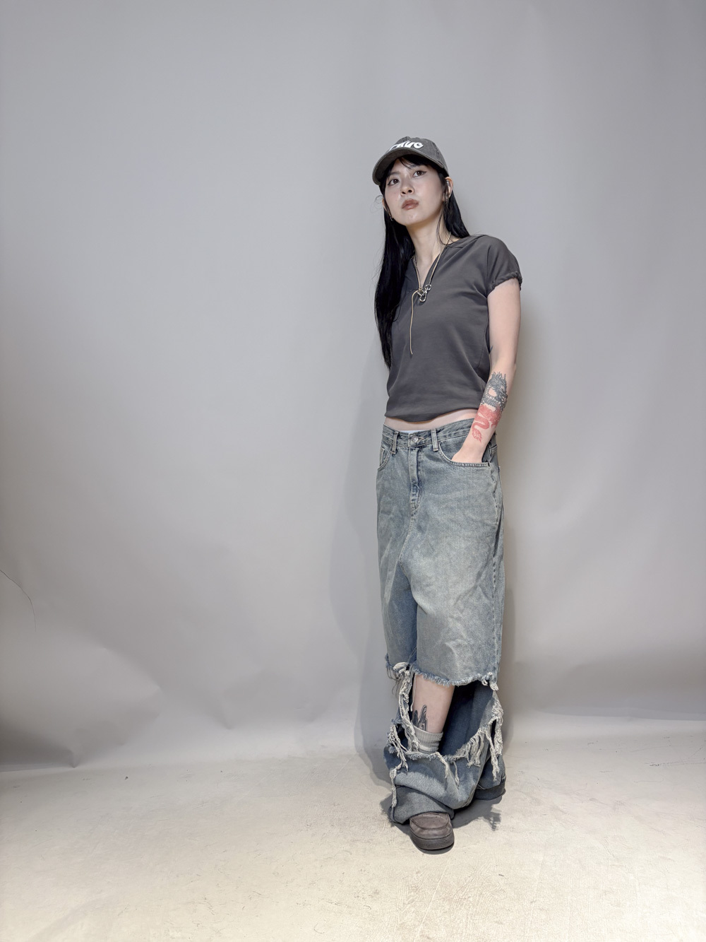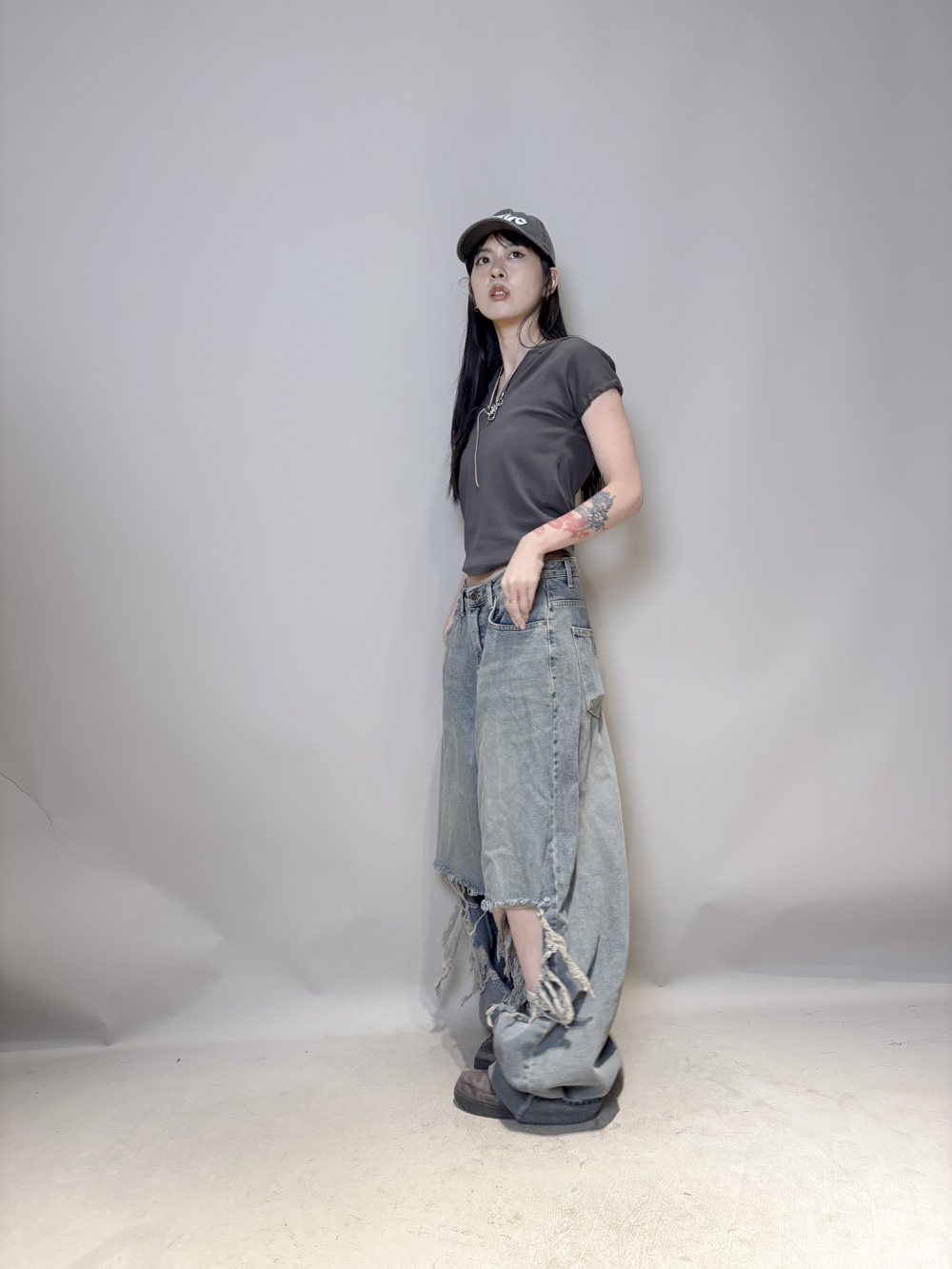 破洞造型涼爽又型格 / 活動自如 / 彷短褲感 /