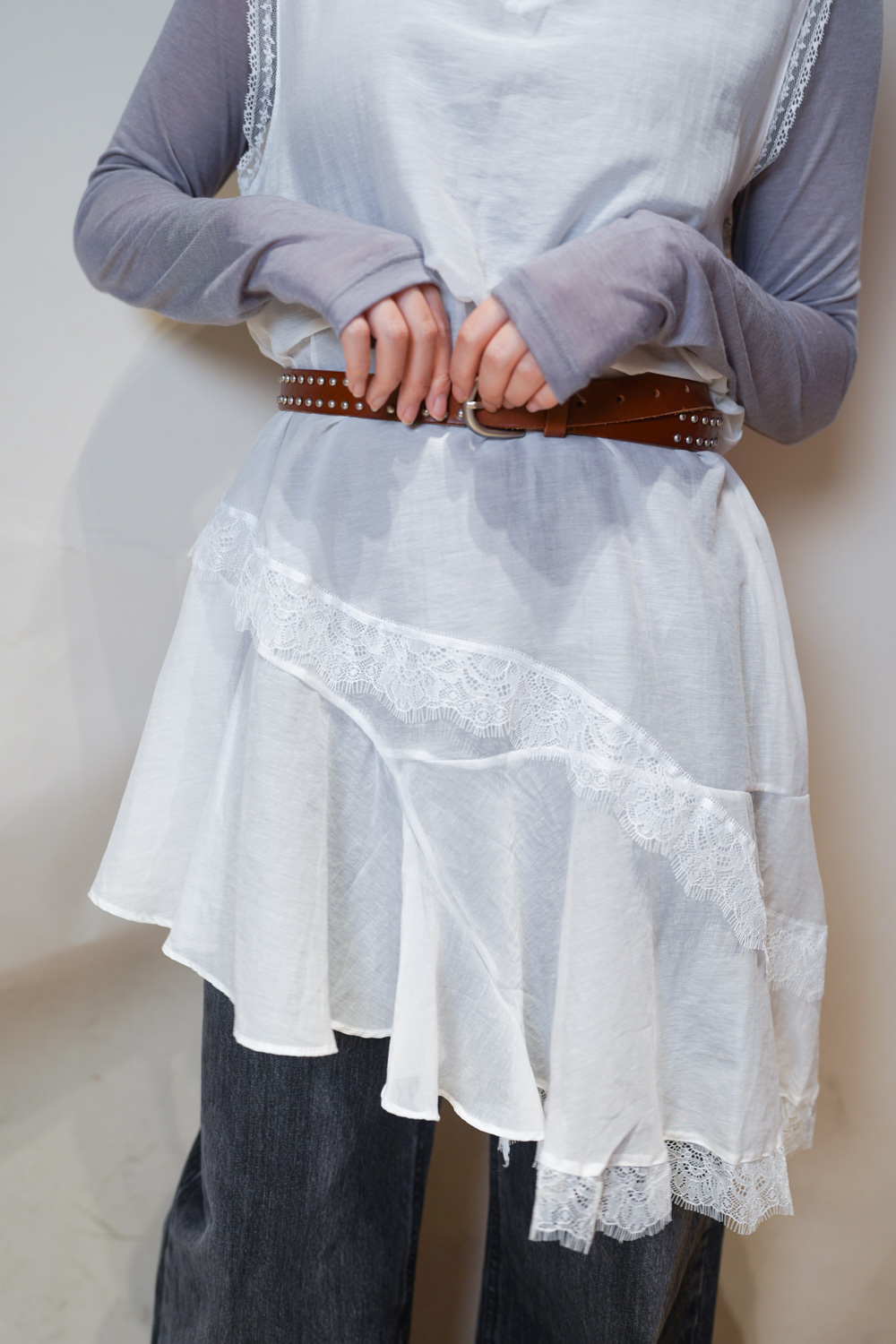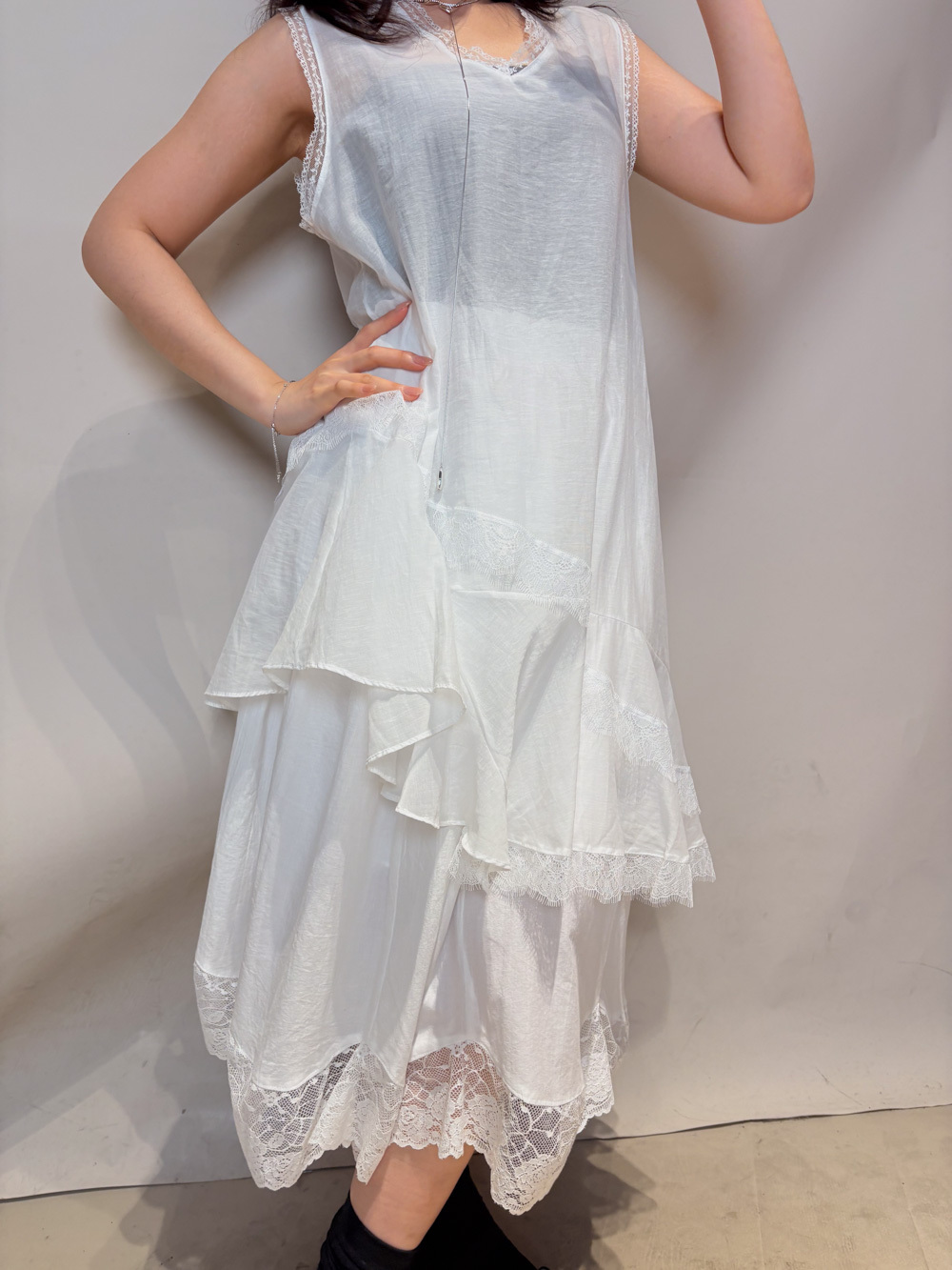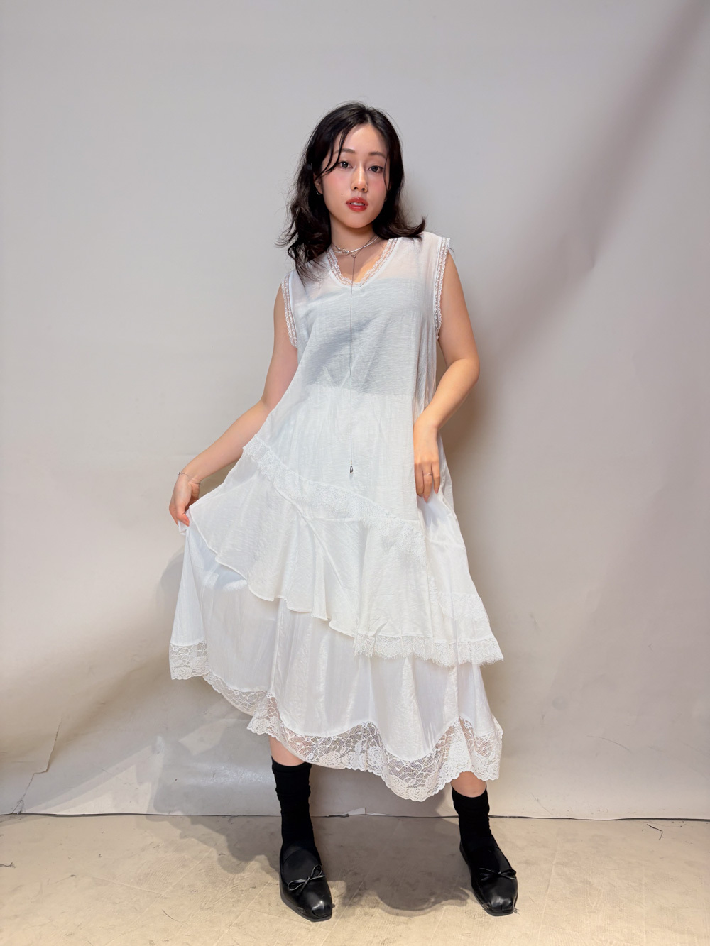Irregular sheer layering dress (WHITE/GREY)