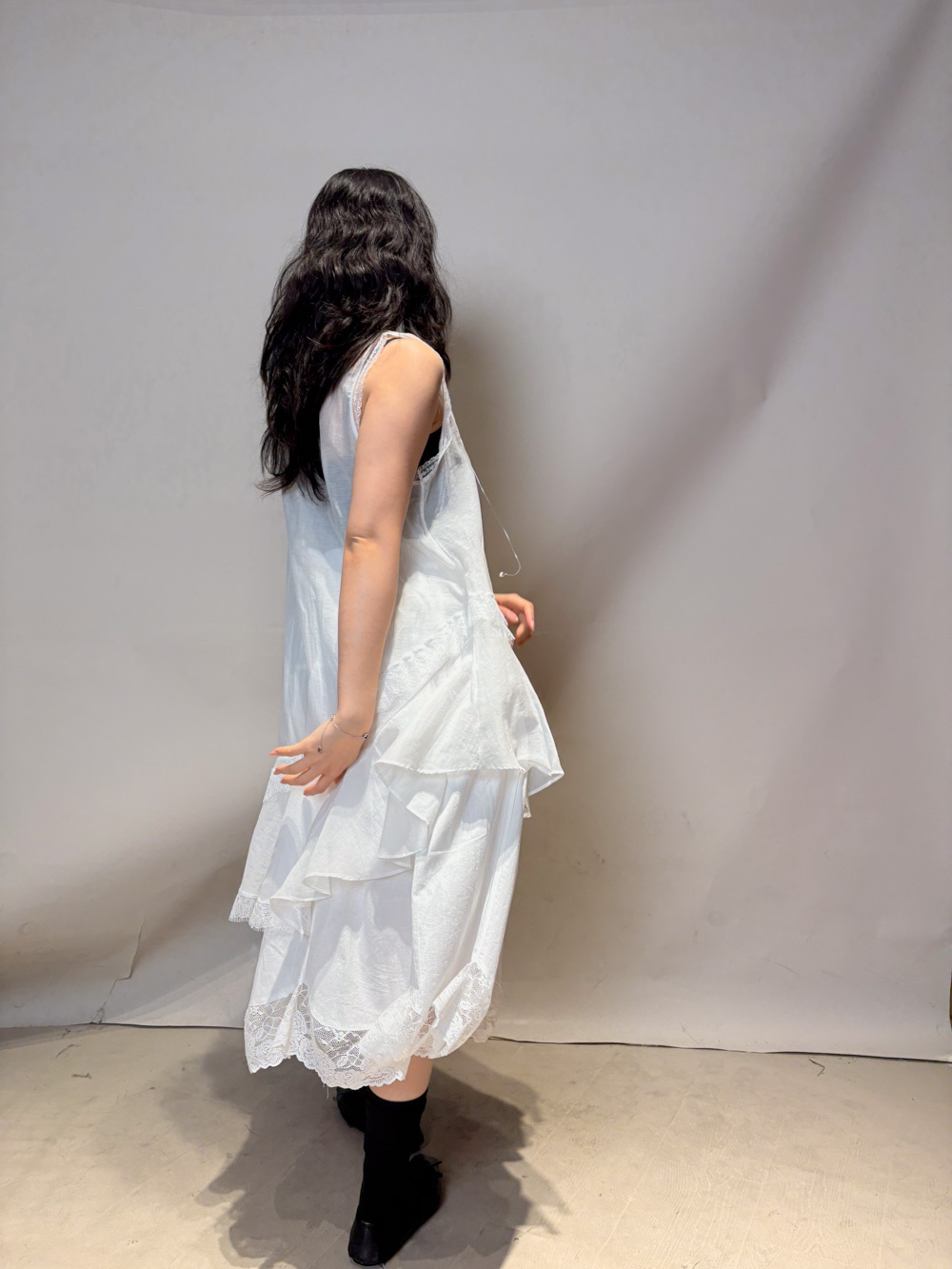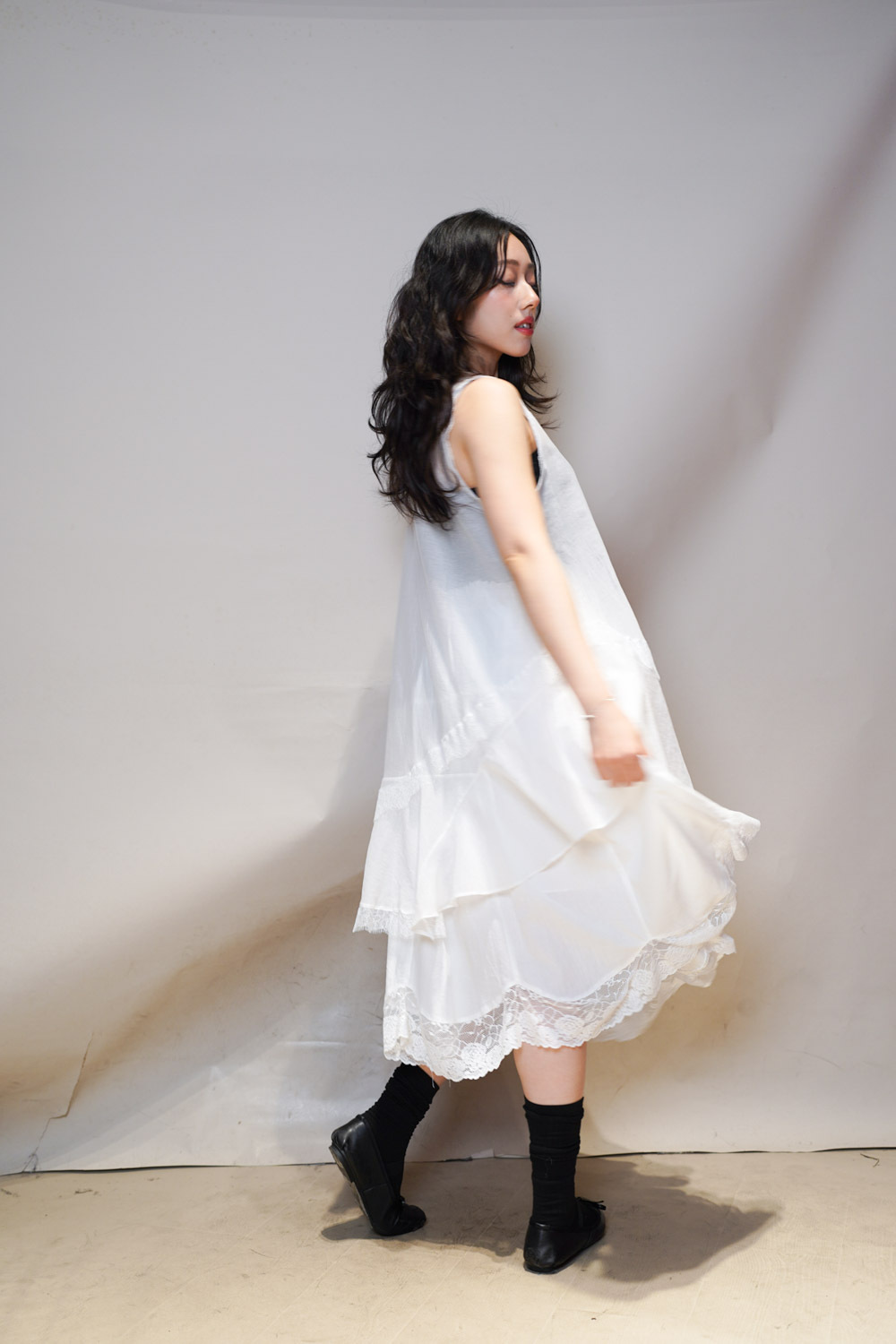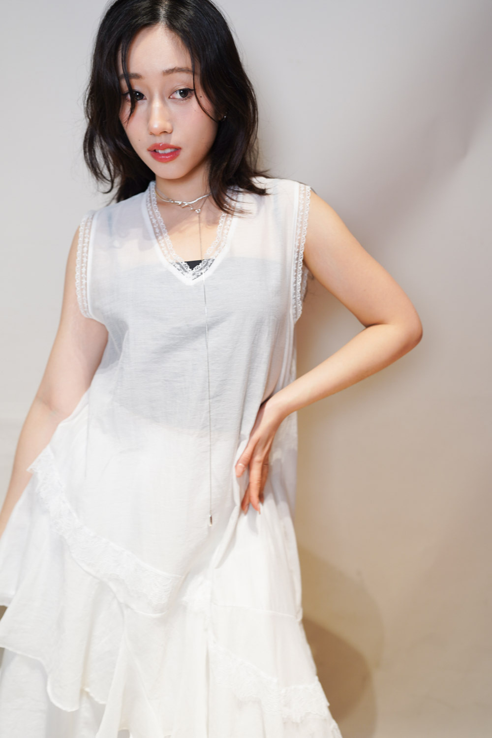 Irregular sheer layering dress (WHITE/GREY)