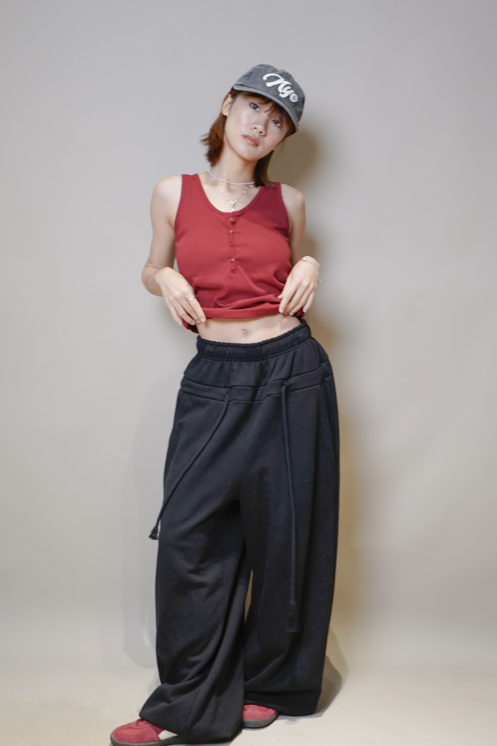 Baggy Cotton Pants (GREY/ BLACK) - Free Size
