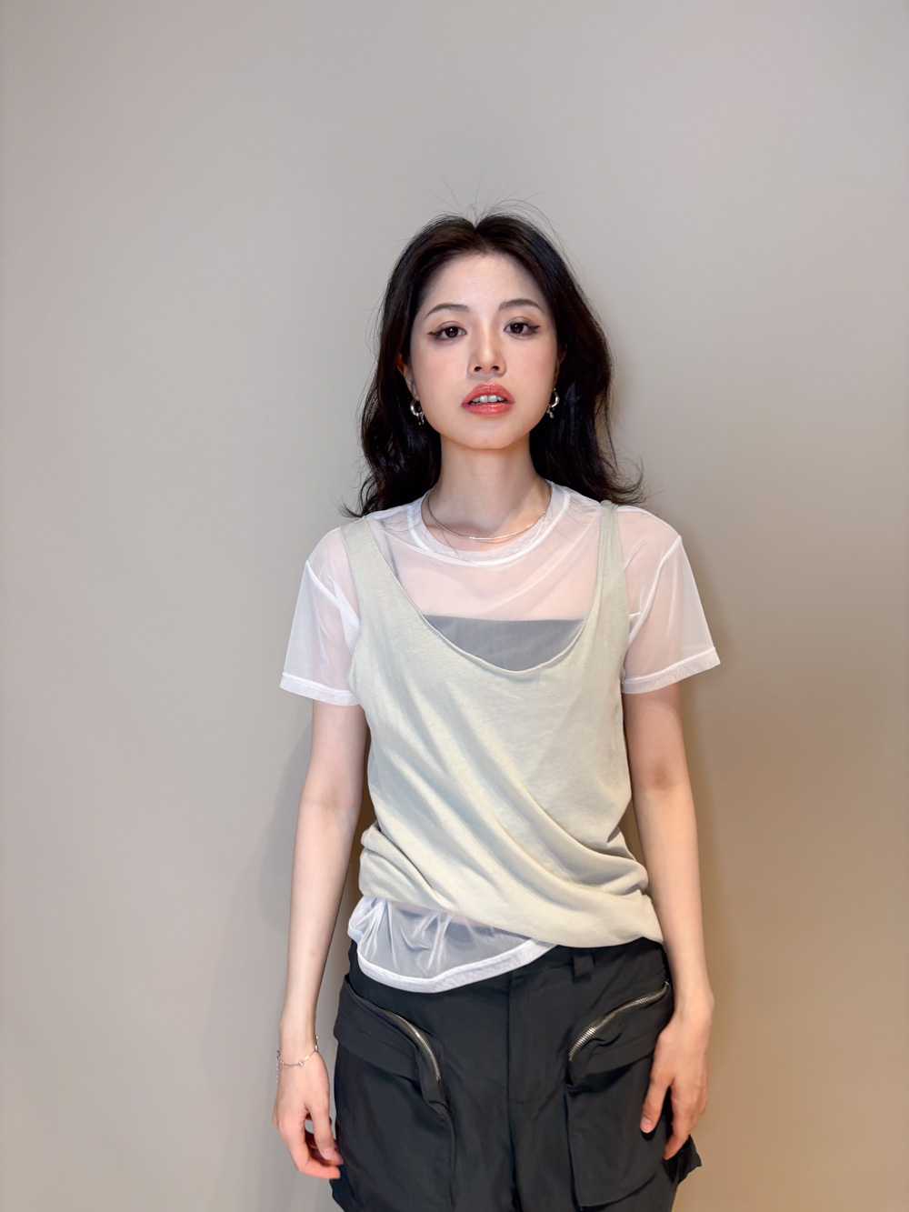 Big U loose layering vest (MINT/ GREY)