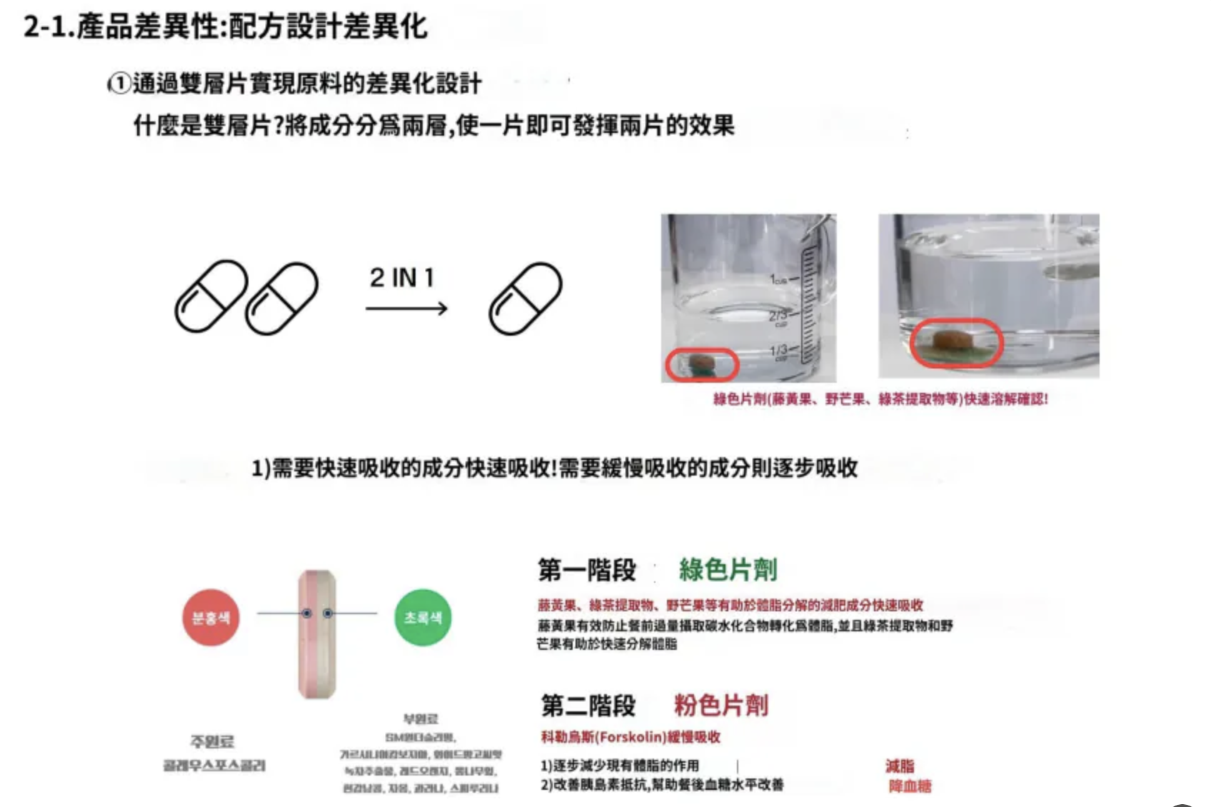 雙層片劑、多效合一:阻糖+阻油+燃脂