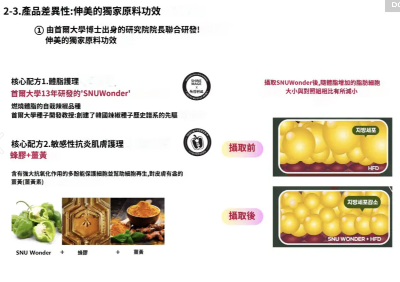 ②首爾大學農學博士x伸美共同研發獨家定制復合粉末:SMwonderslimmingpowder(辣椒粉+蜂膠+姜黃)