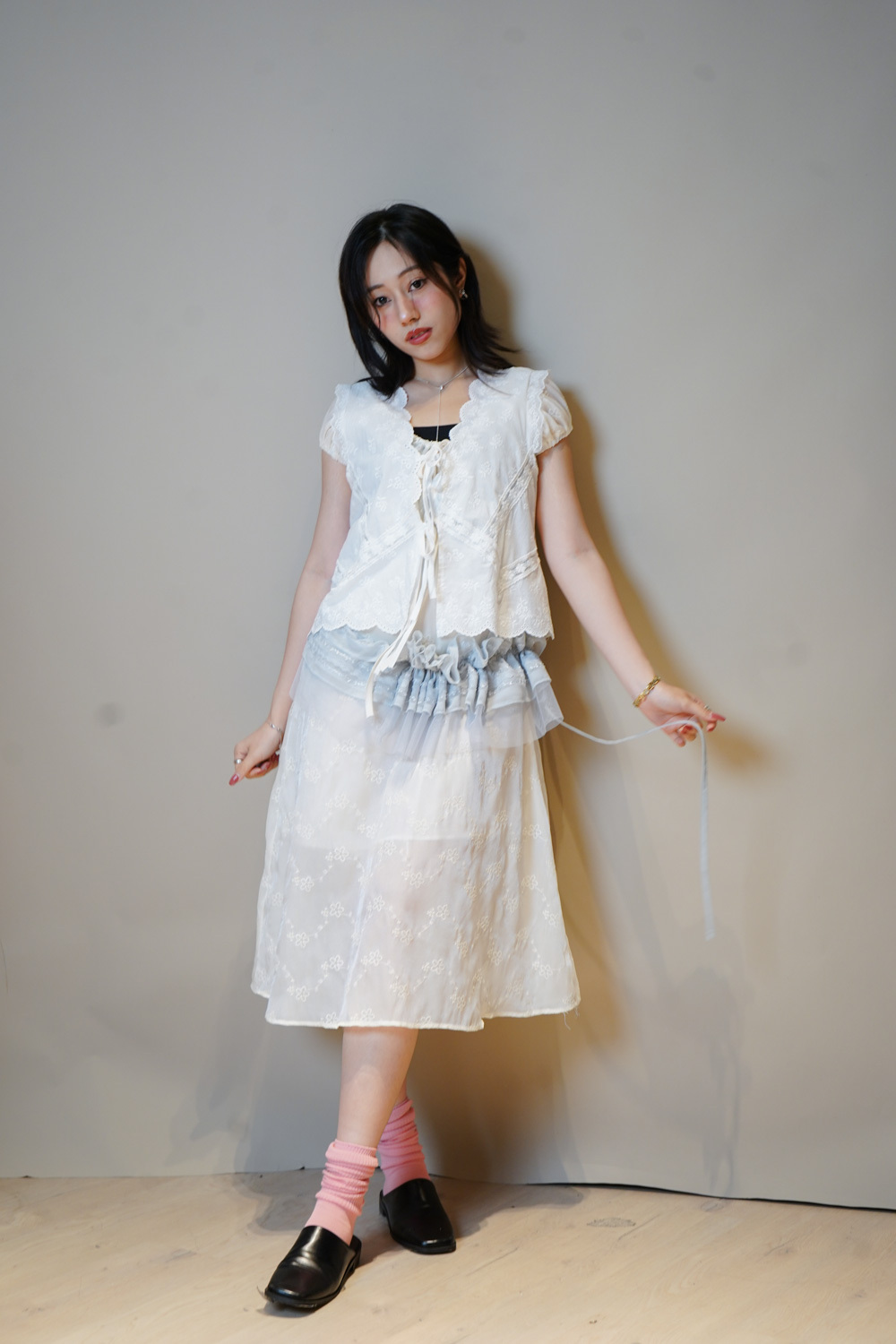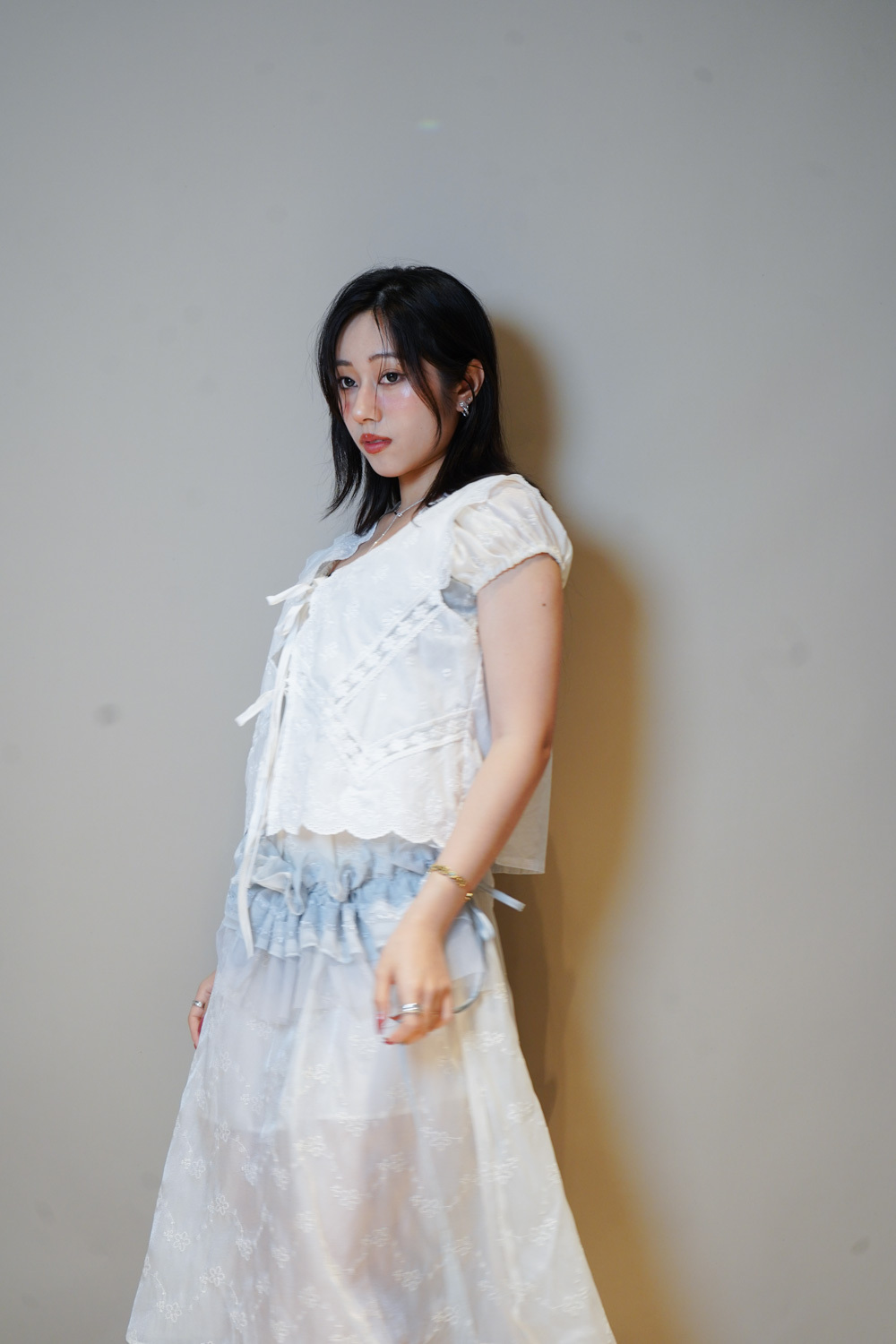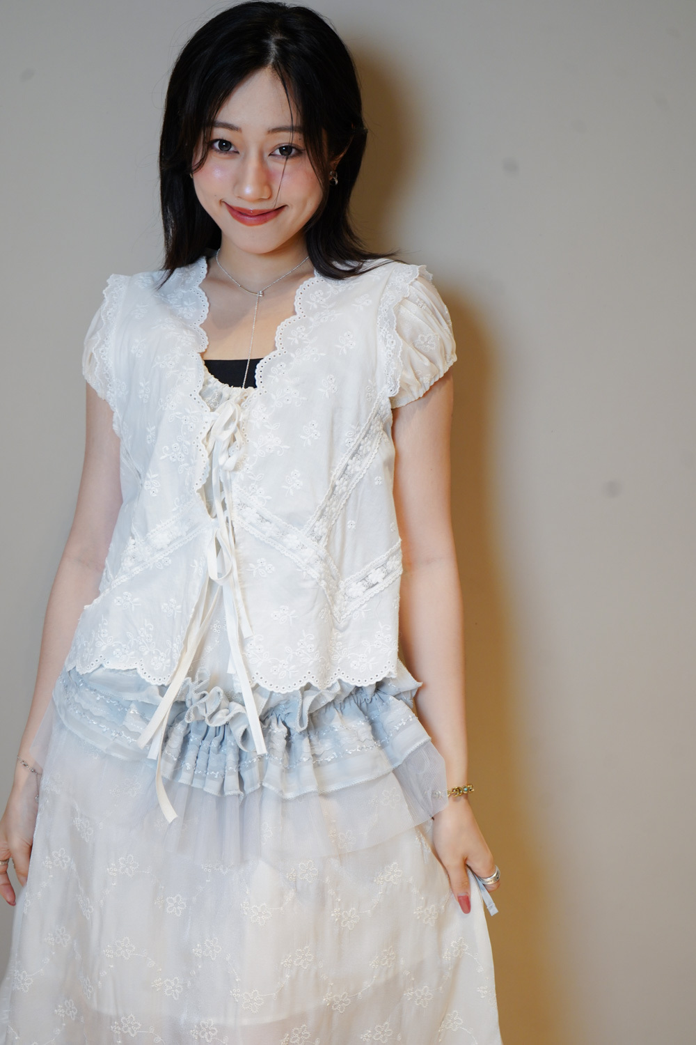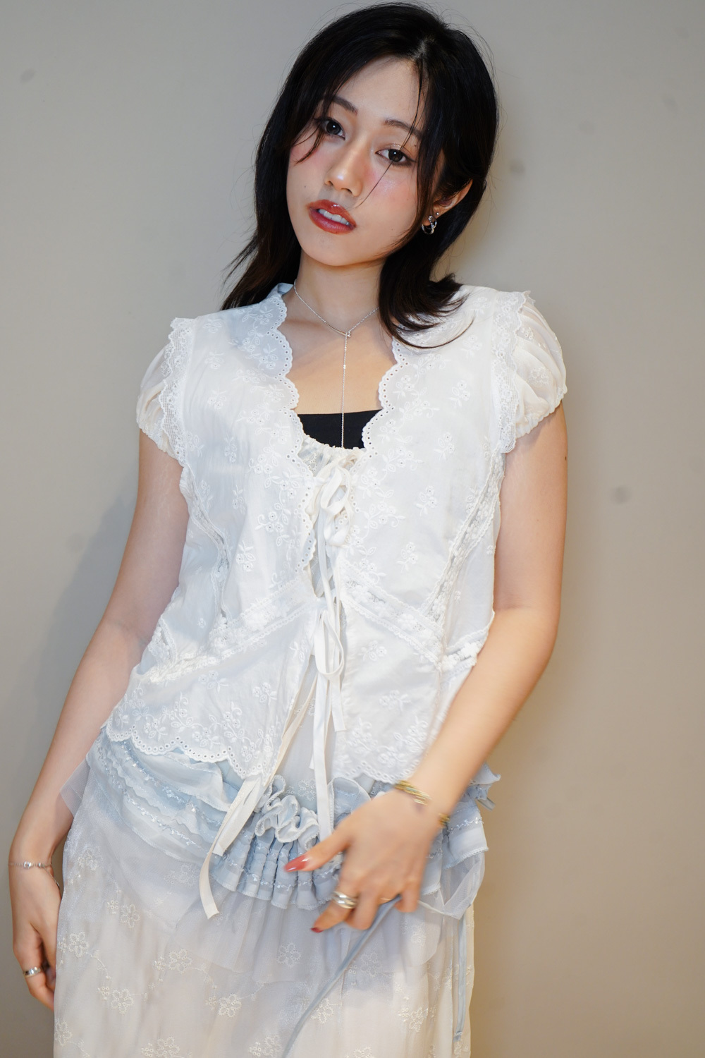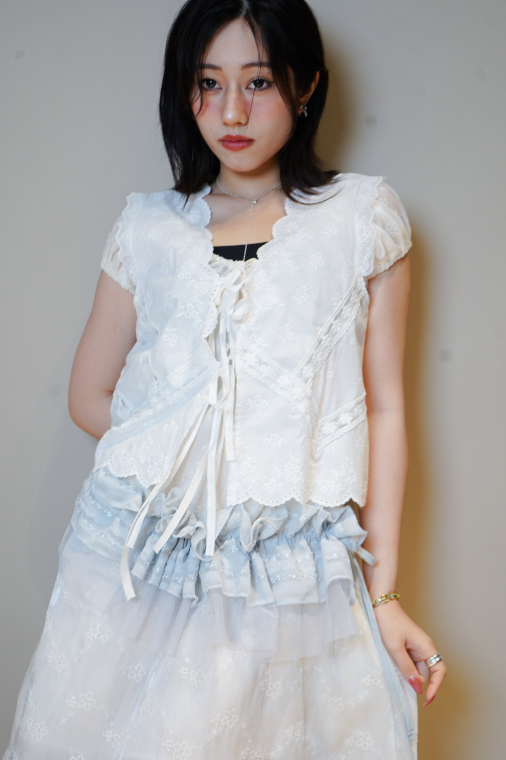 Ruffle 花邊V領設計/修飾臉形/