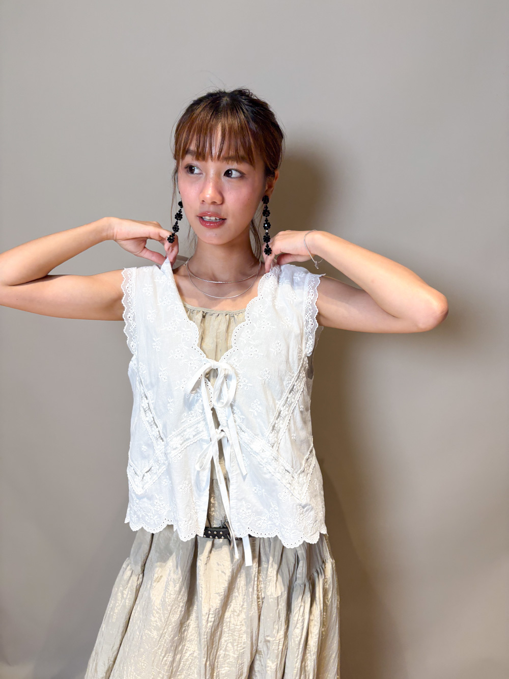 胸口蝴蝶結點綴/