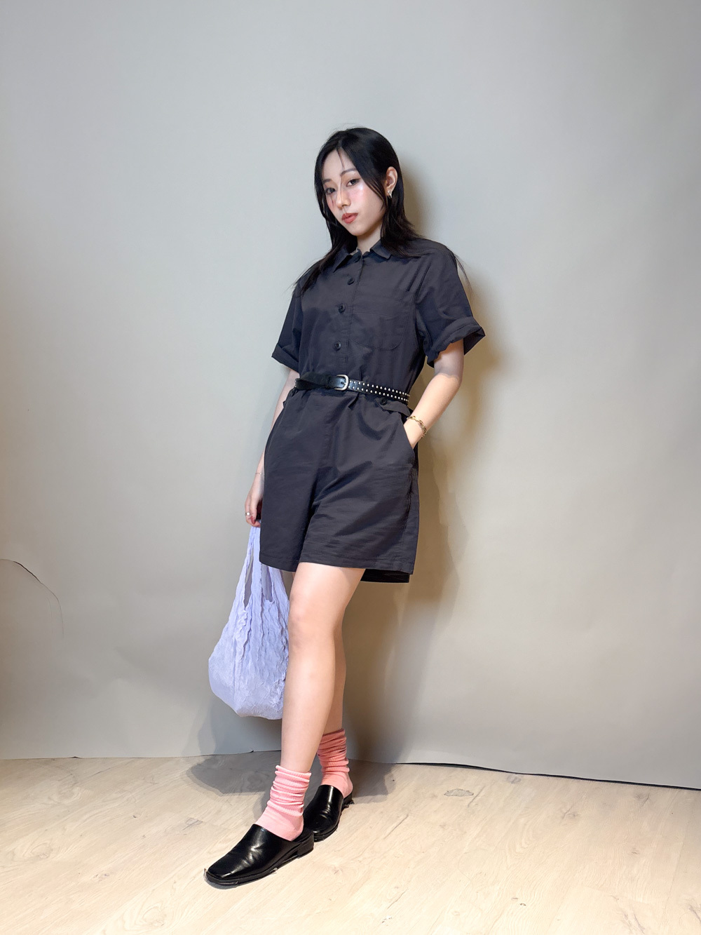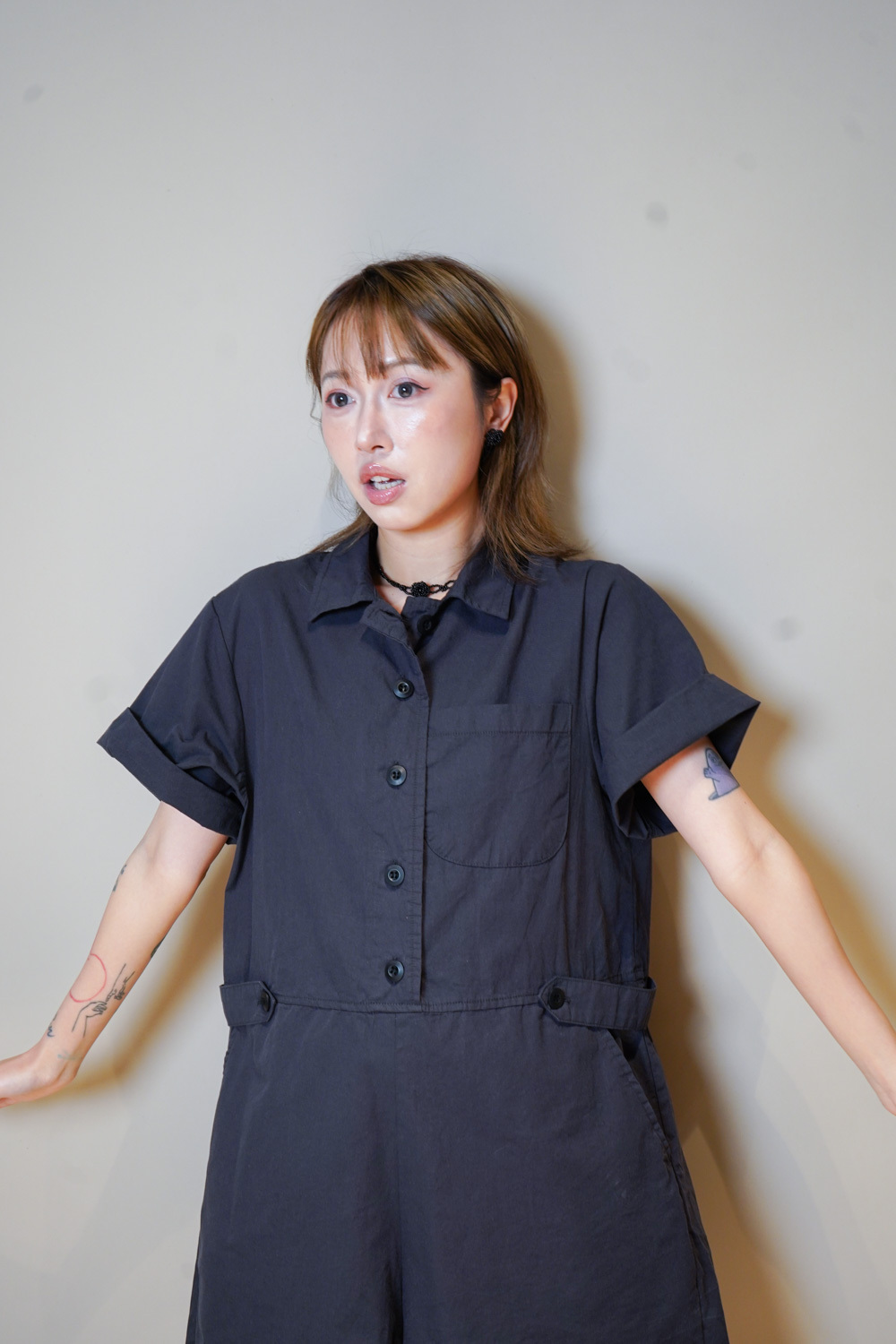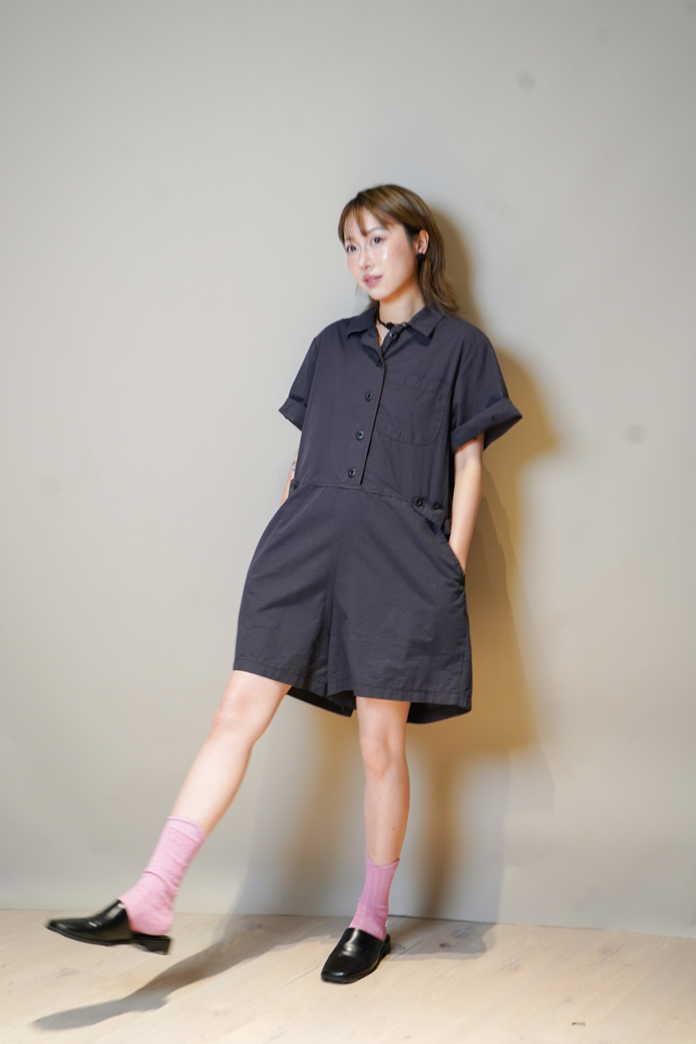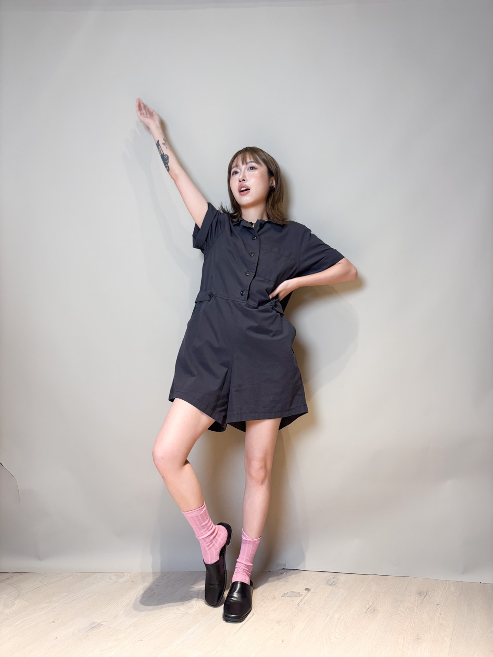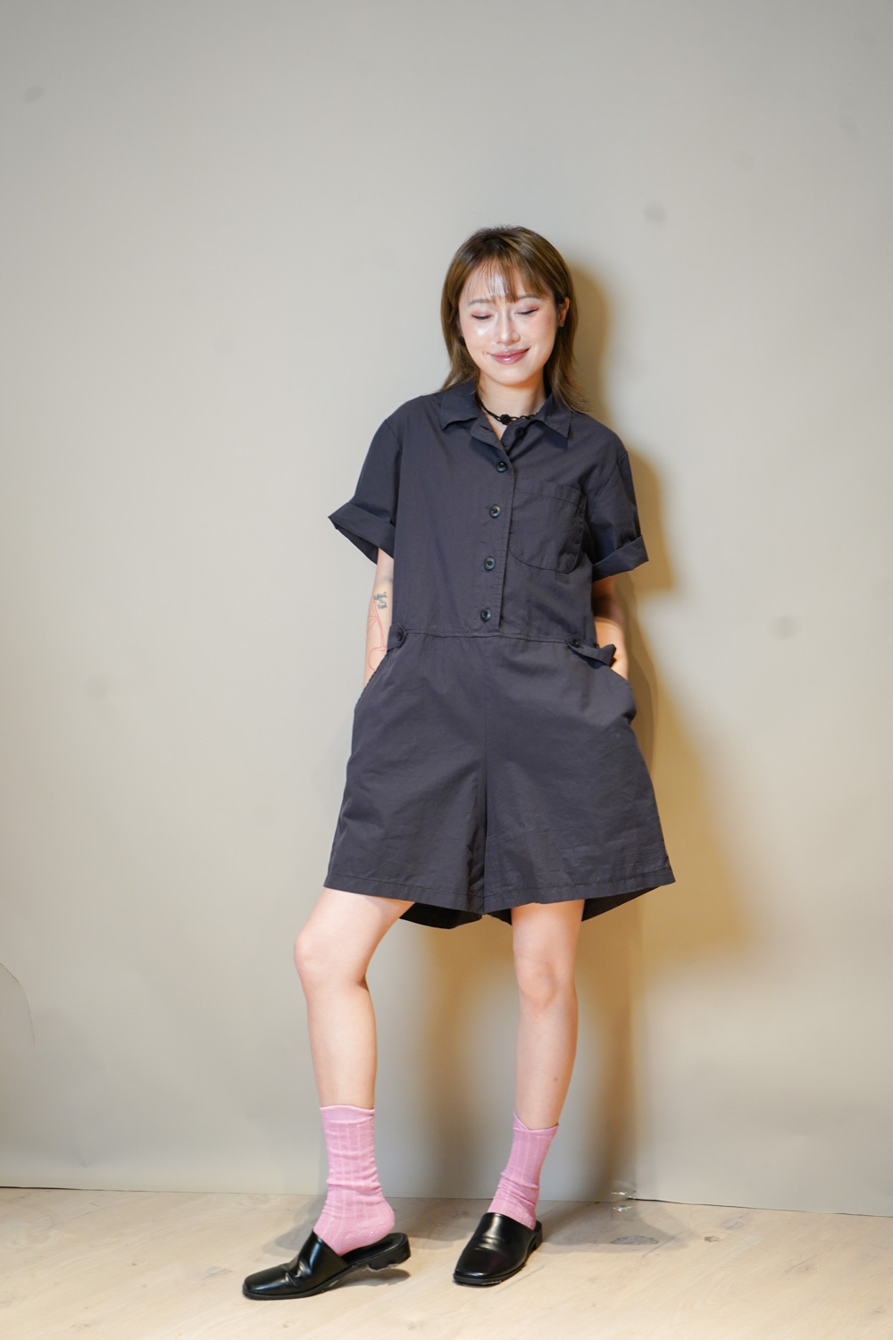 Boyish relax Jumpsuit (BEIGE / NAVY)