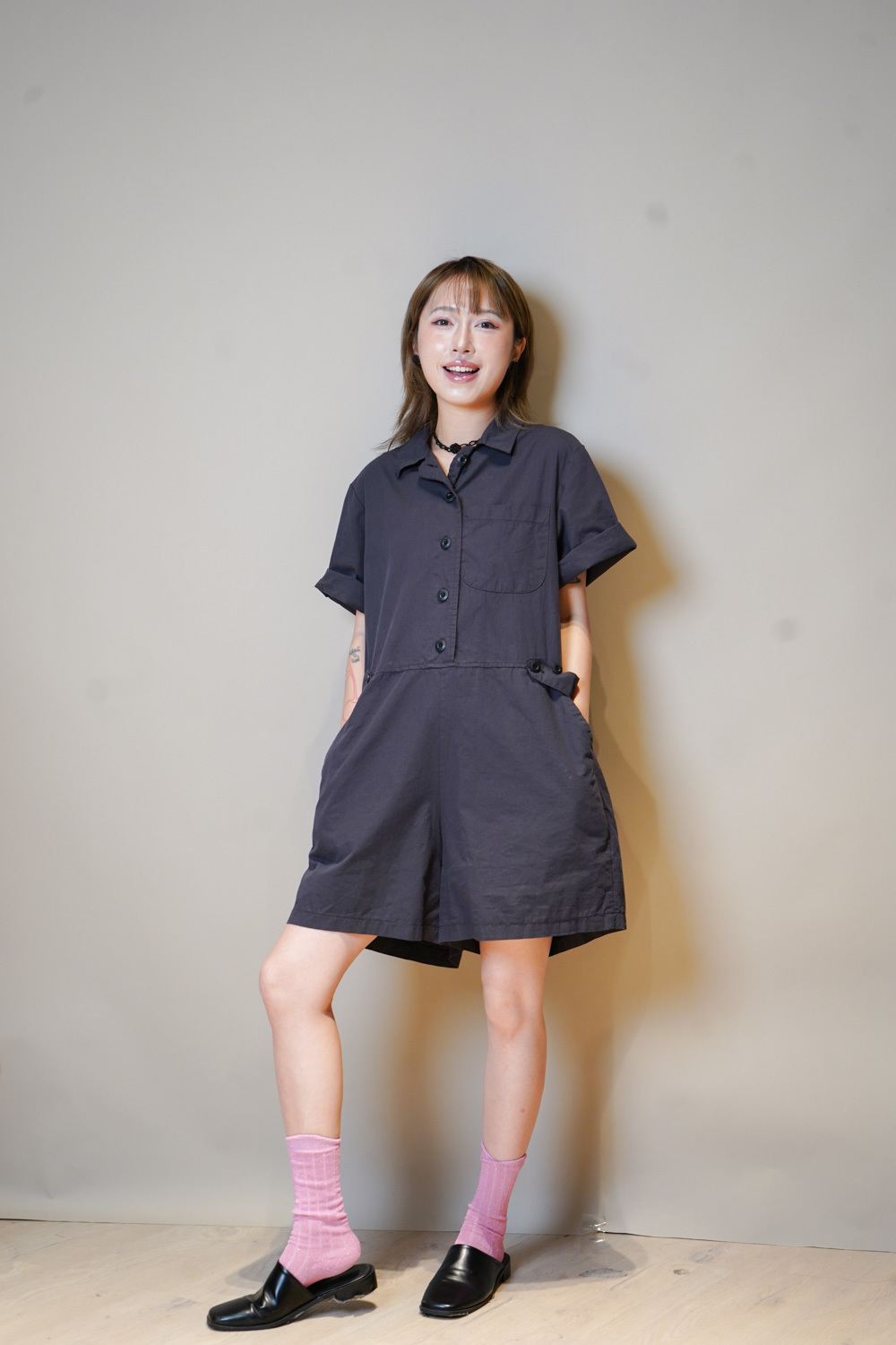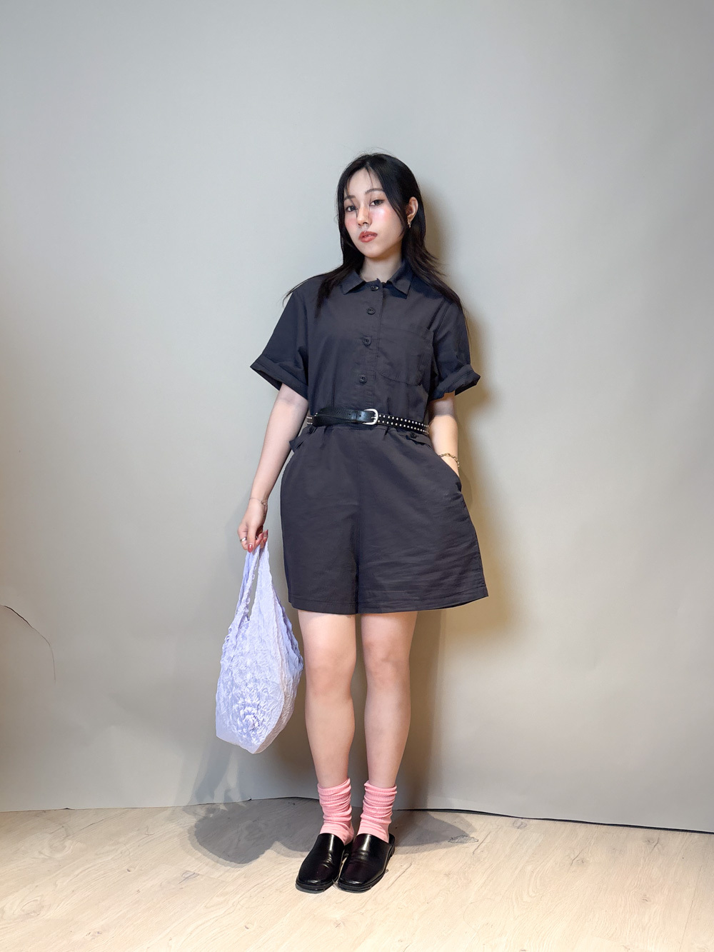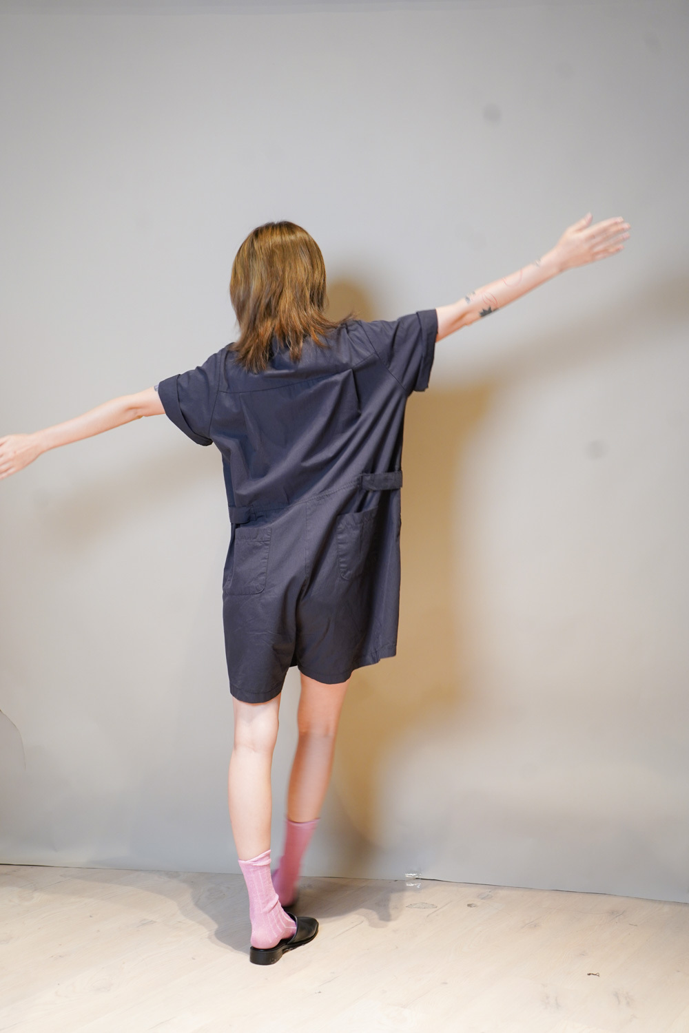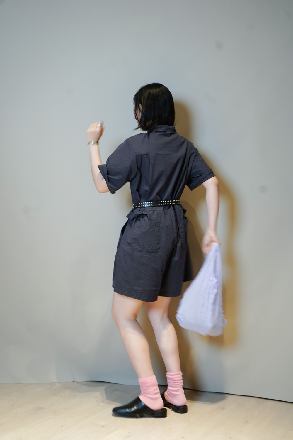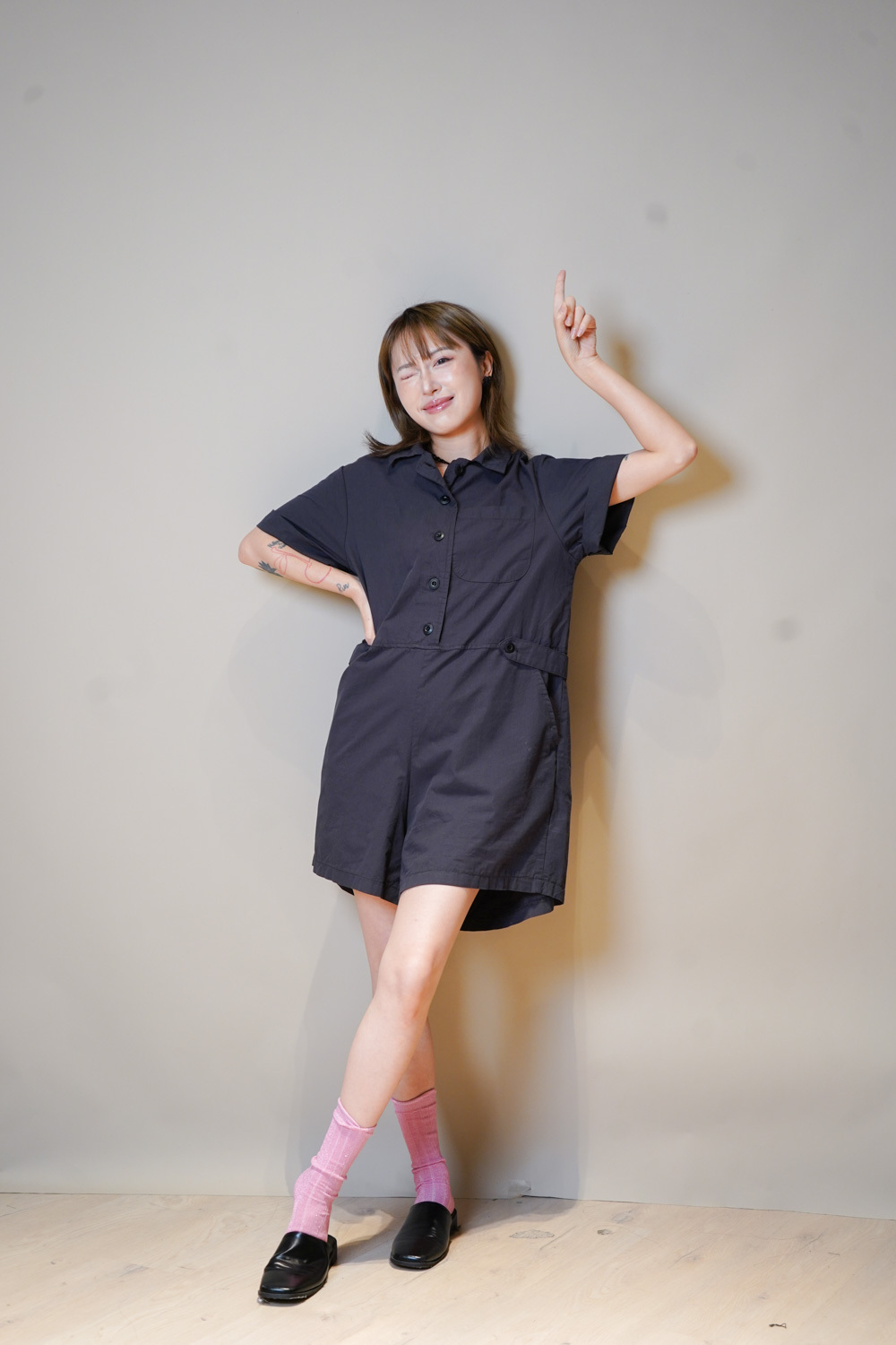 Boyish relax Jumpsuit (BEIGE / NAVY)