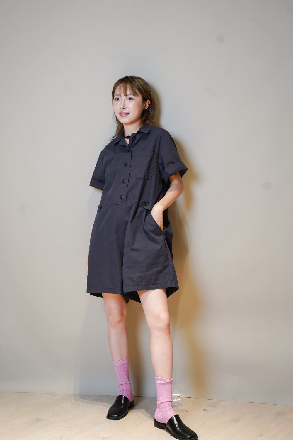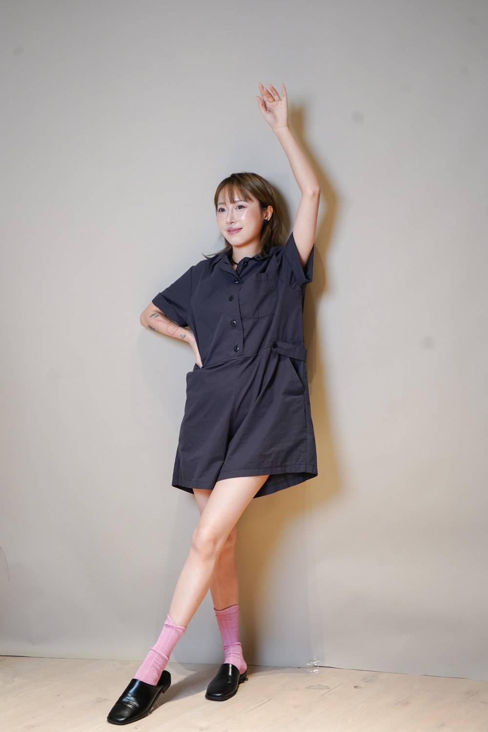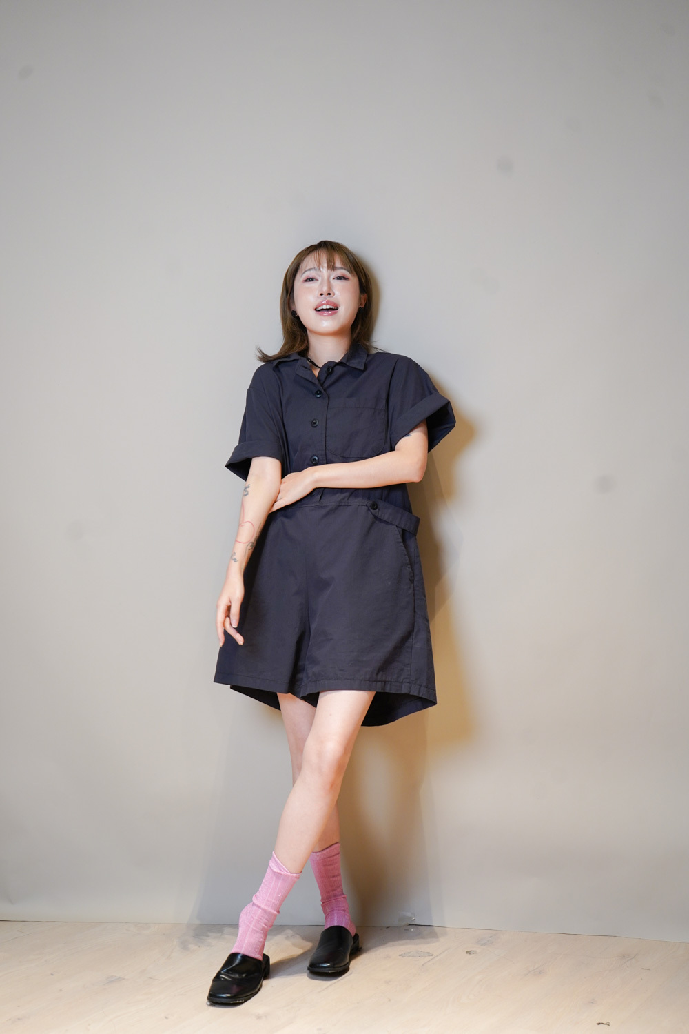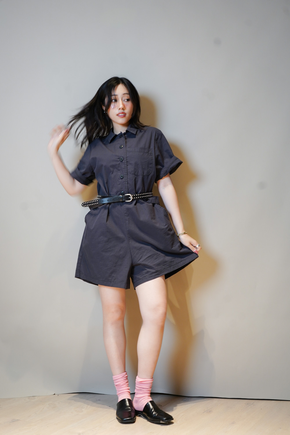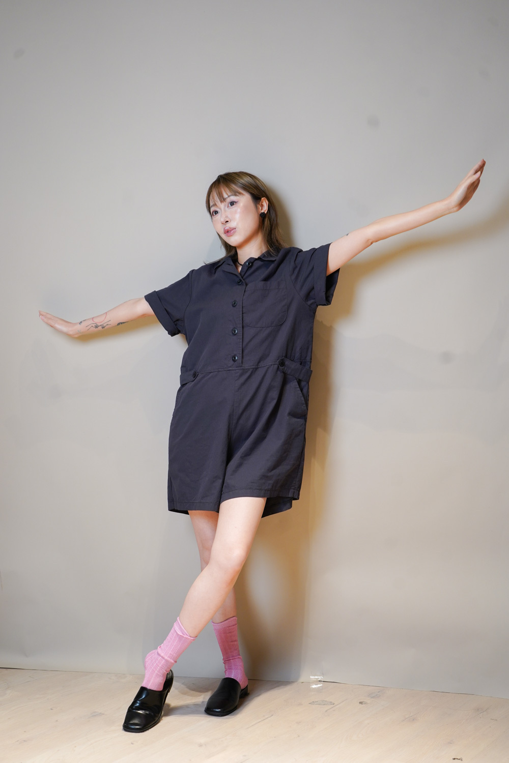 Boyish relax Jumpsuit (BEIGE / NAVY)