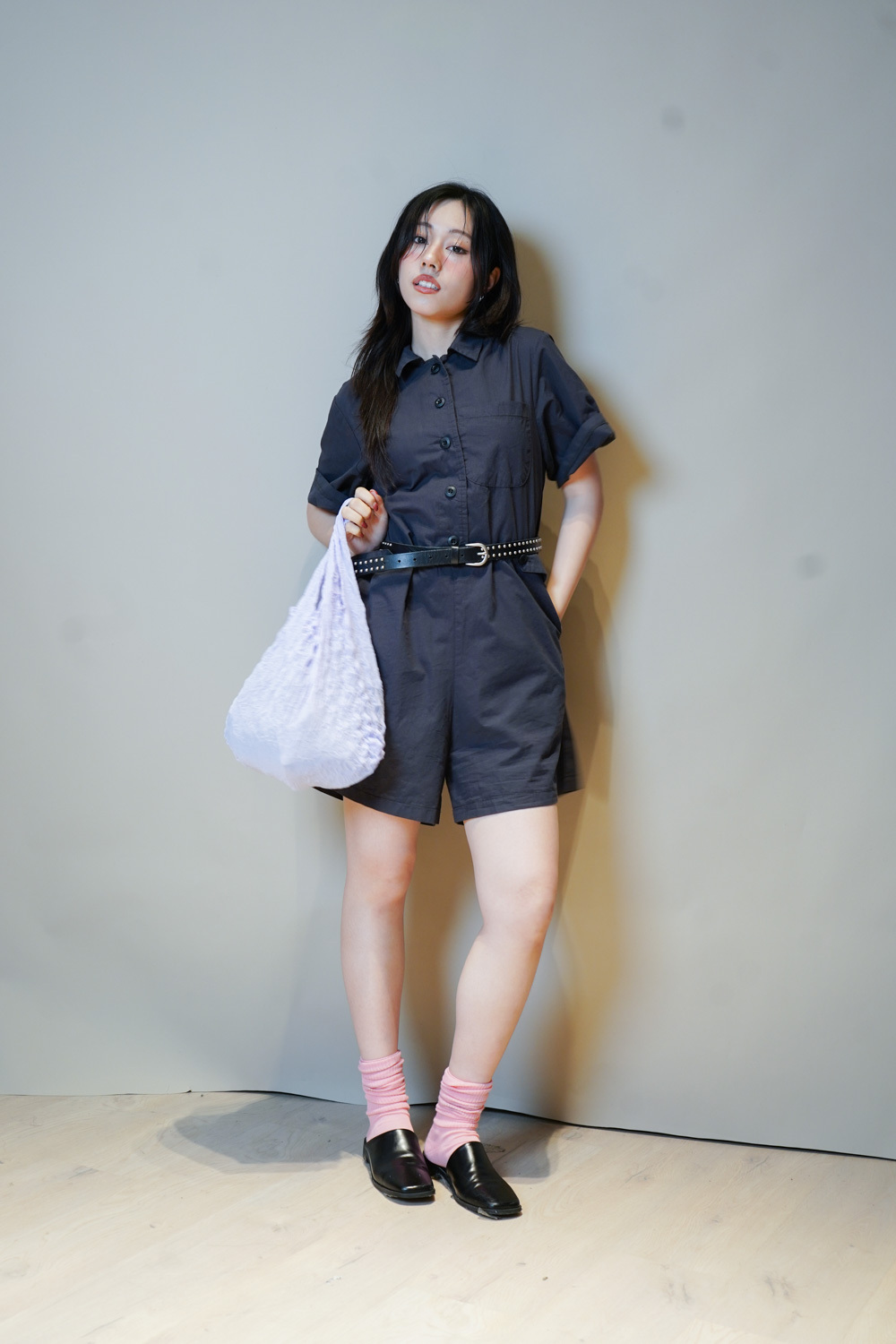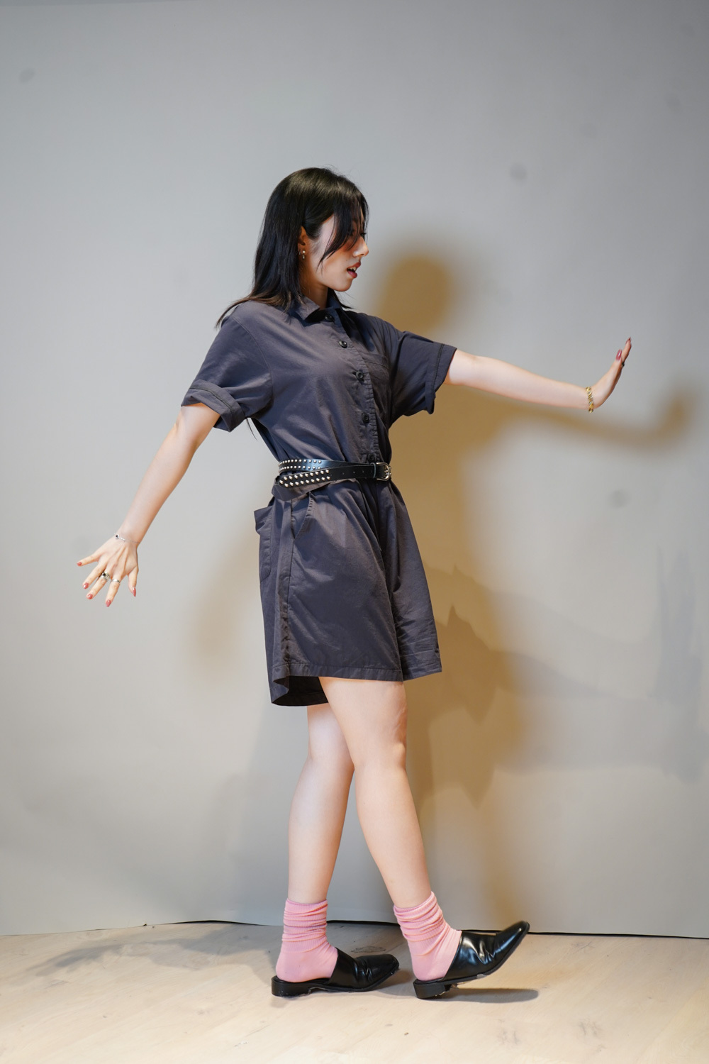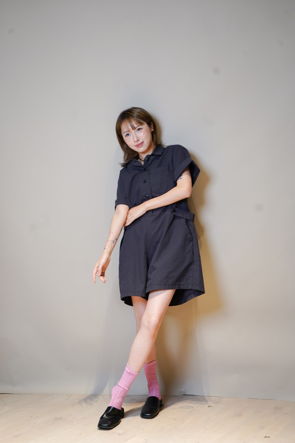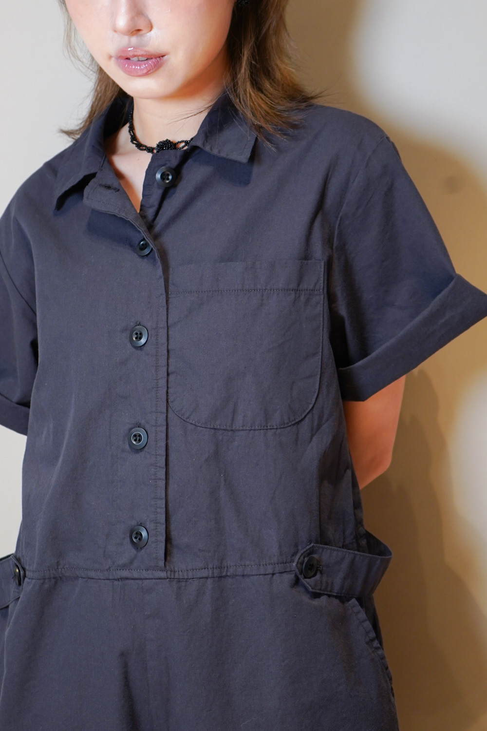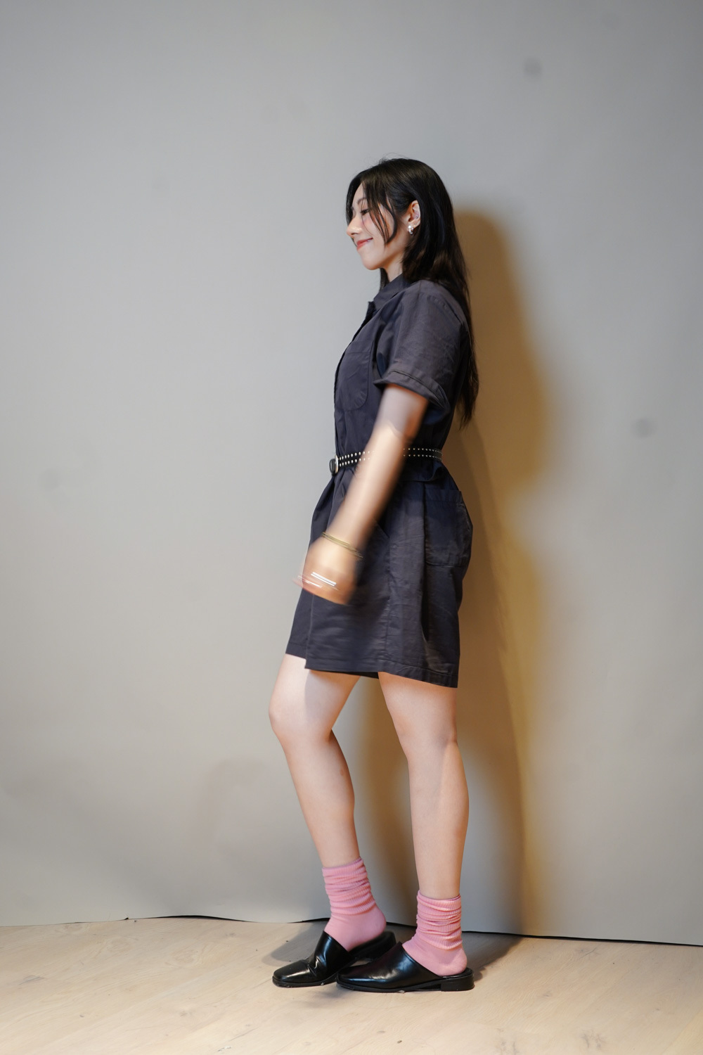Boyish relax Jumpsuit (BEIGE / NAVY)