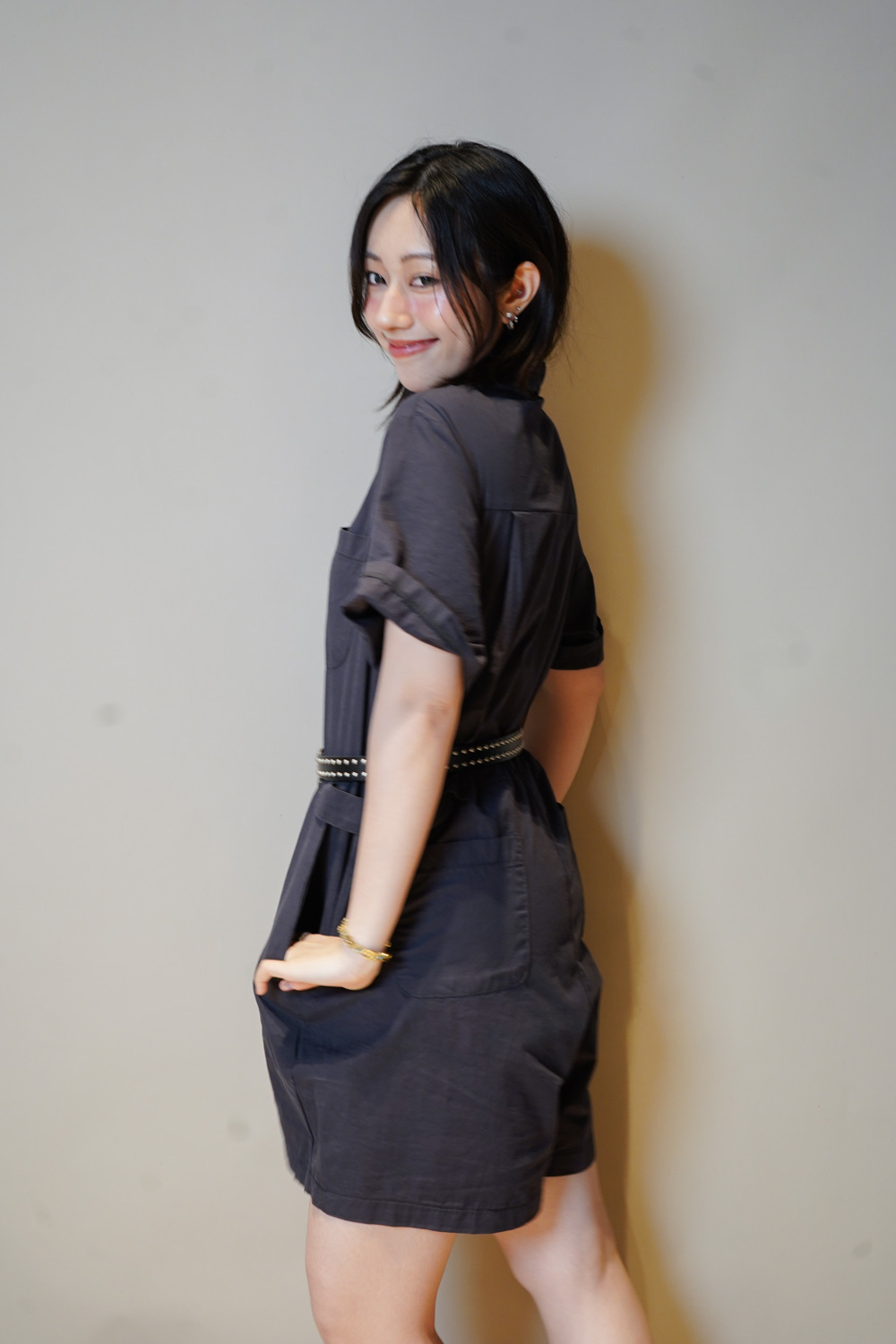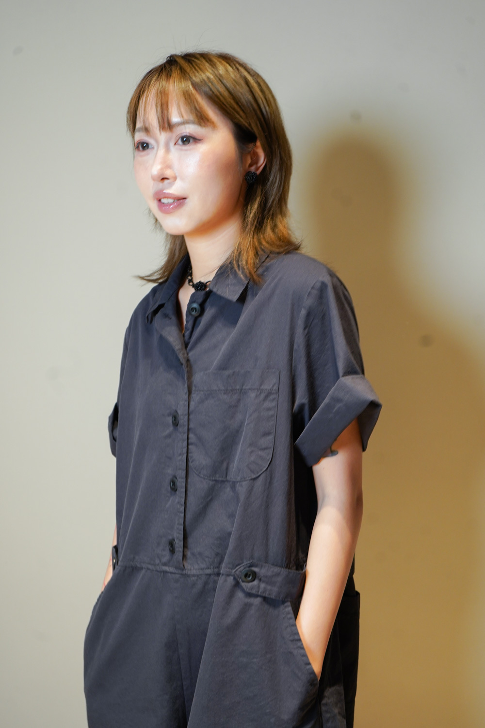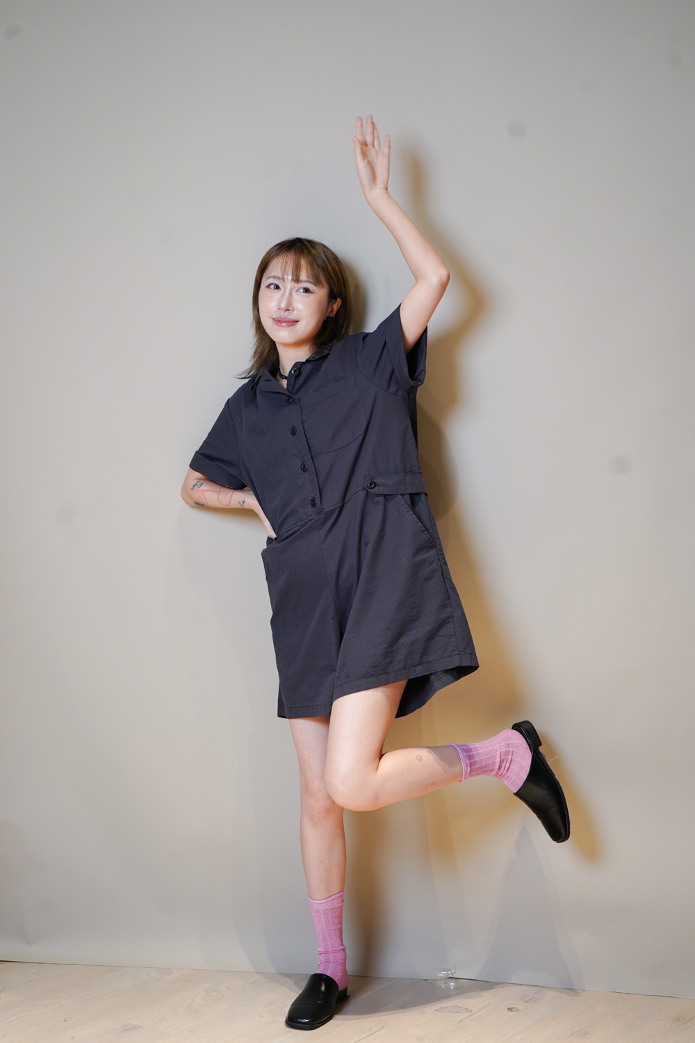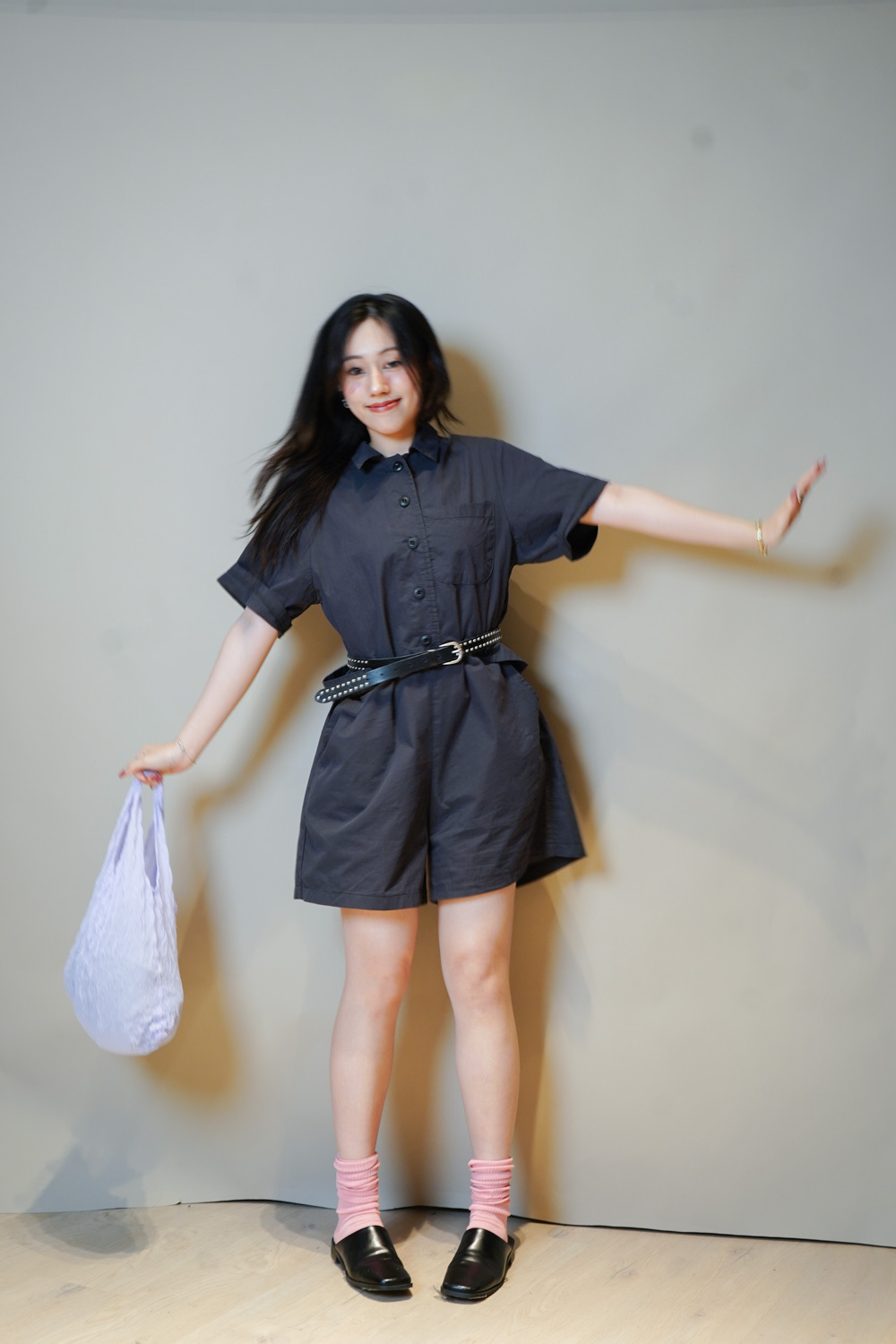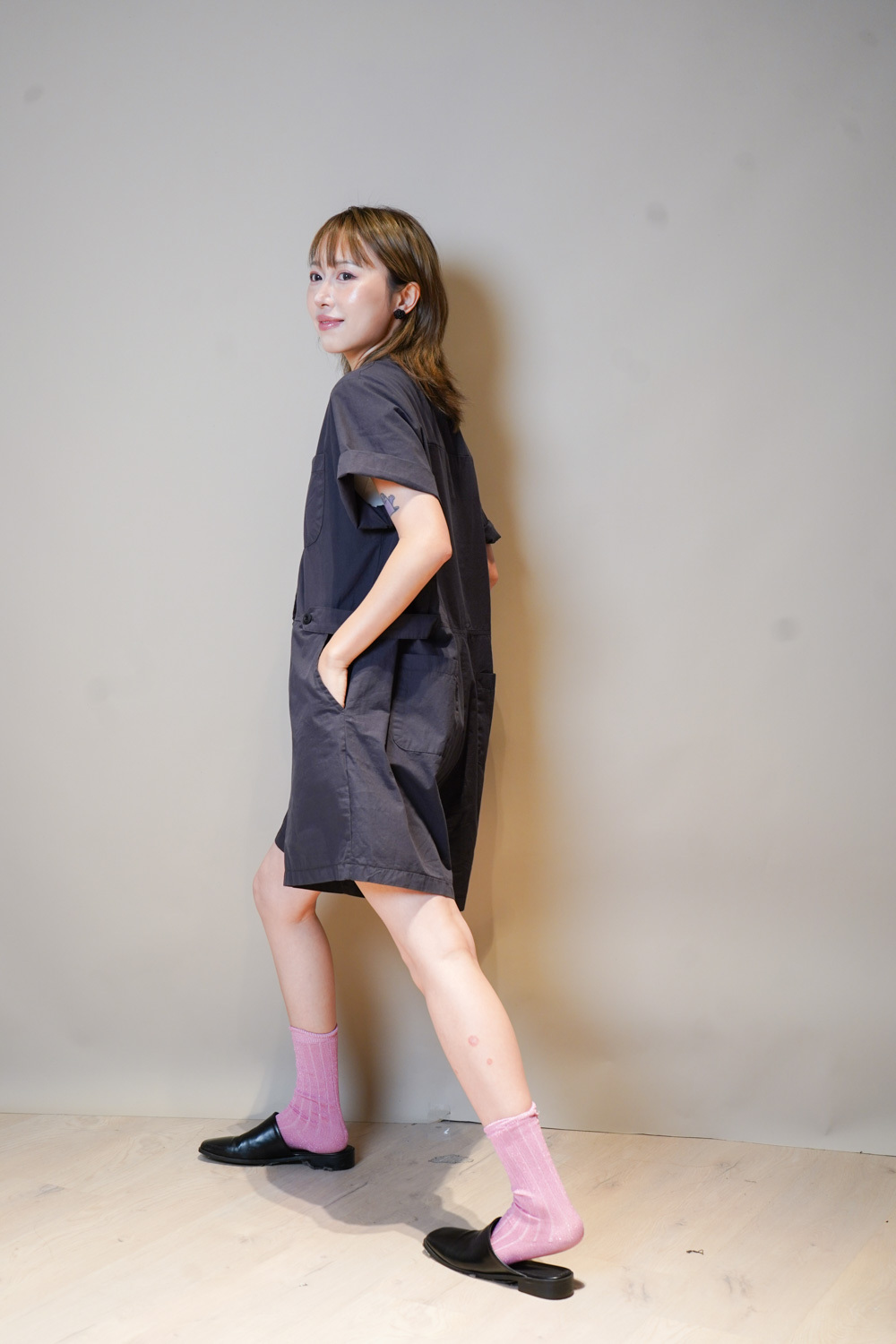 Boyish relax Jumpsuit (BEIGE / NAVY)