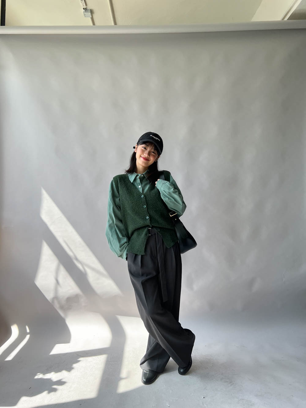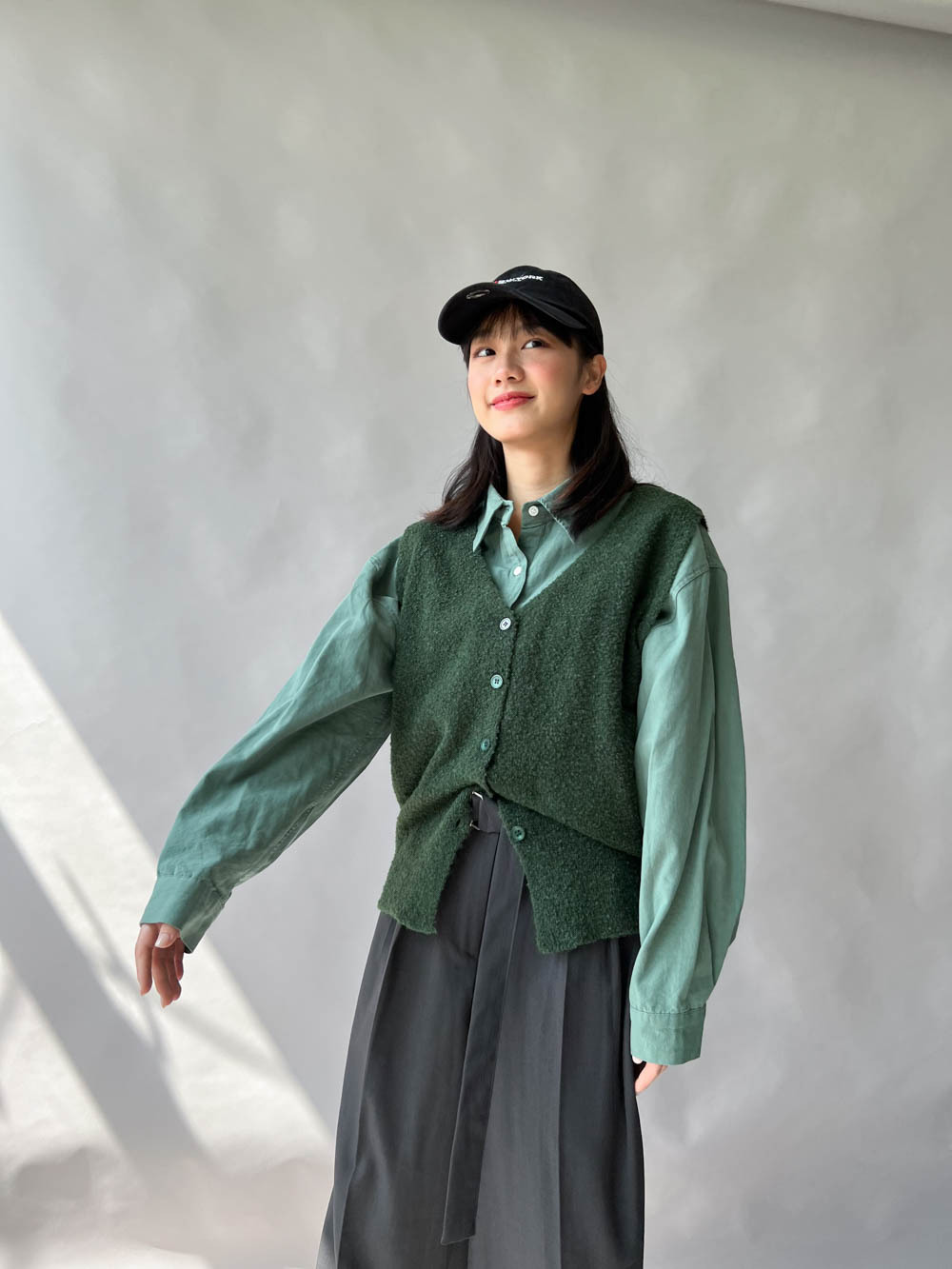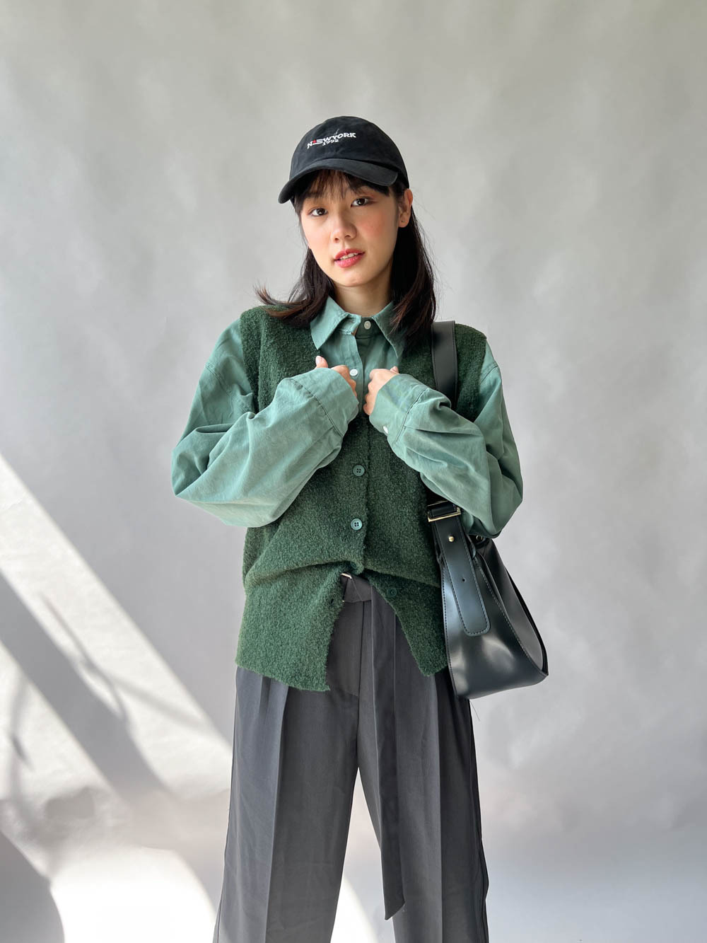 亦可連同手袖穿著 更有層次感 / V領剪裁可修飾面形 / 同色系質感鈕扣 /