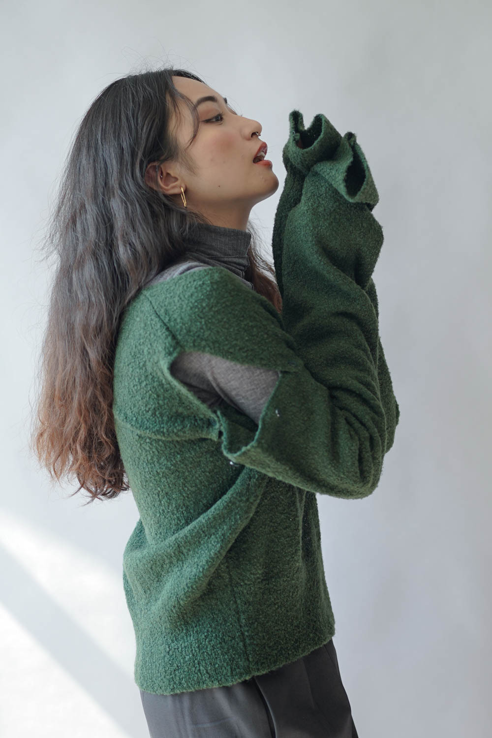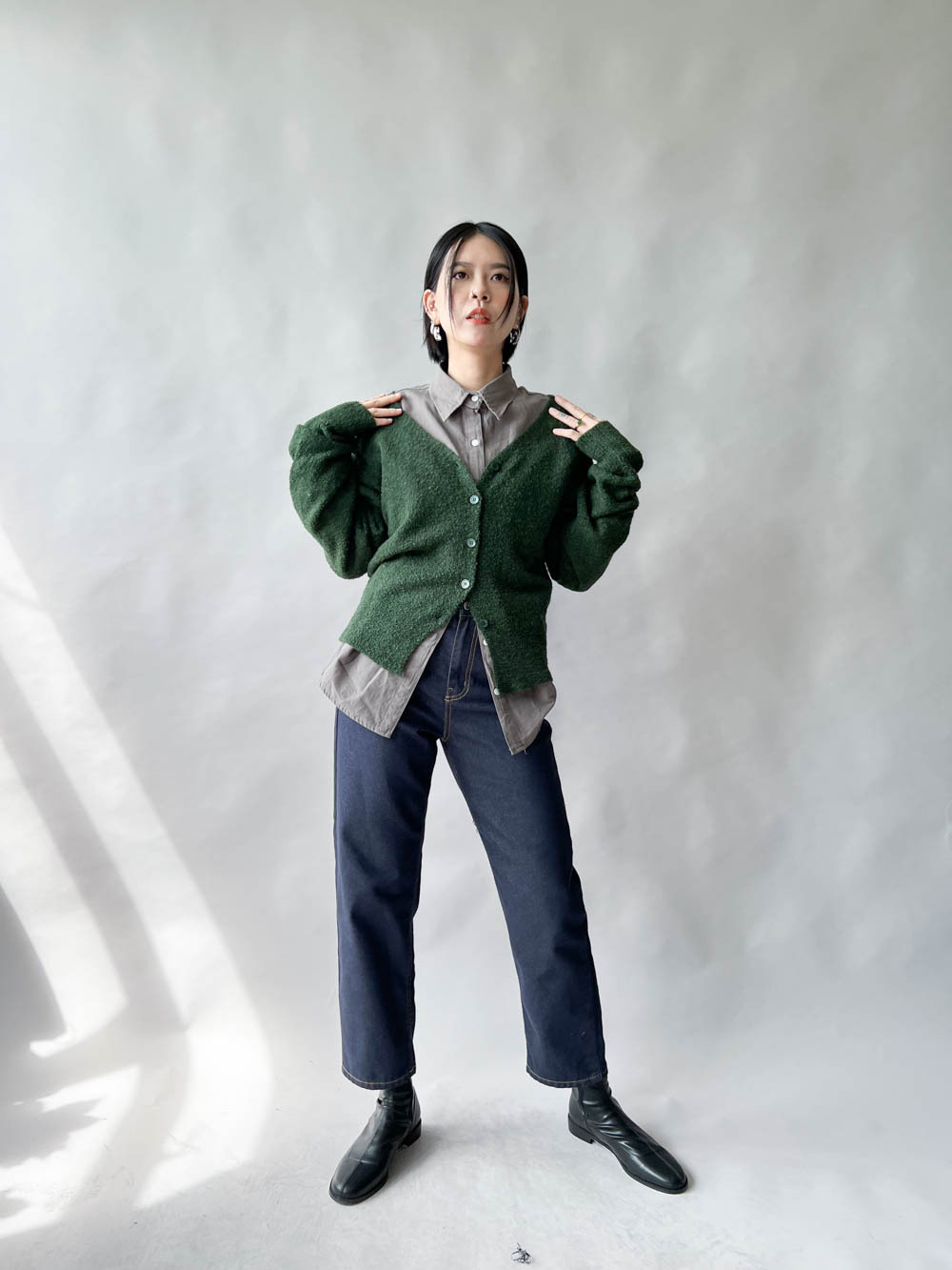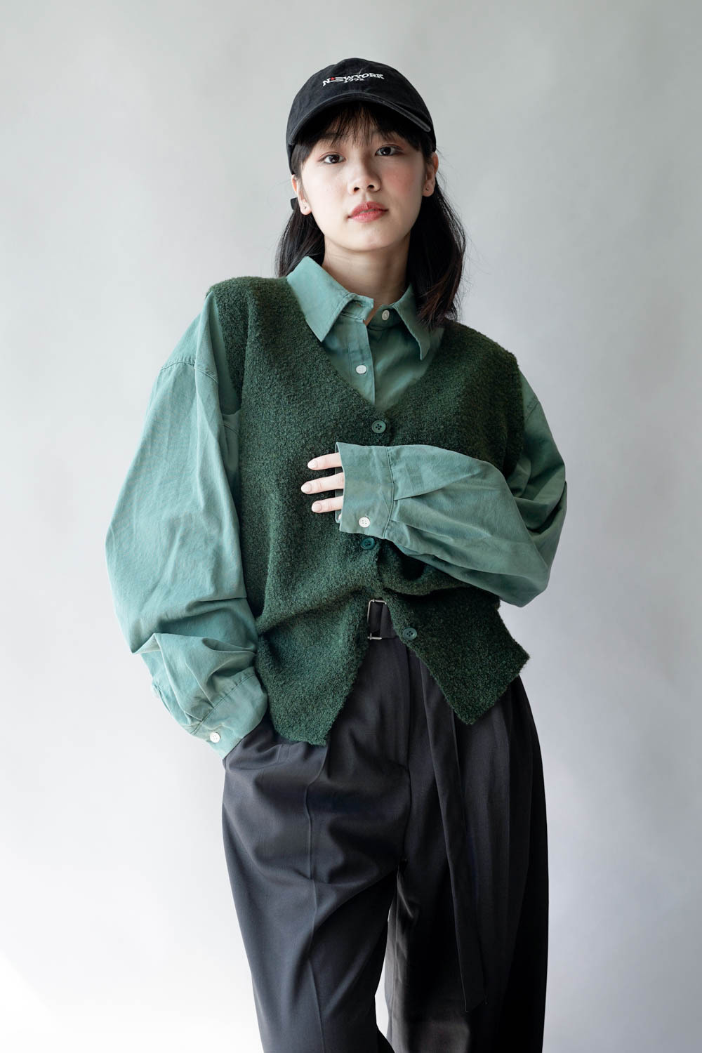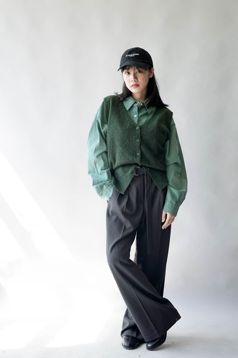 亦可連同手袖穿著 更有層次感 / V領剪裁可修飾面形 / 同色系質感鈕扣 /